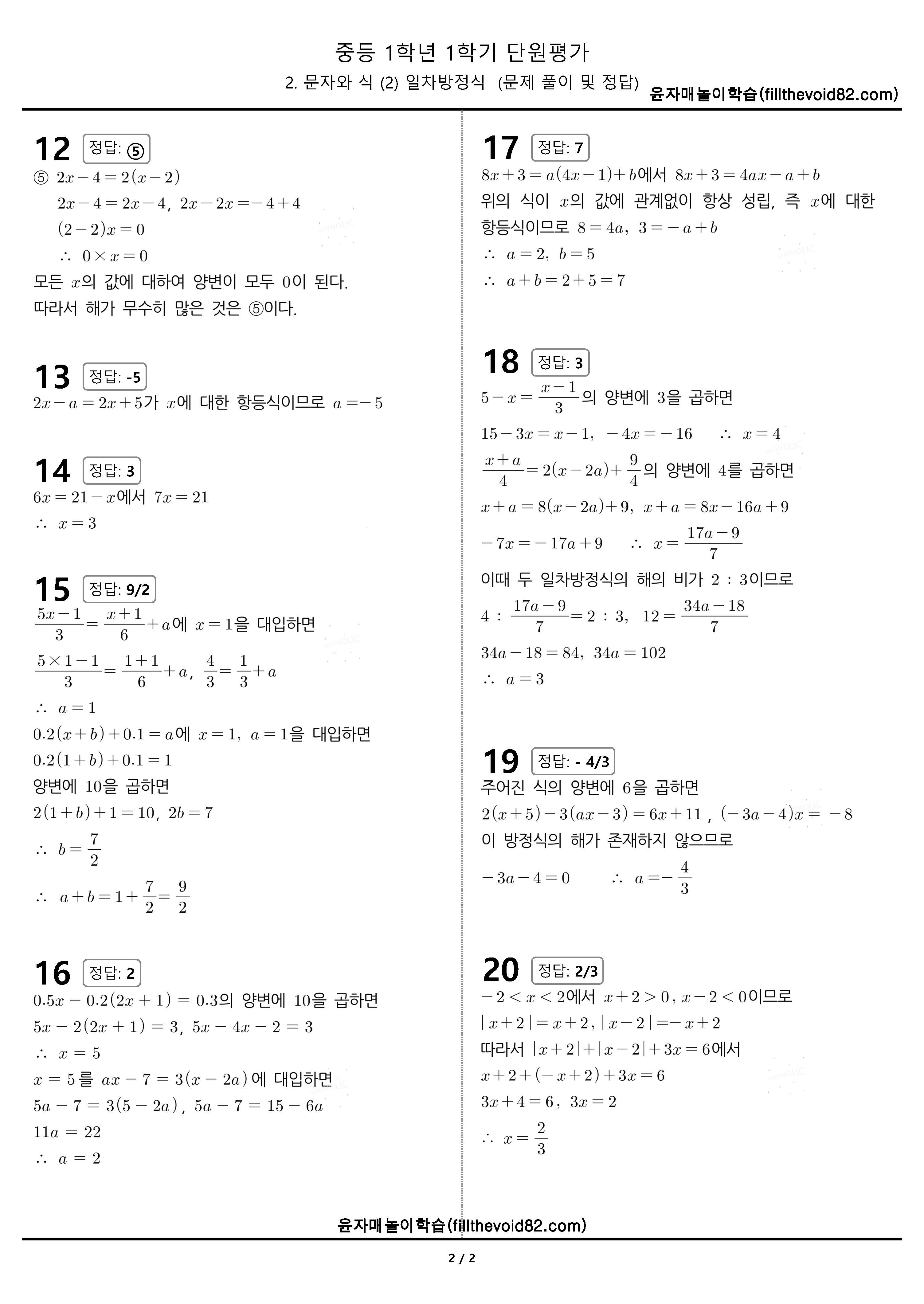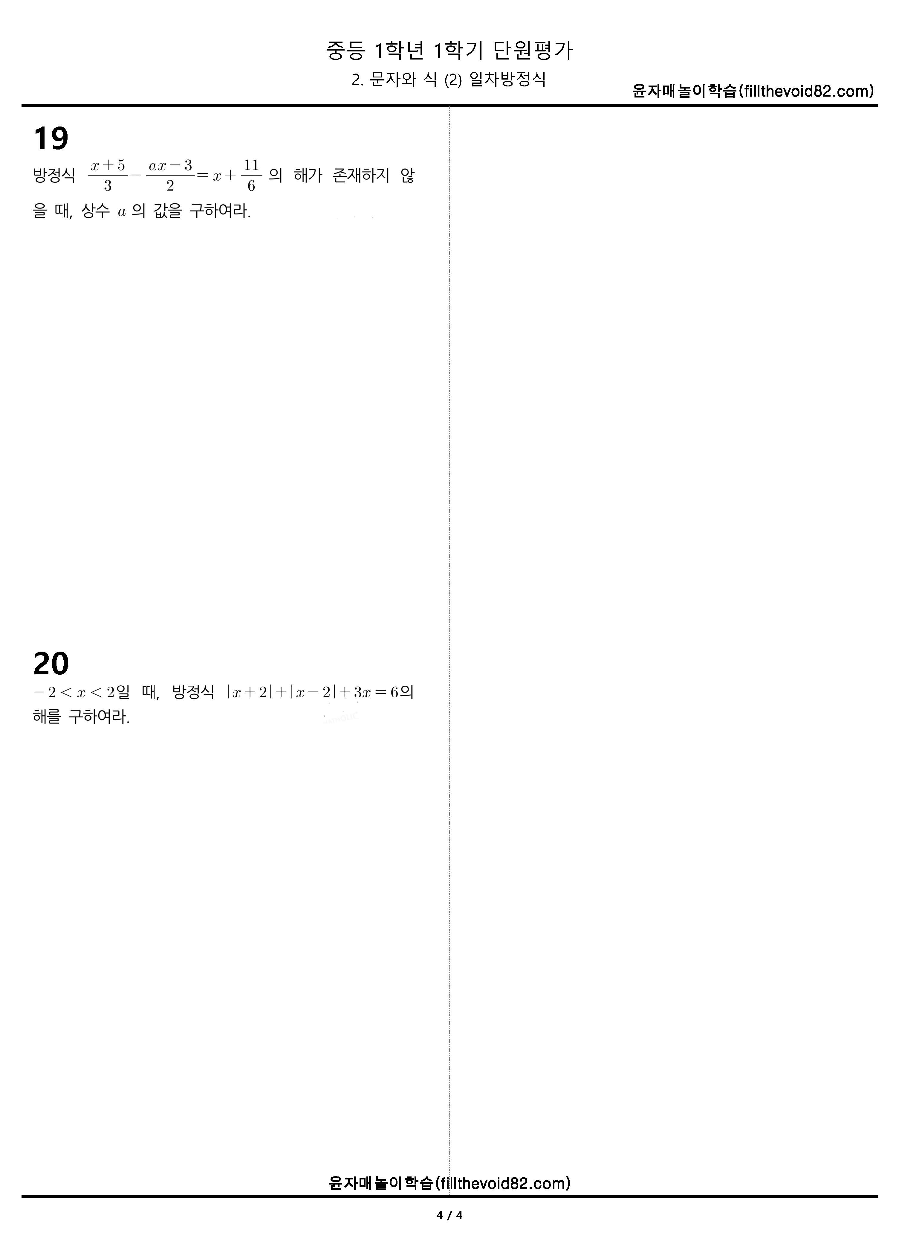 | 중1 단원평가) 1학년 1학기 2. 문자와 식 (3) 일차방정식의 활용 (0) | 2023.04.08 |