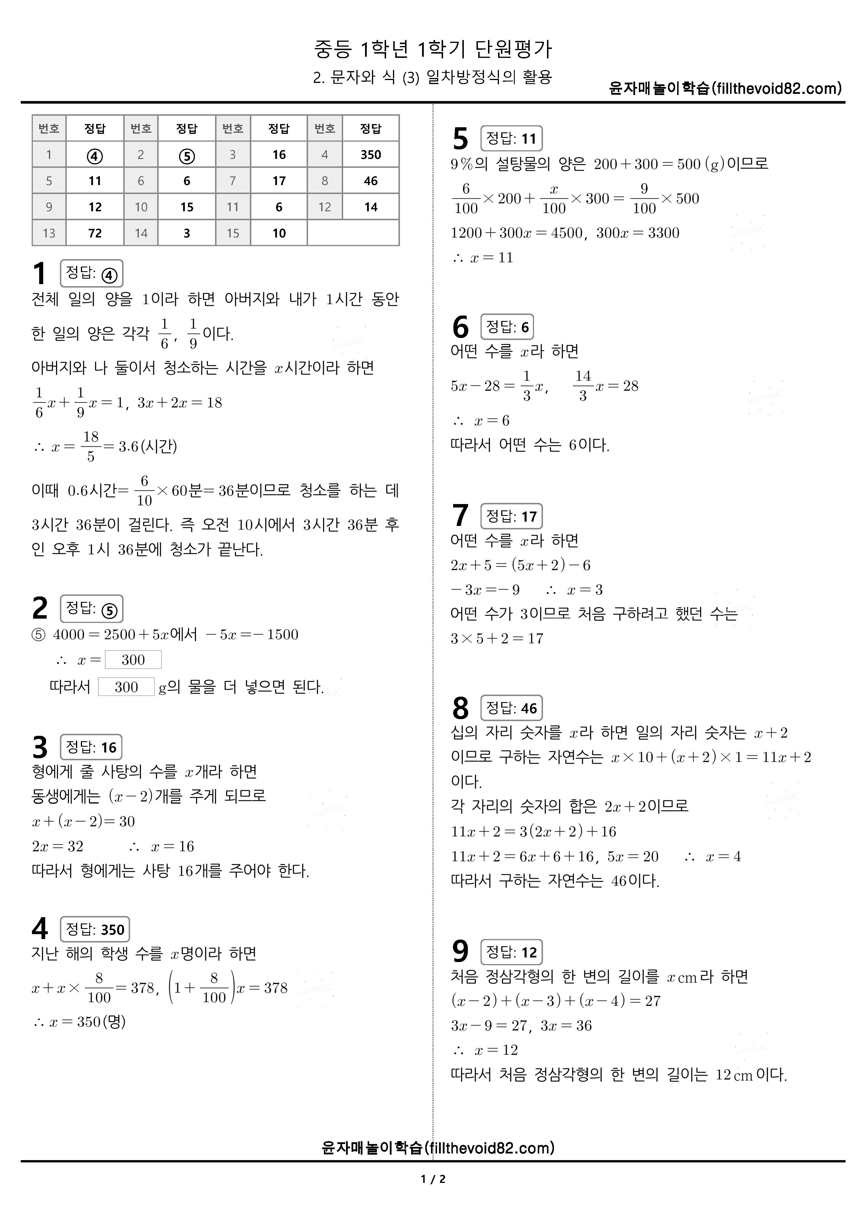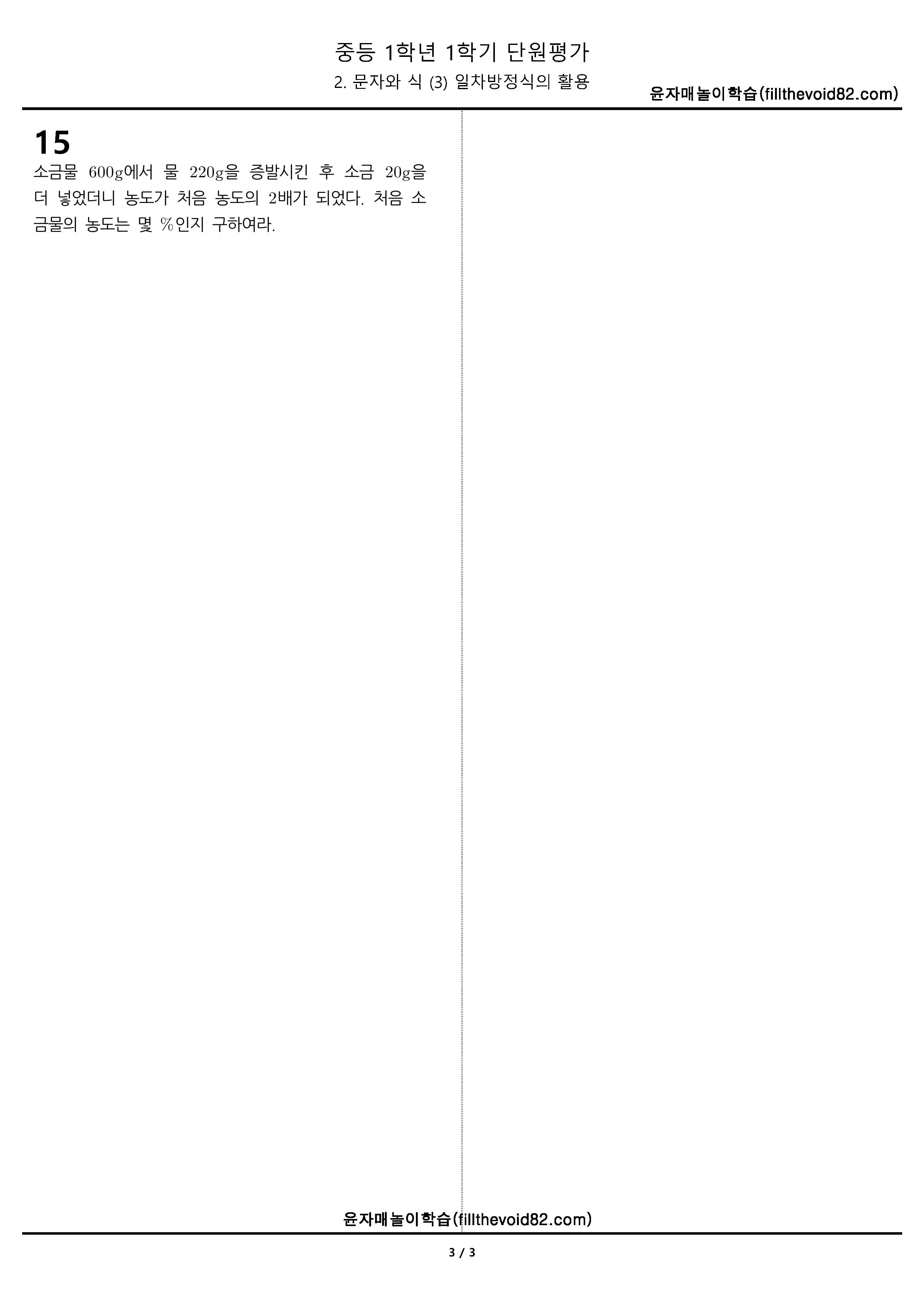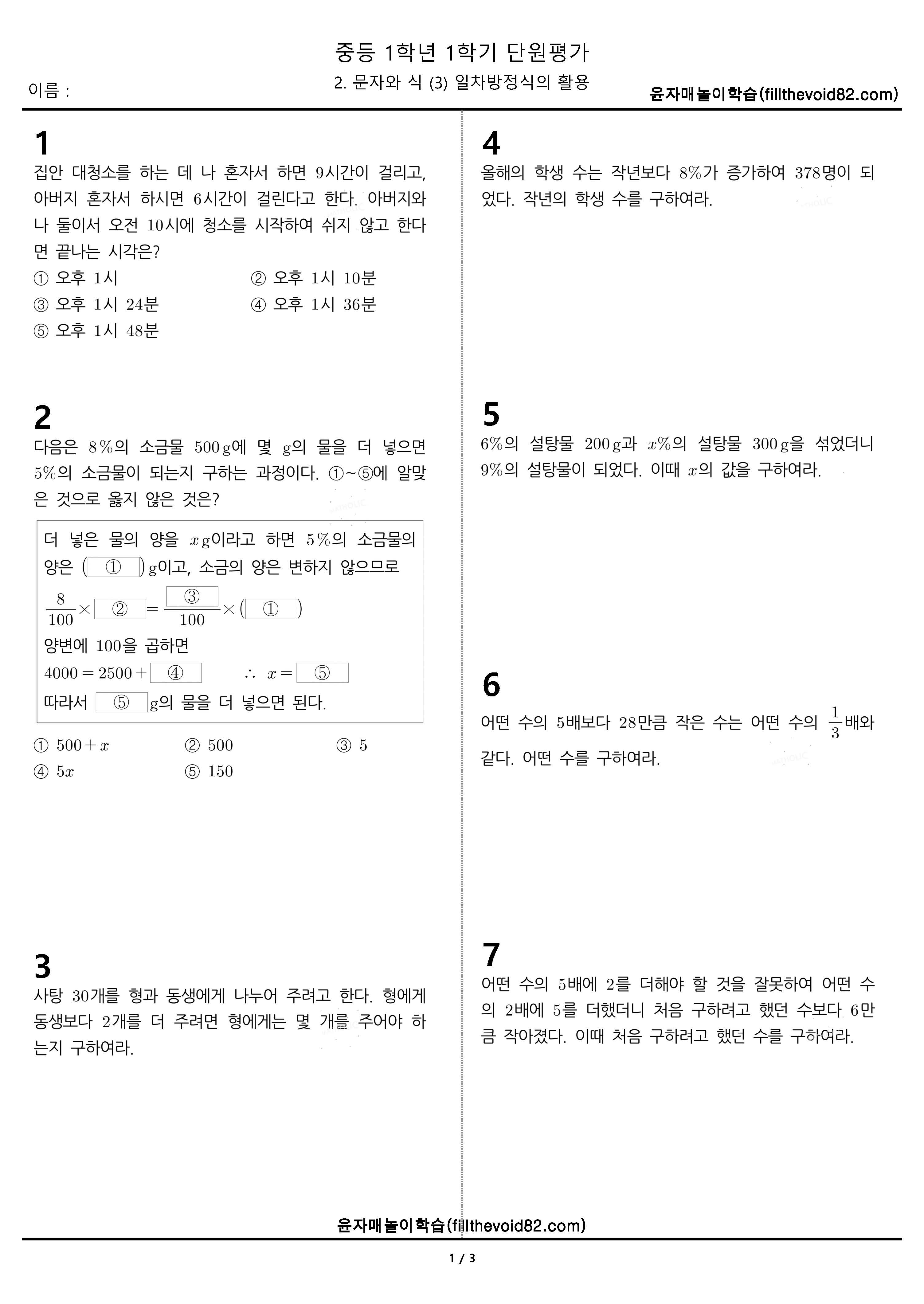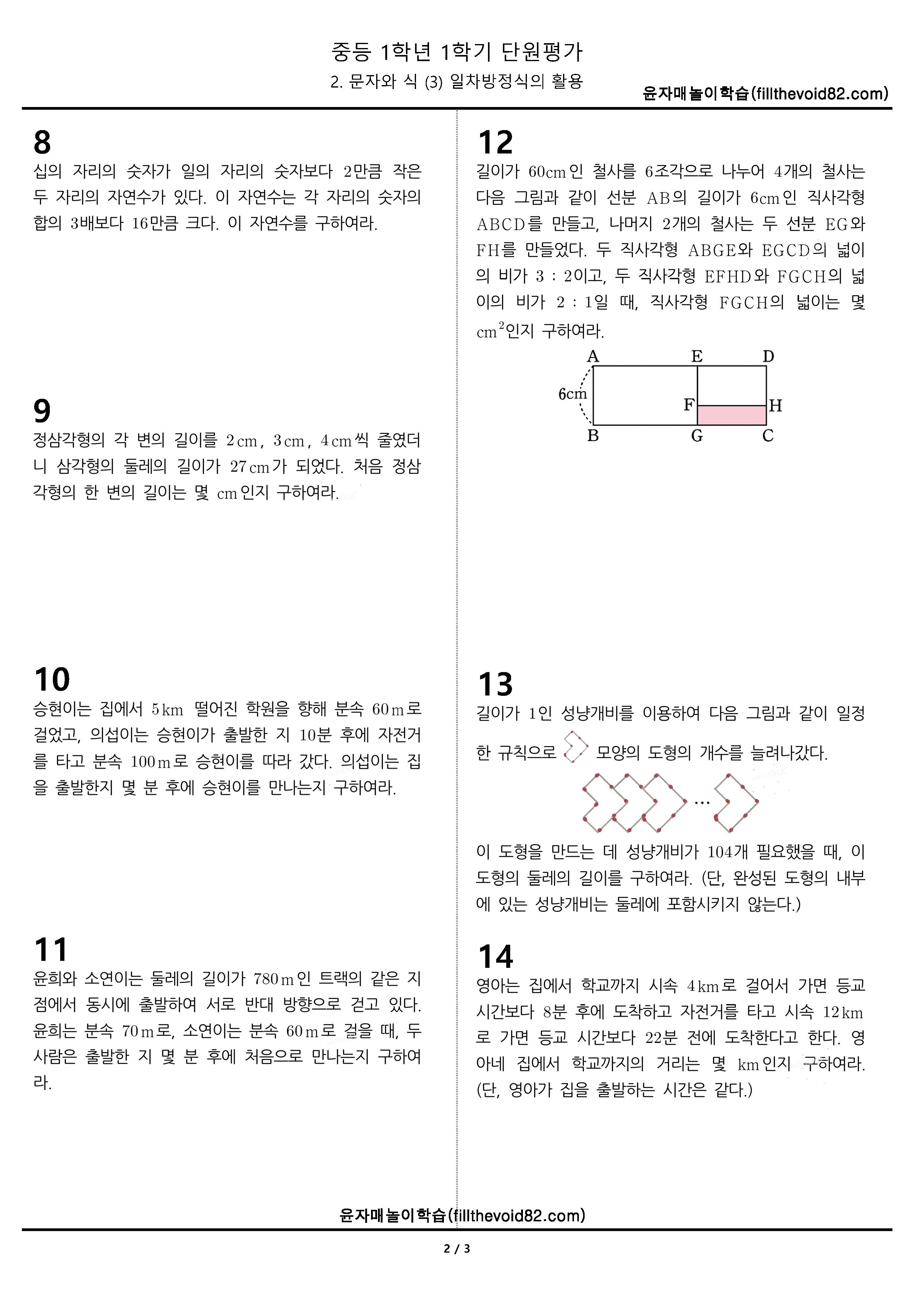 | 중1 단원평가) 1학년 1학기 2. 문자와 식 (2) 일차방정식 (0) | 2023.04.08 |
