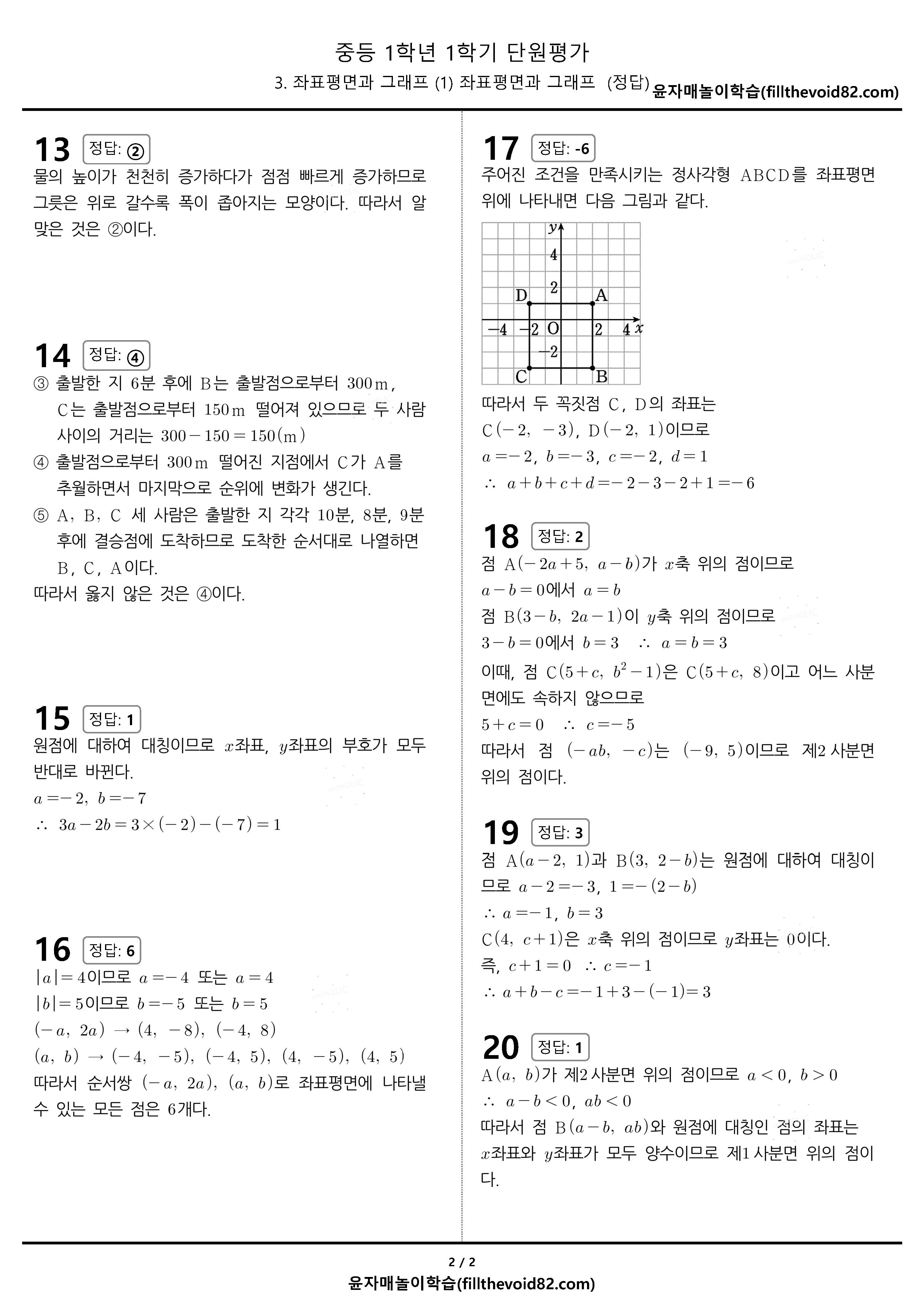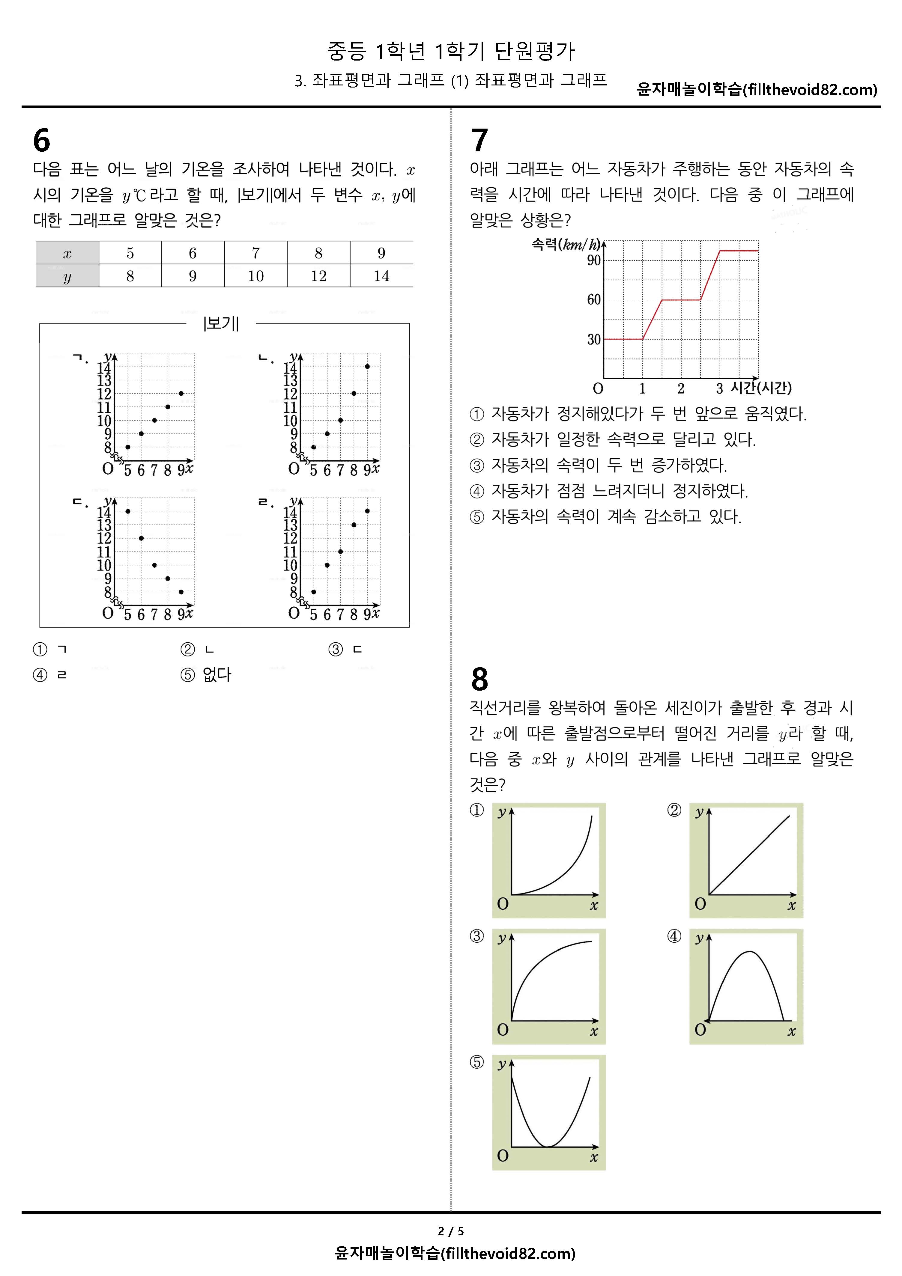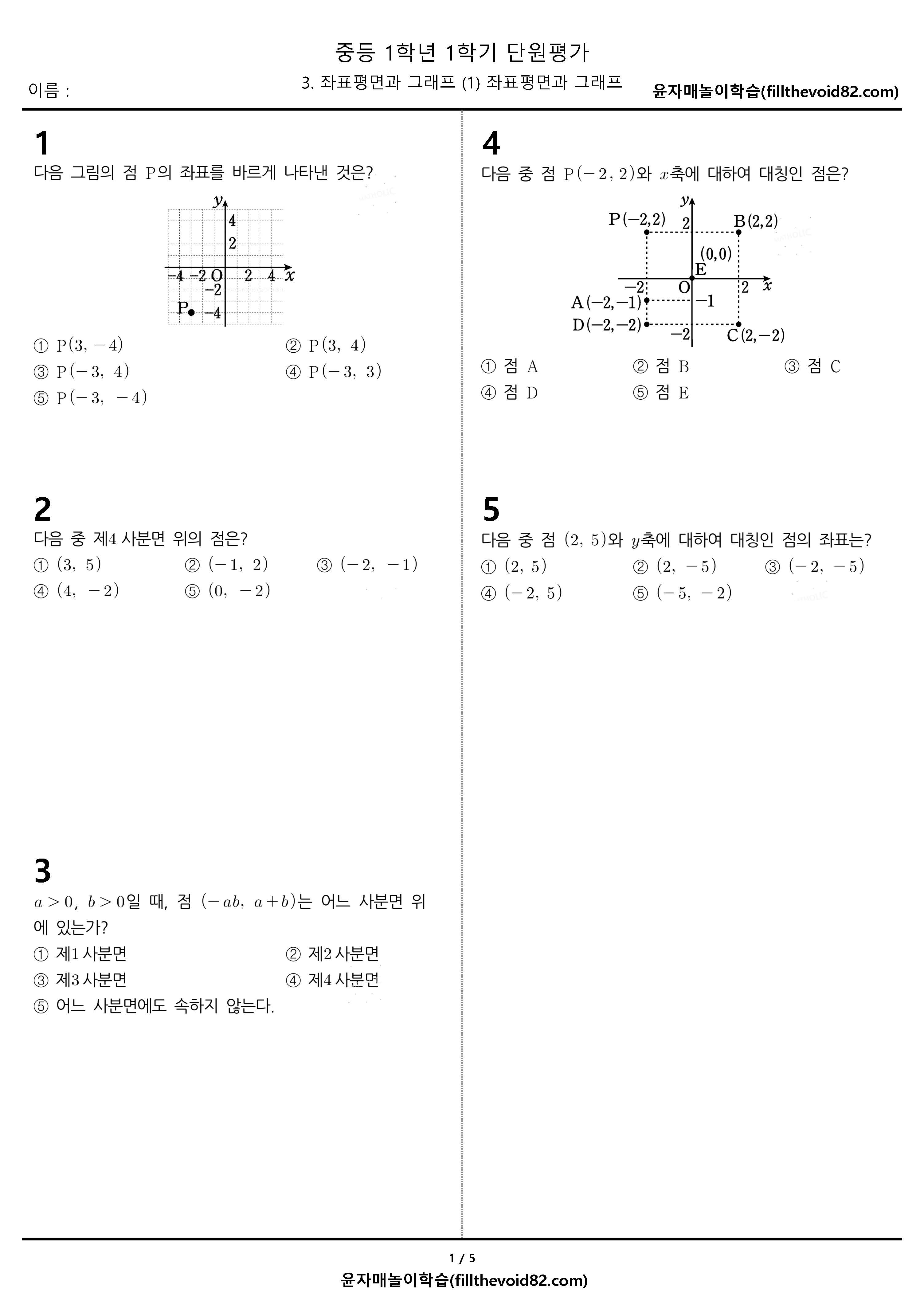 중1-1, 3(1) 좌표평면과 그래프 단원평가 20문제입니다.