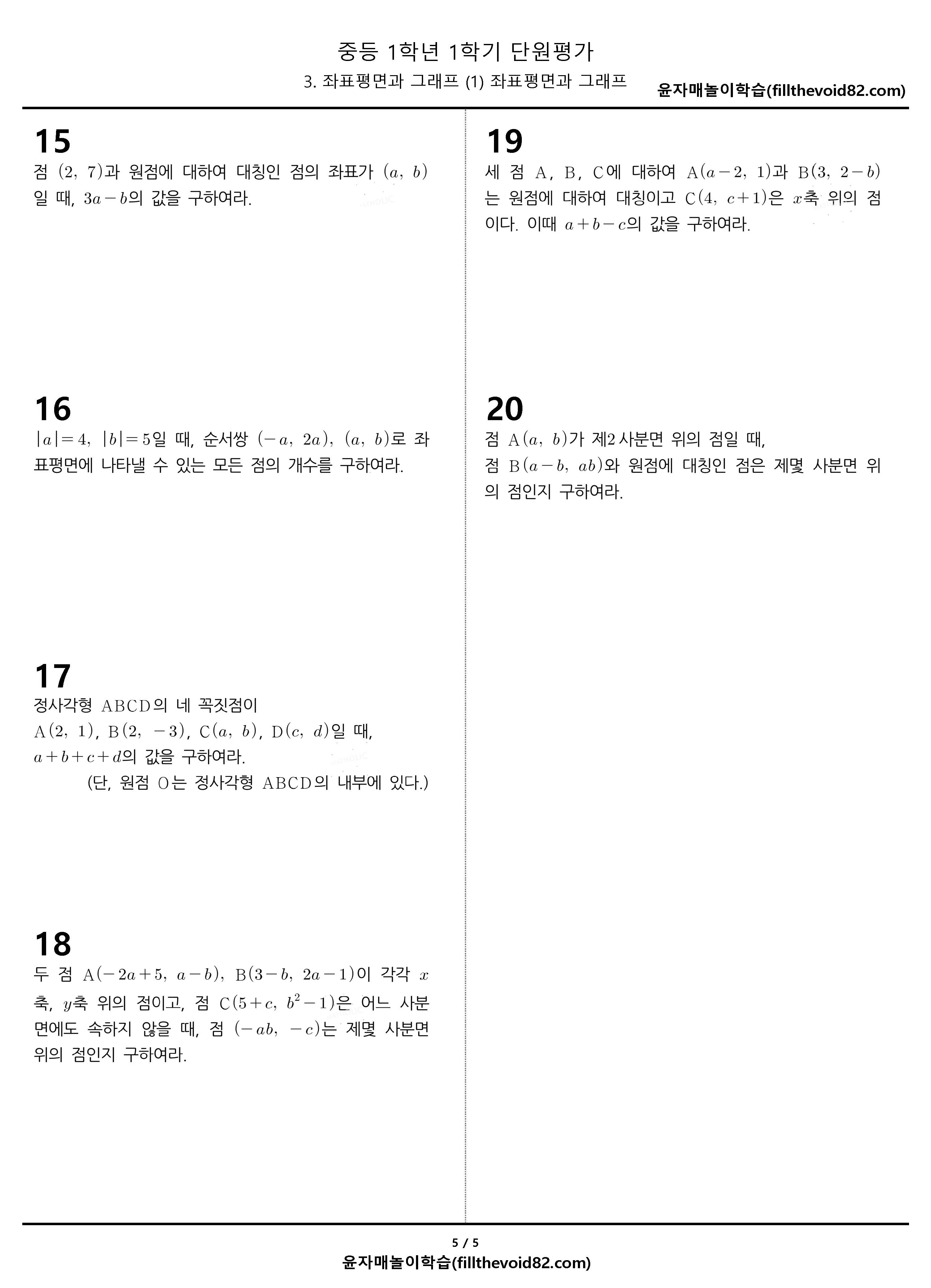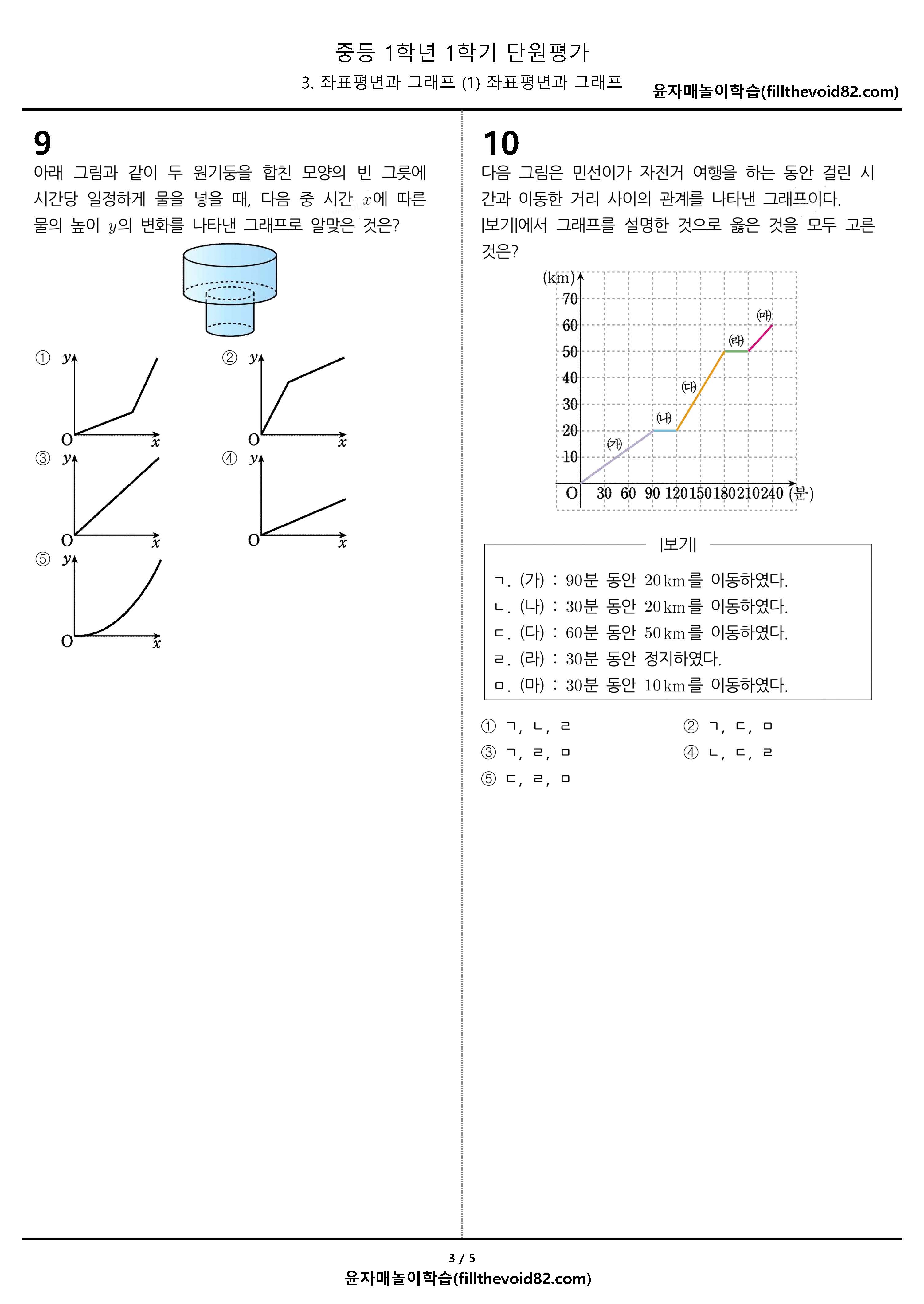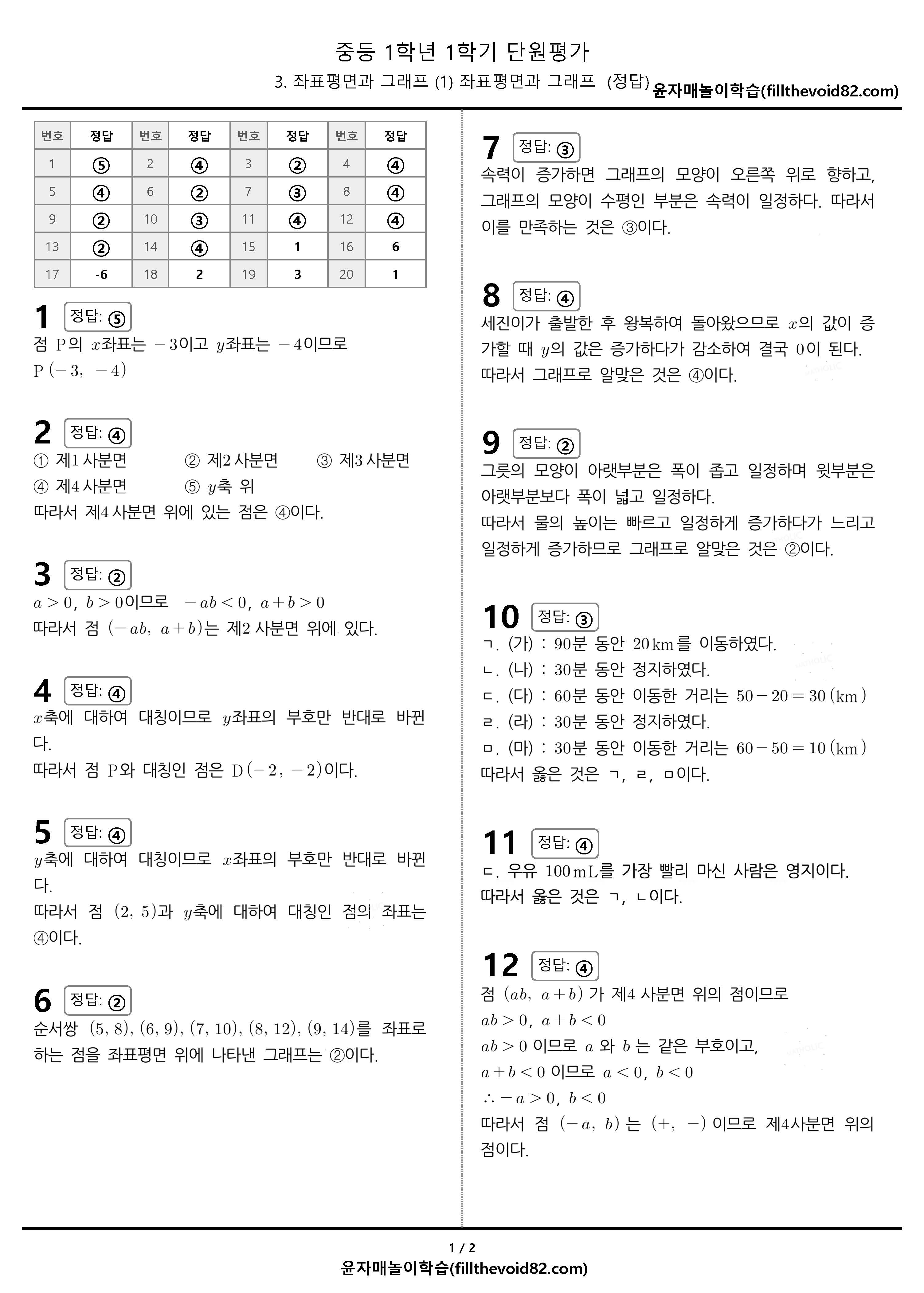 중1-1, 3(1) 좌표평면과 그래프 단원평가 20문제입니다.