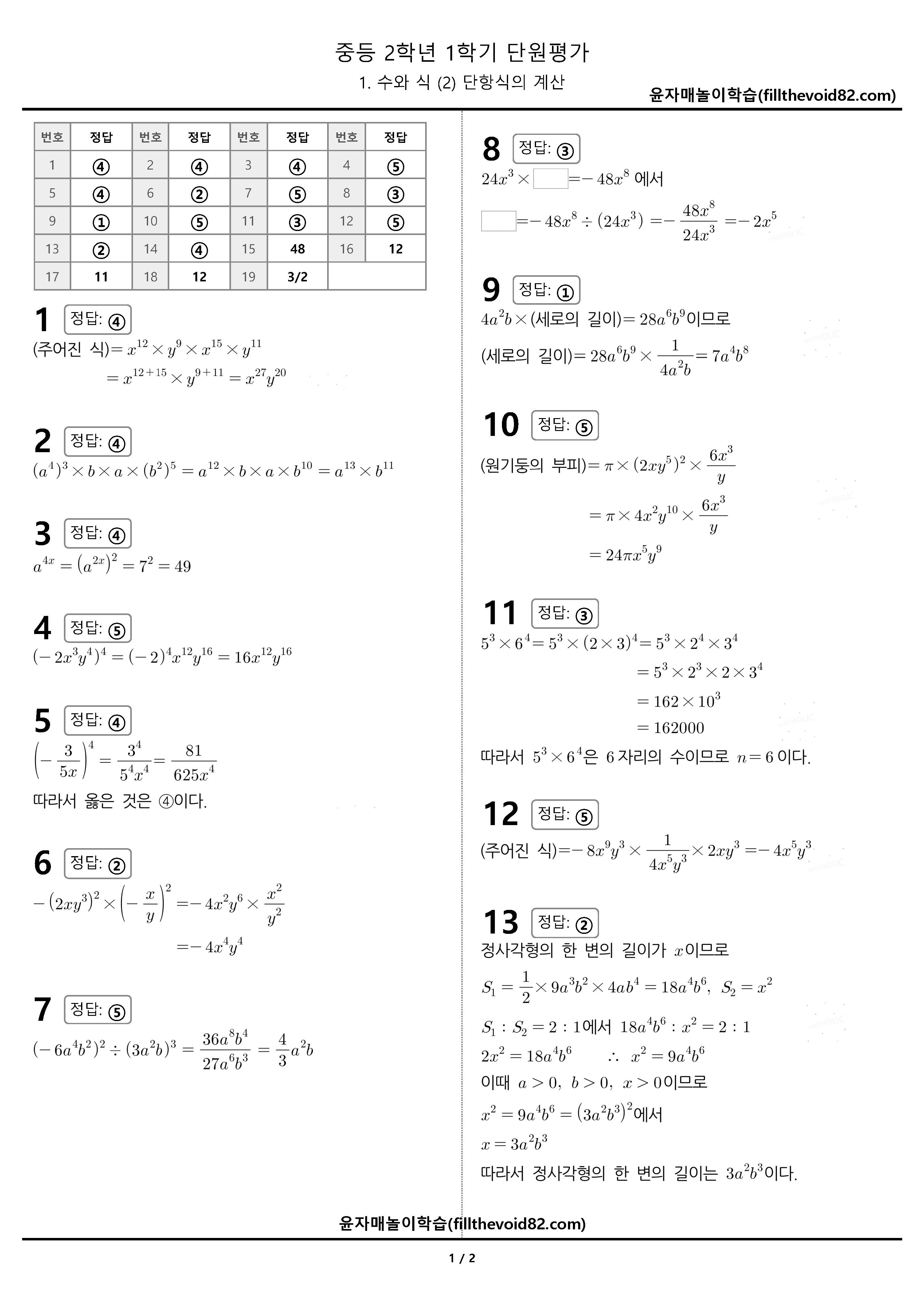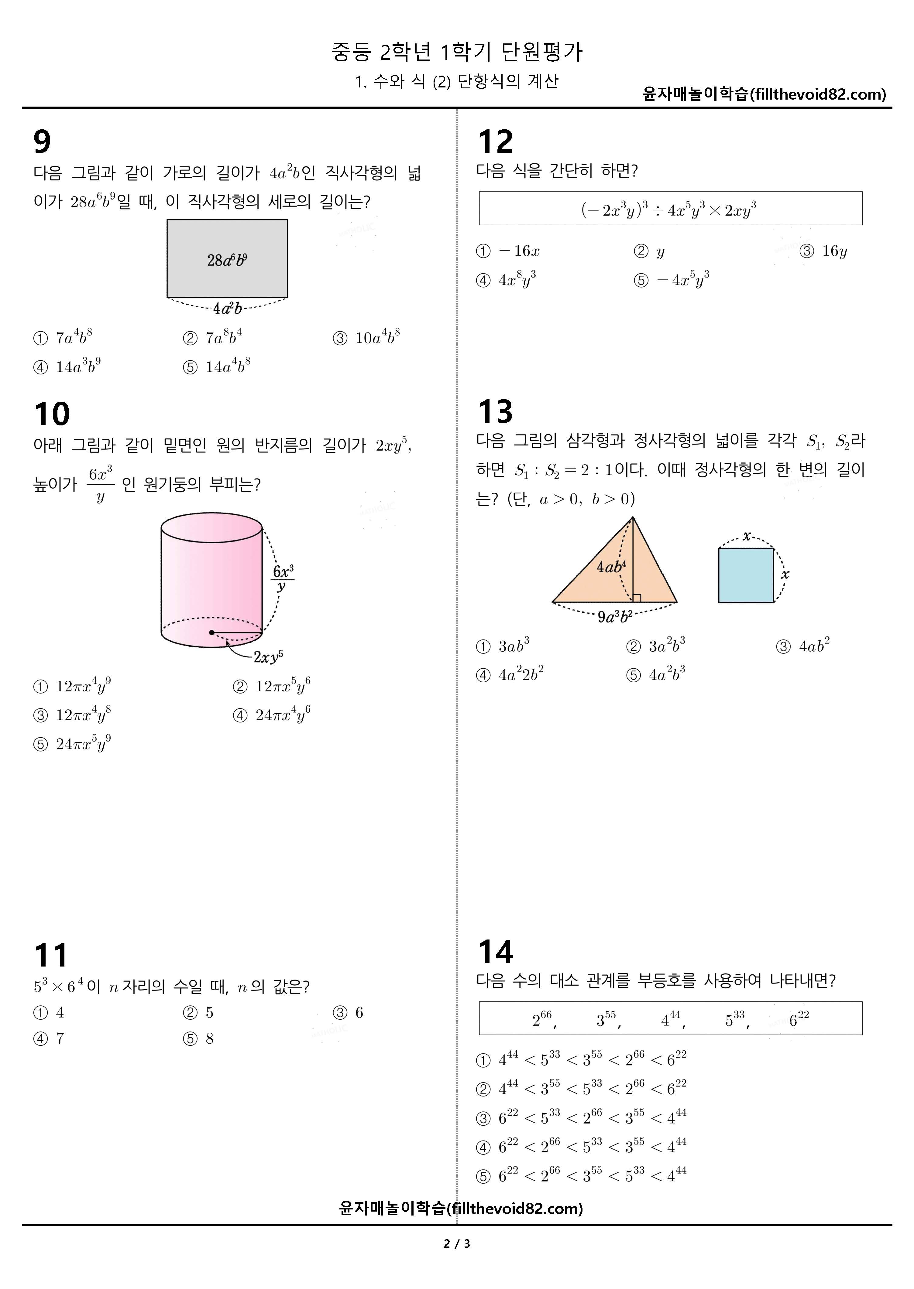 '수학문제지 > 중등단원평가' 카테고리의 다른 글