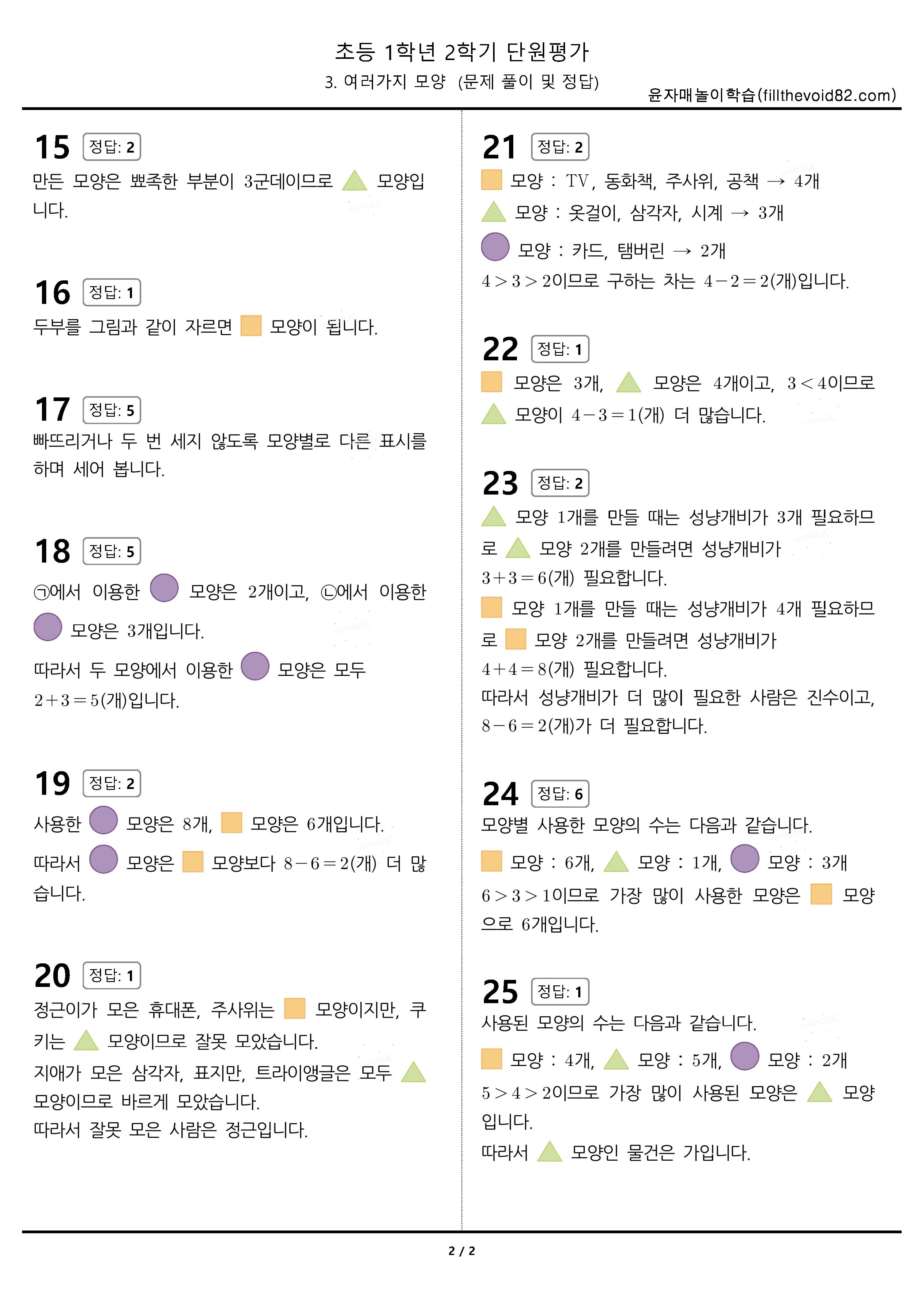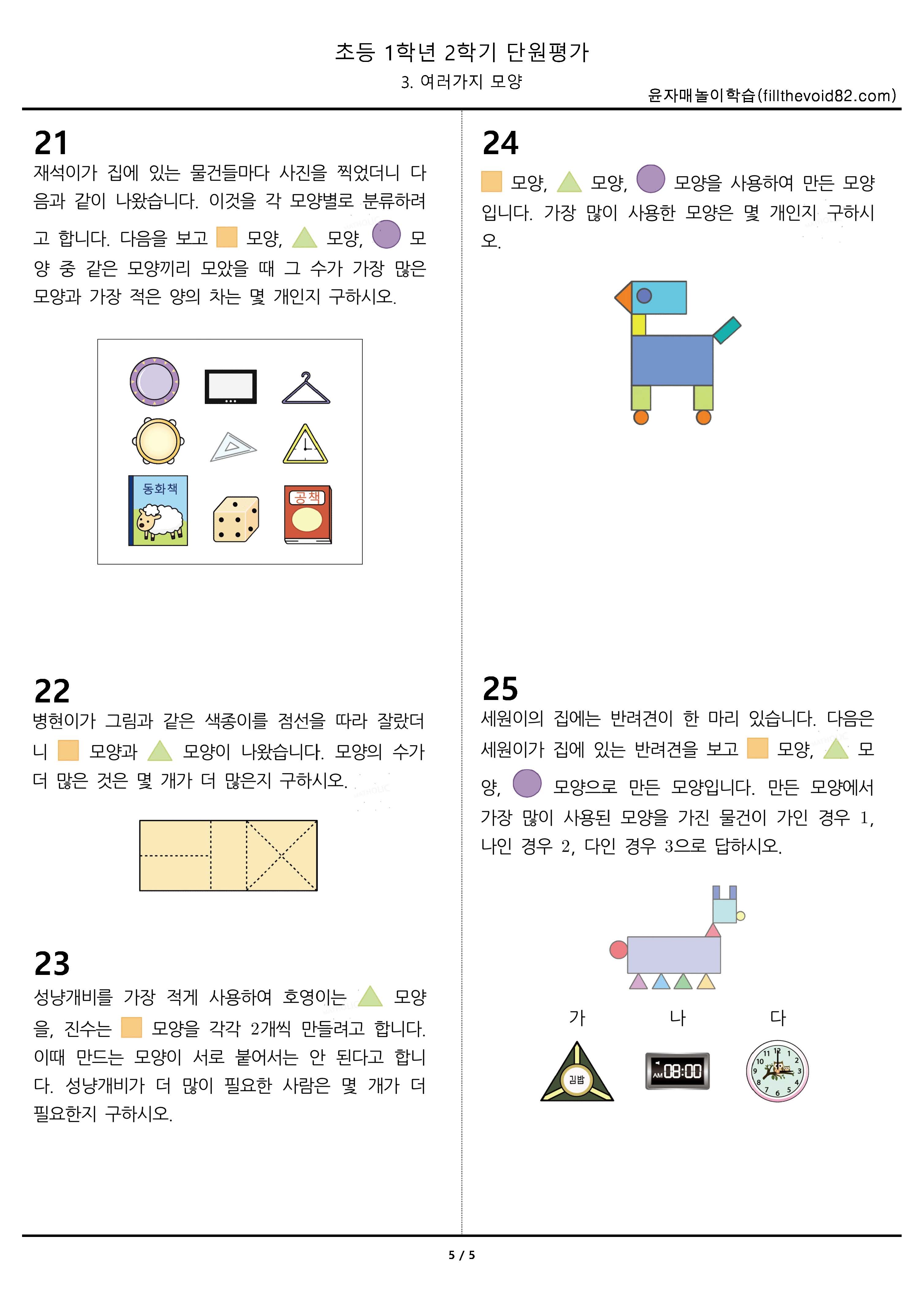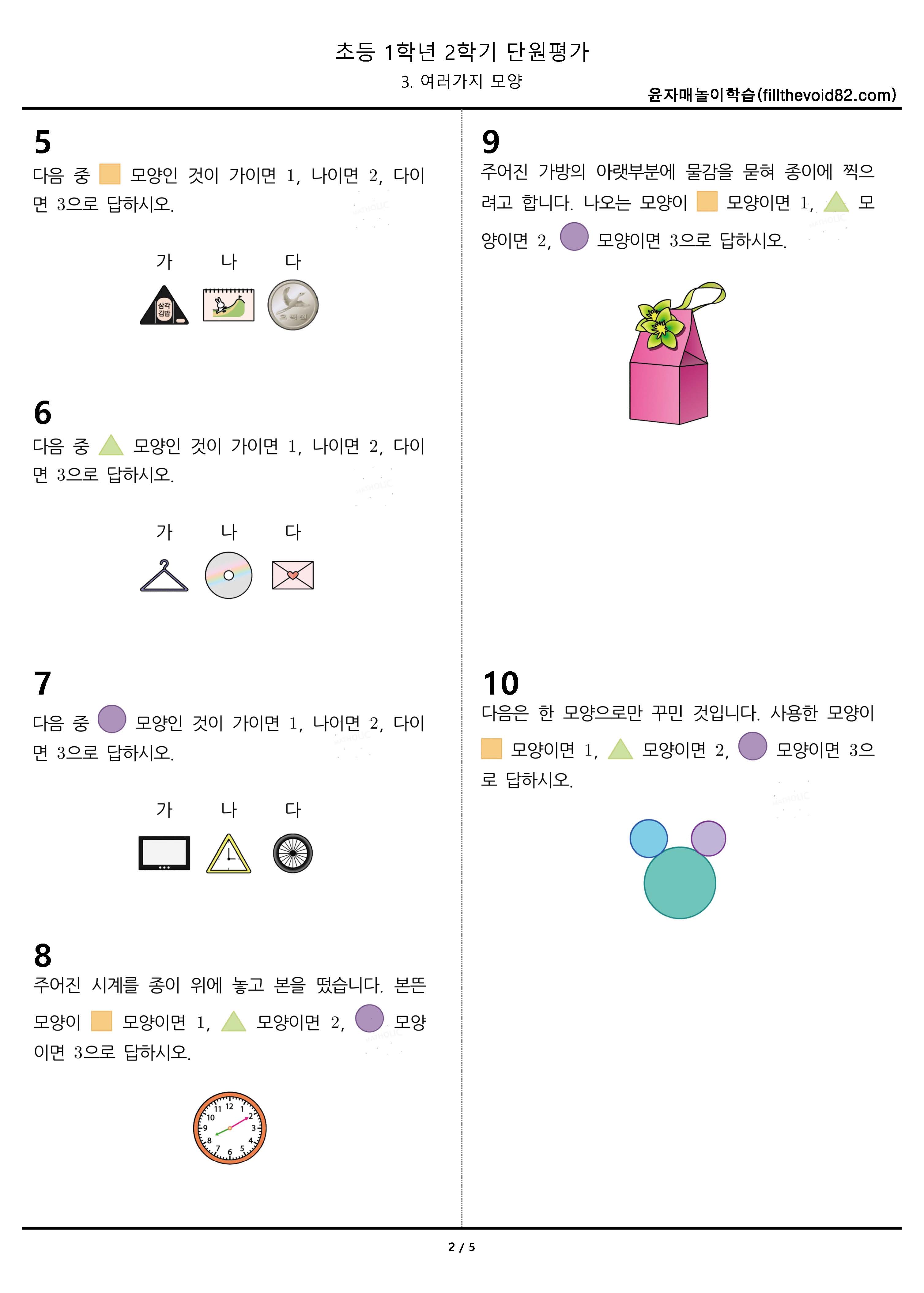 초등 1학년 2학기 3단원을 평가 할 수 있는 무료학습지입니다.