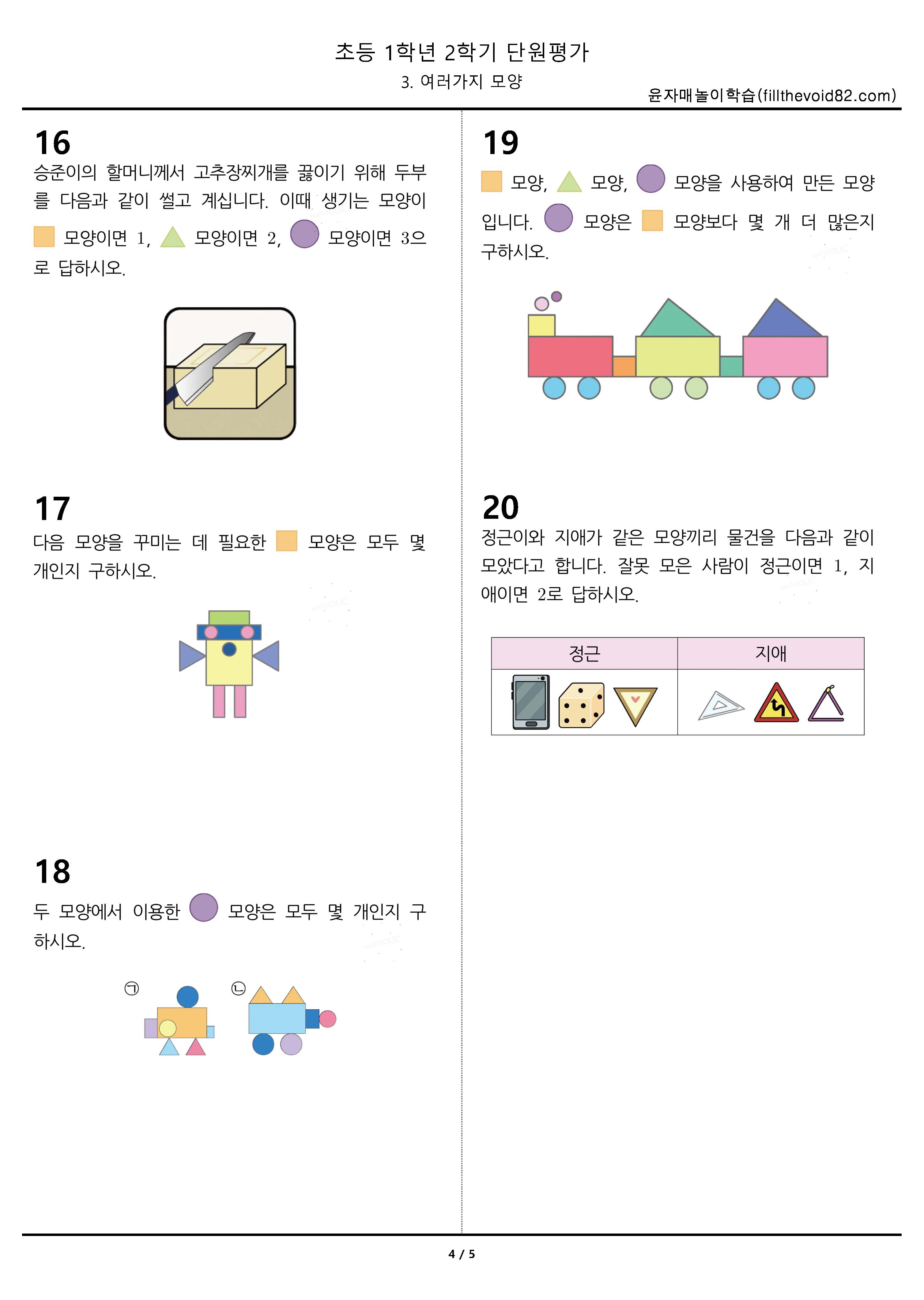 '수학문제지 > 초등단원평가' 카테고리의 다른 글