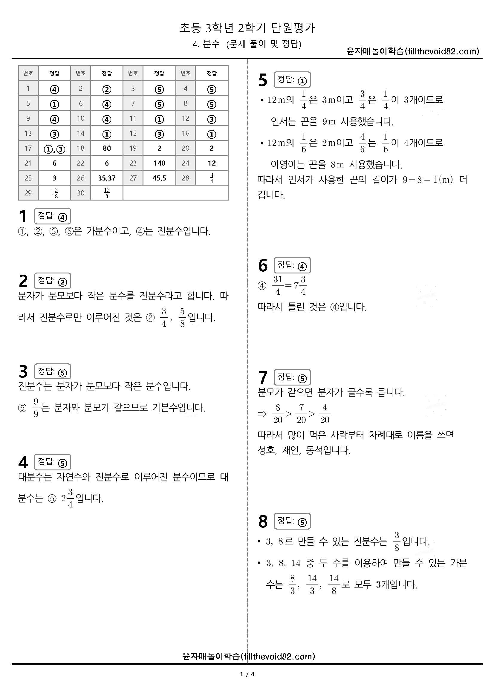 초등 3학년 2학기 4단원을 평가 할 수 있는 무료학습지입니다.
