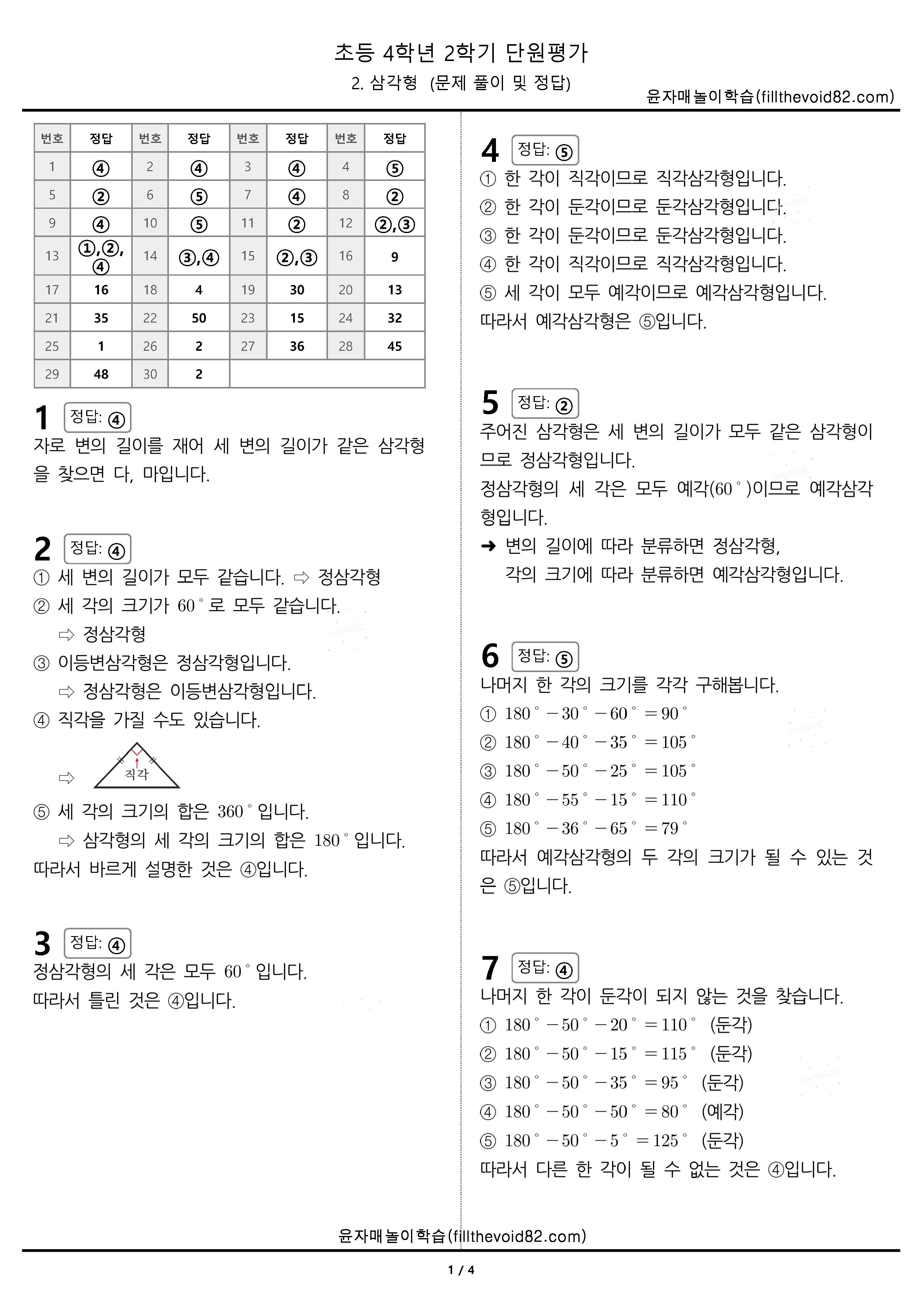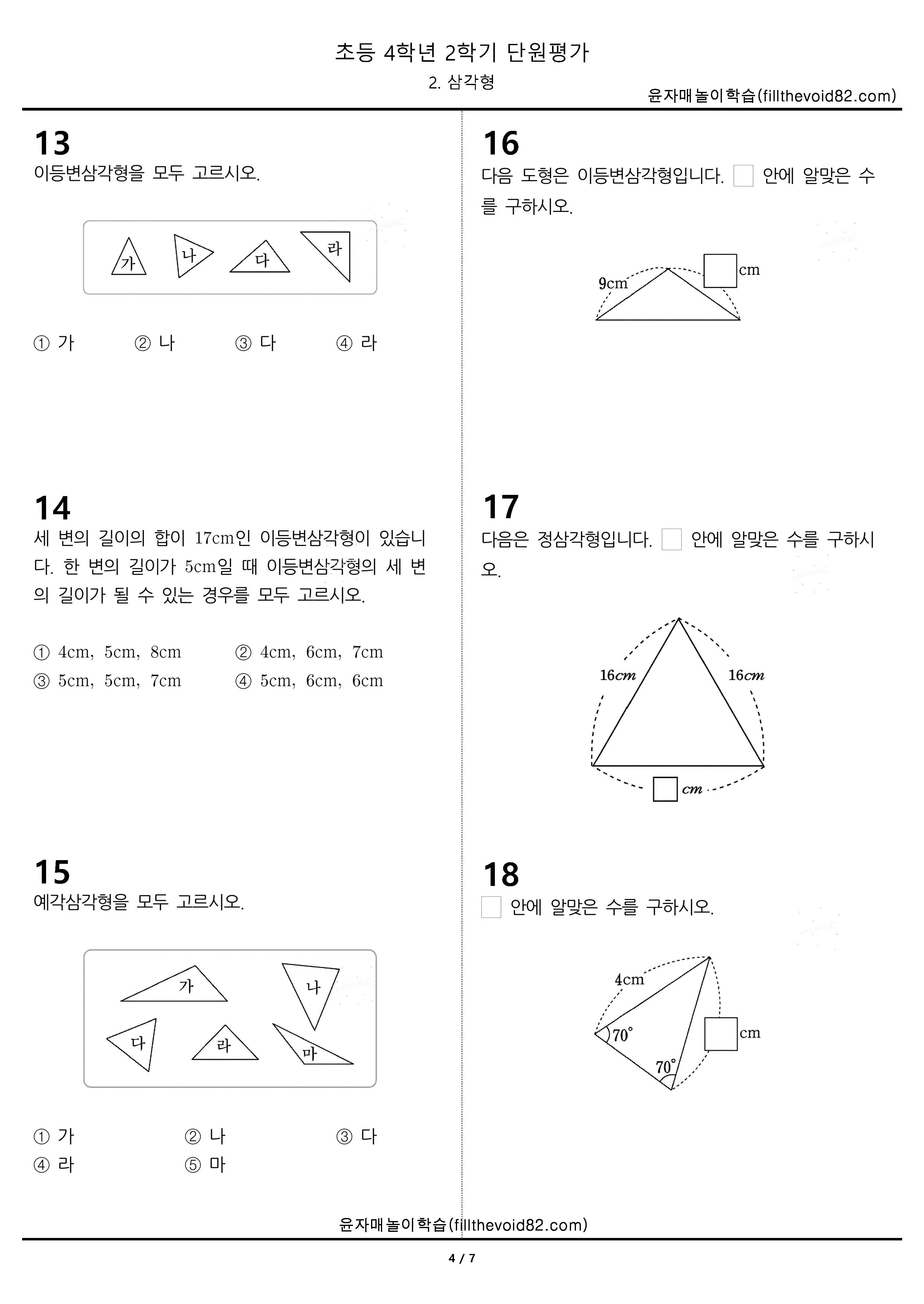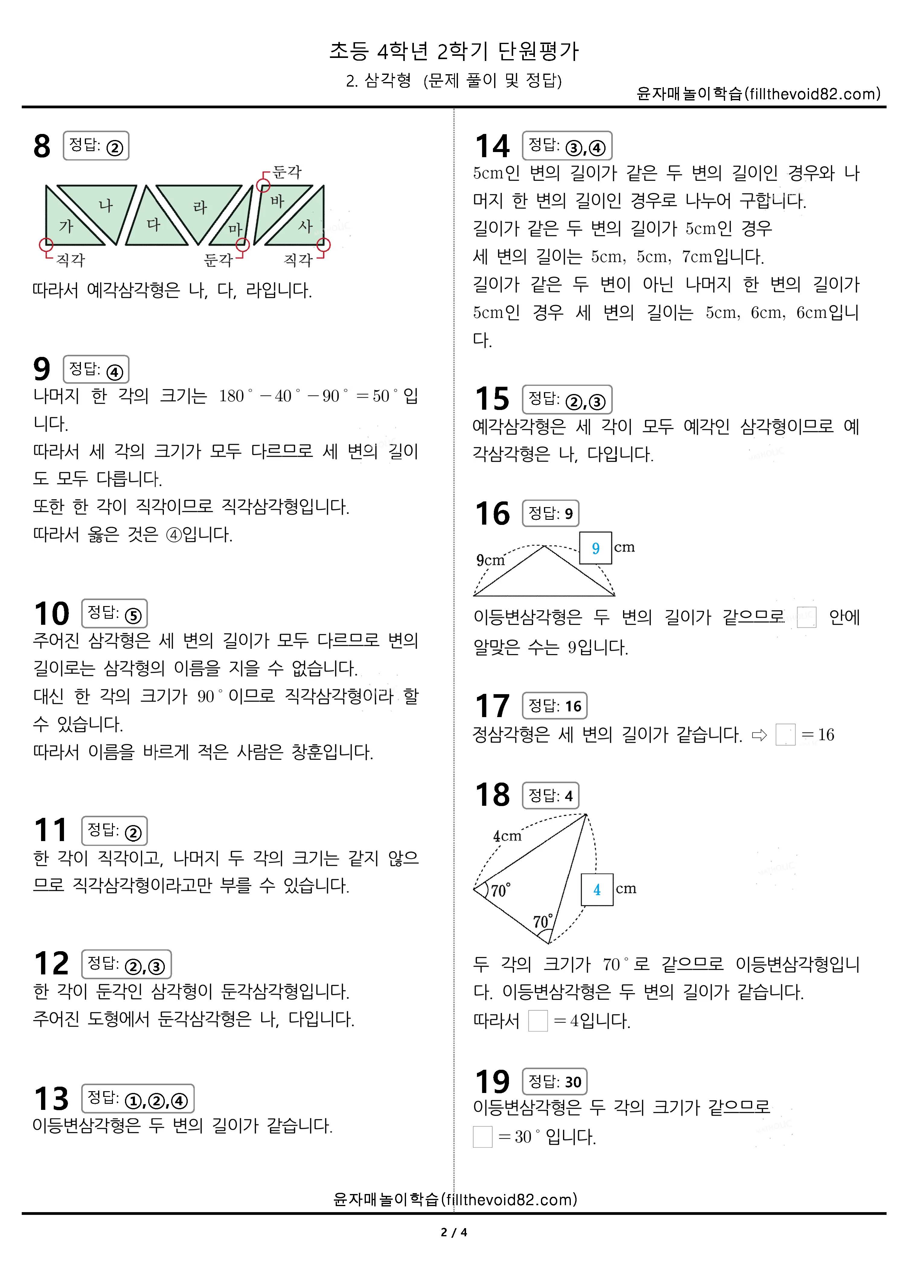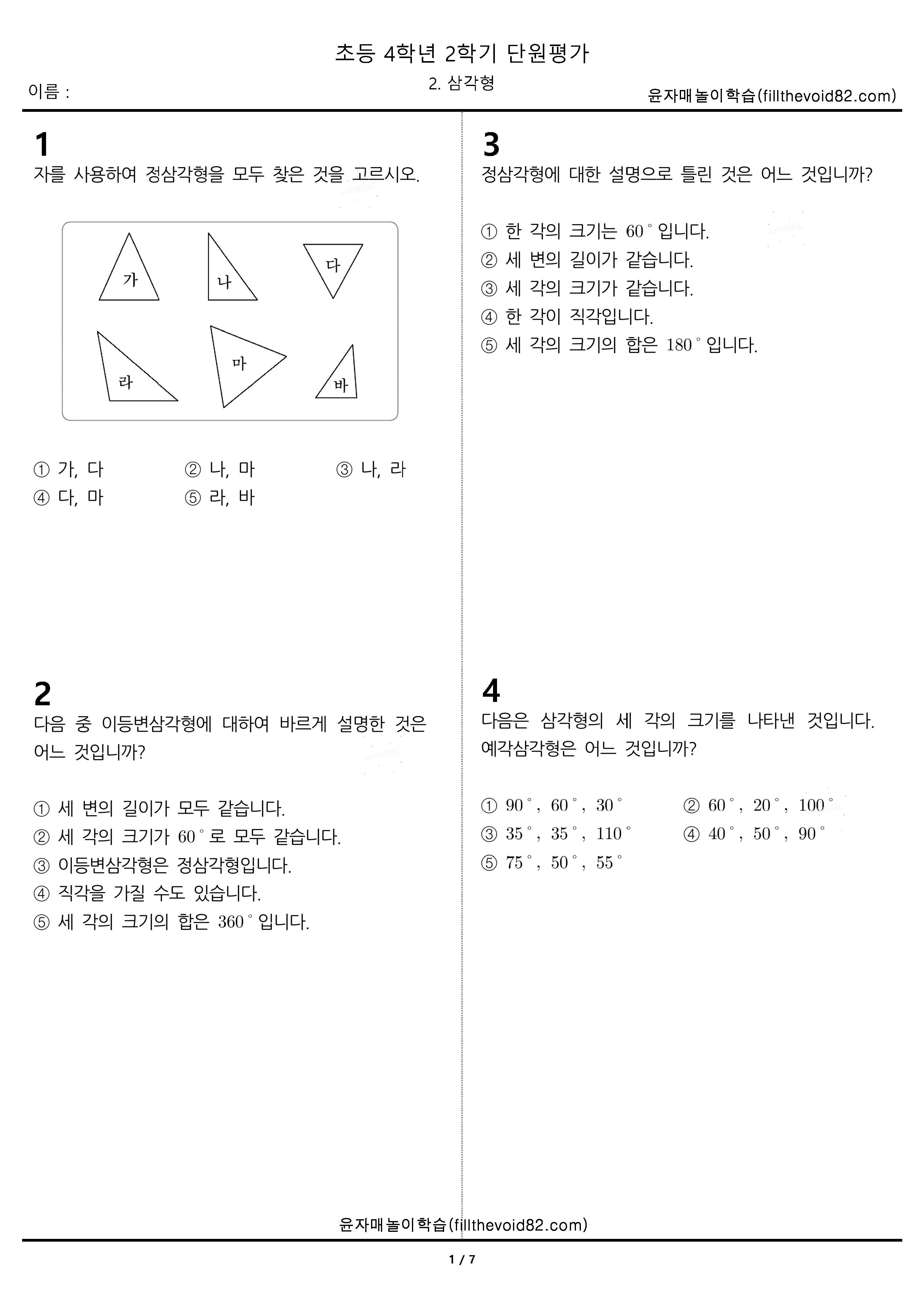 초등 4학년 2학기 2단원을 평가 할 수 있는 무료학습지입니다.