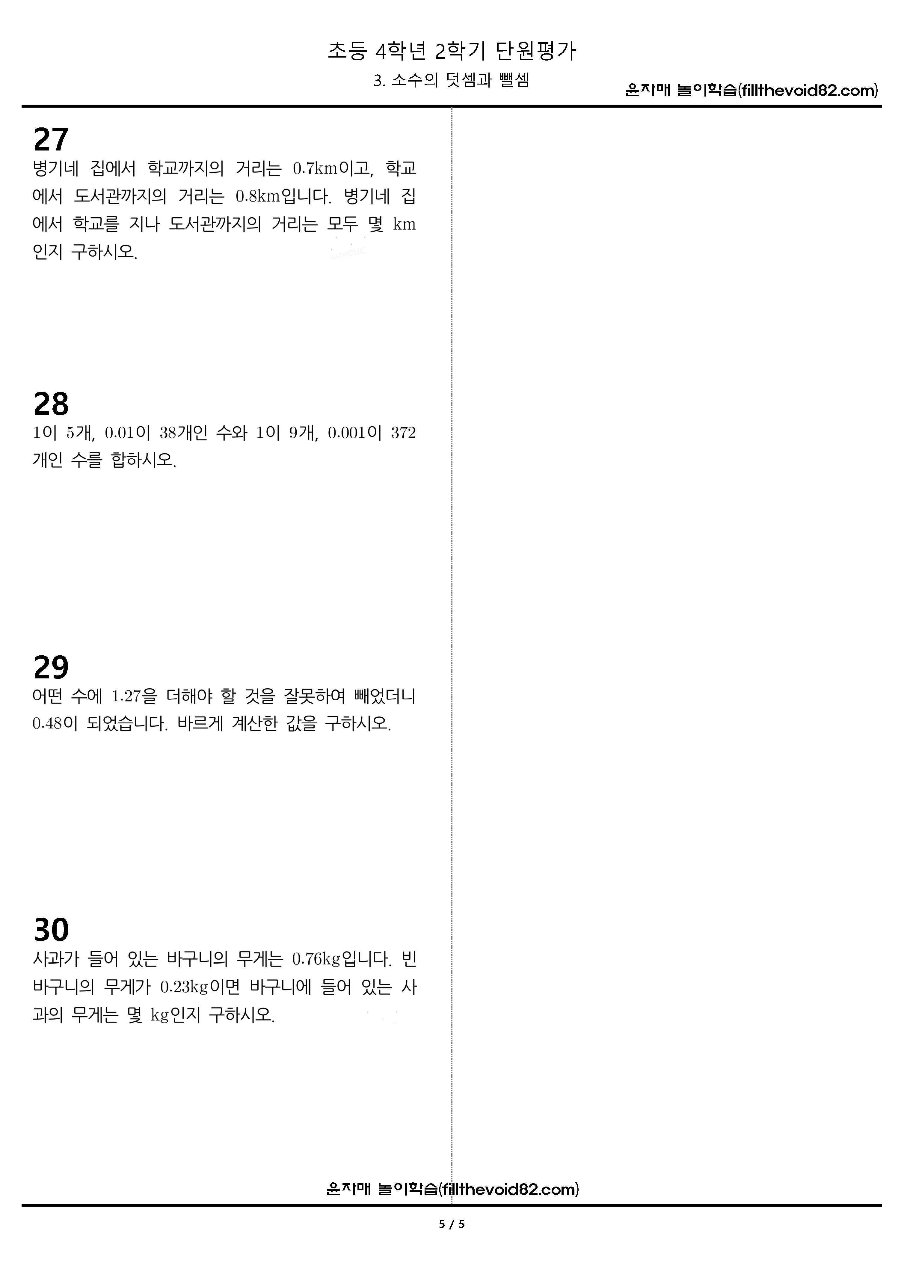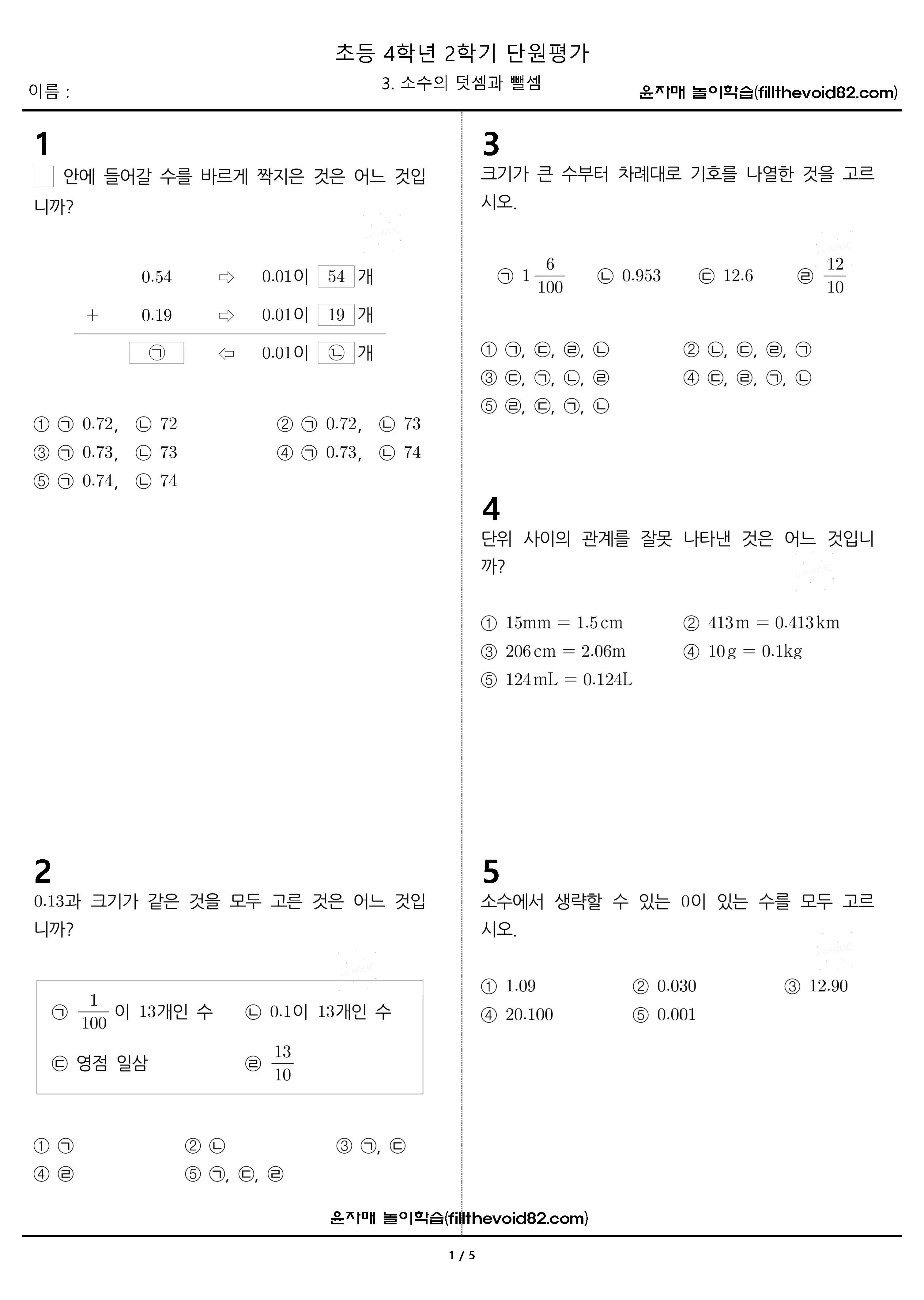 '수학문제지 > 초등단원평가' 카테고리의 다른 글