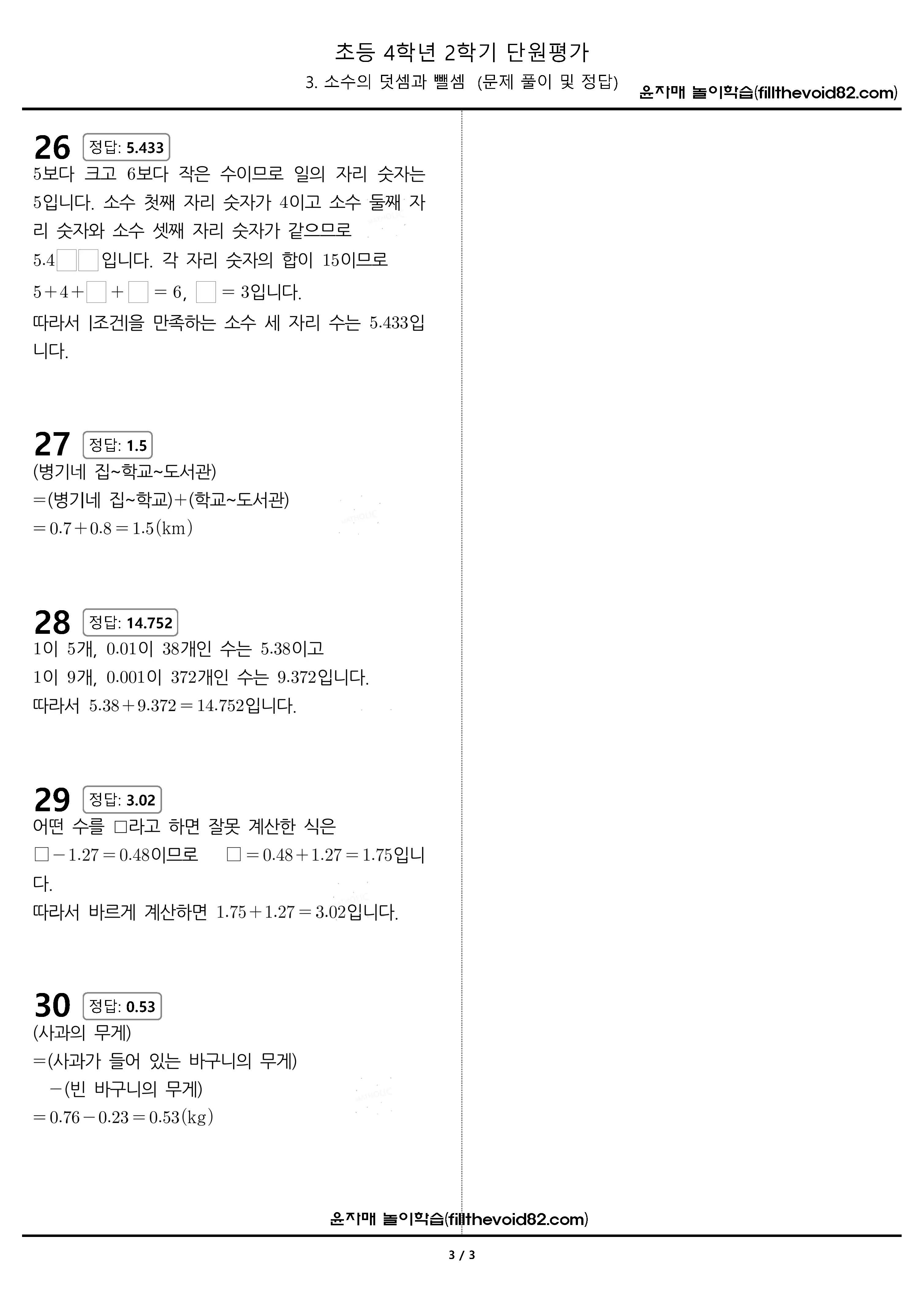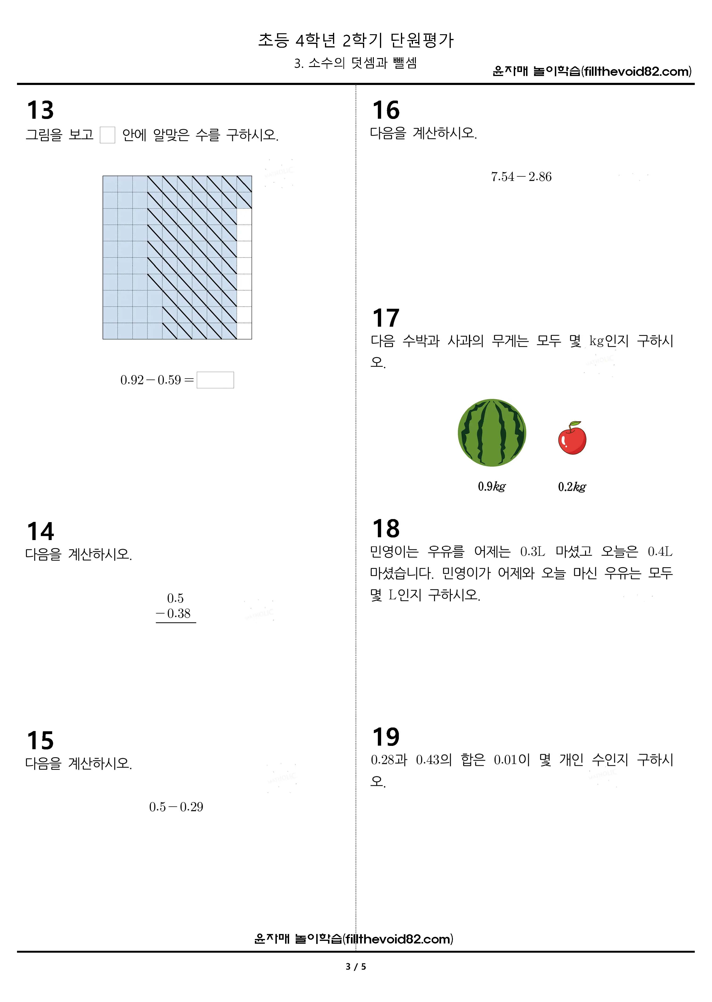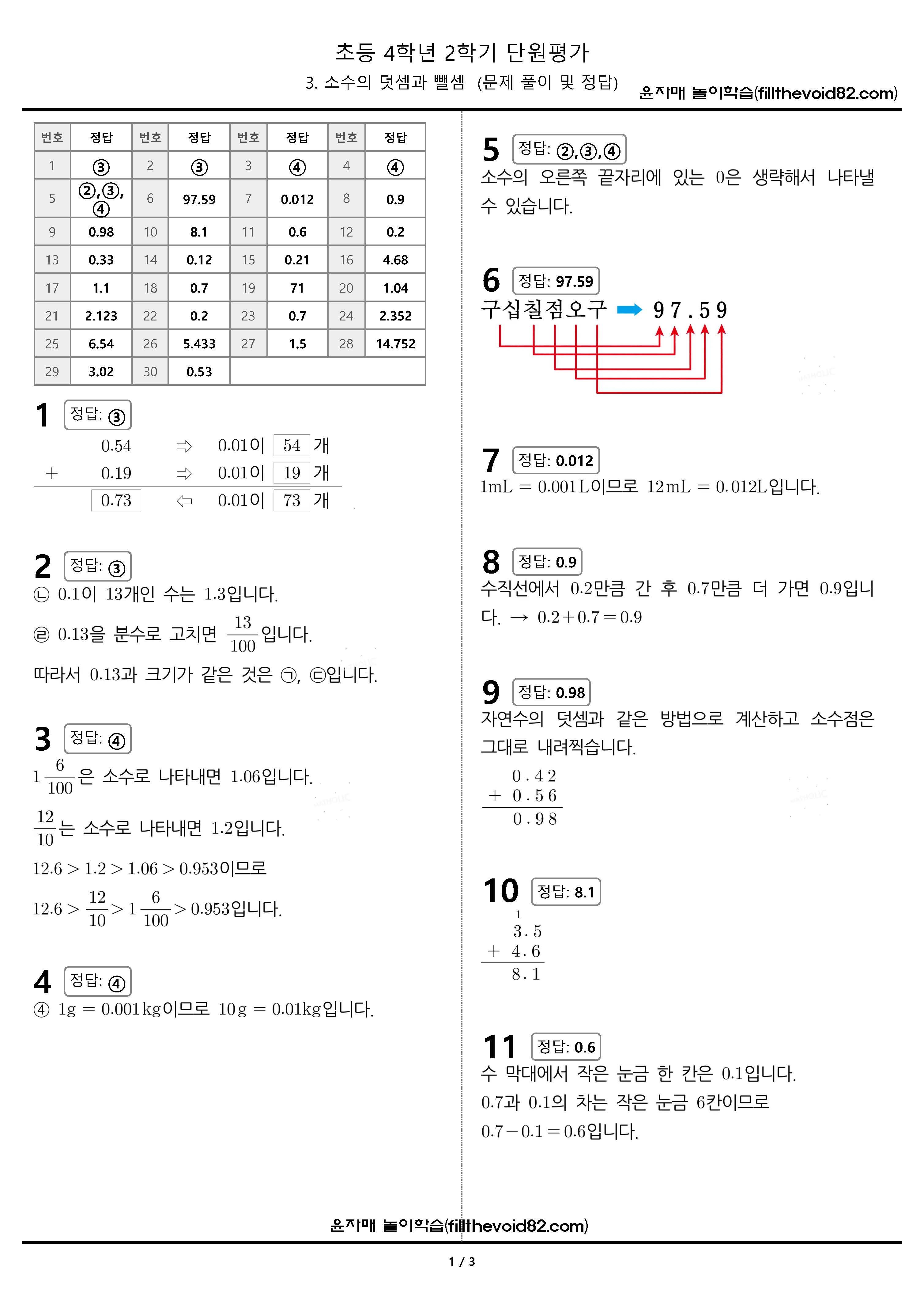 초등 4학년 2학기 3단원을 평가 할 수 있는 무료학습지입니다.