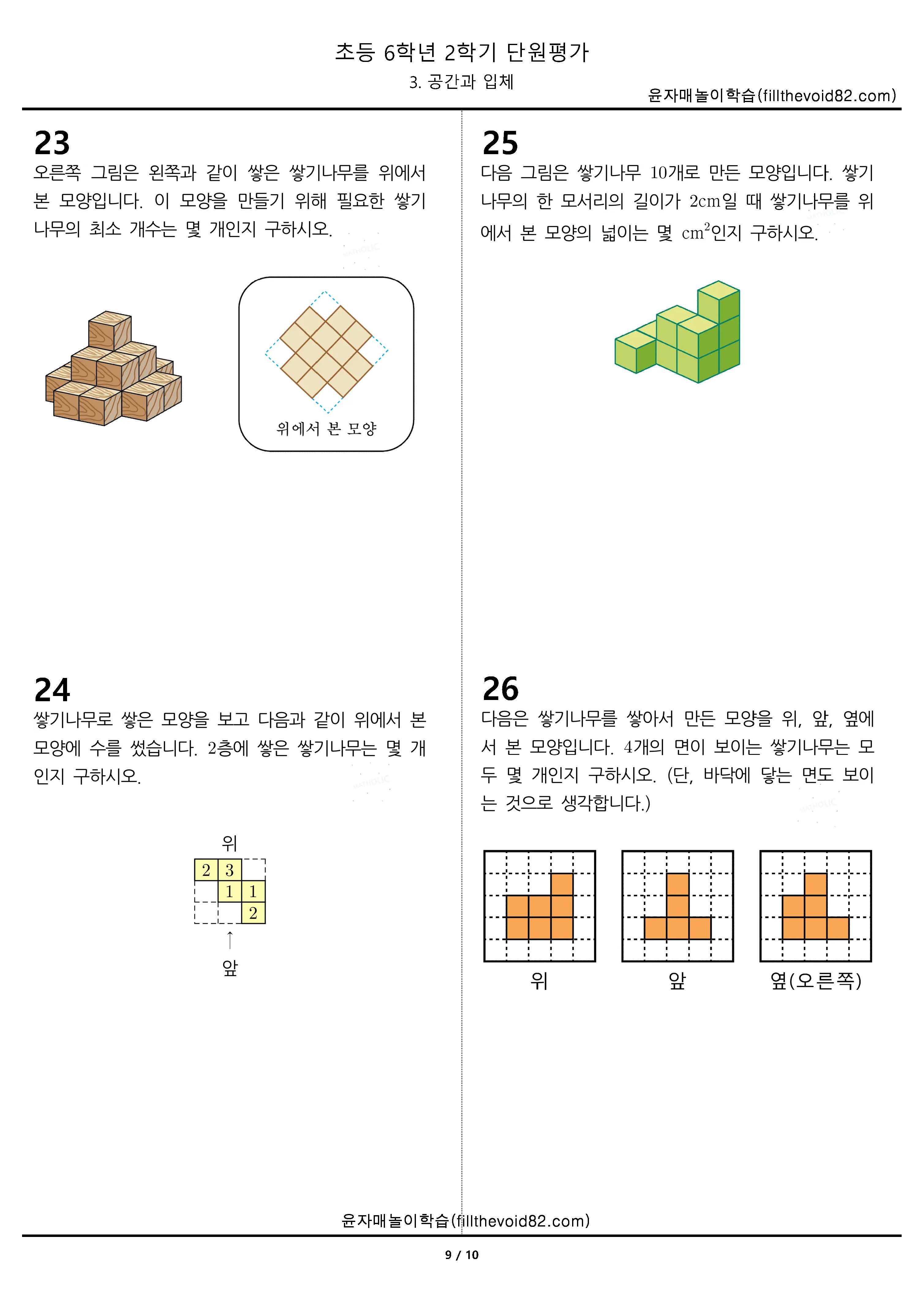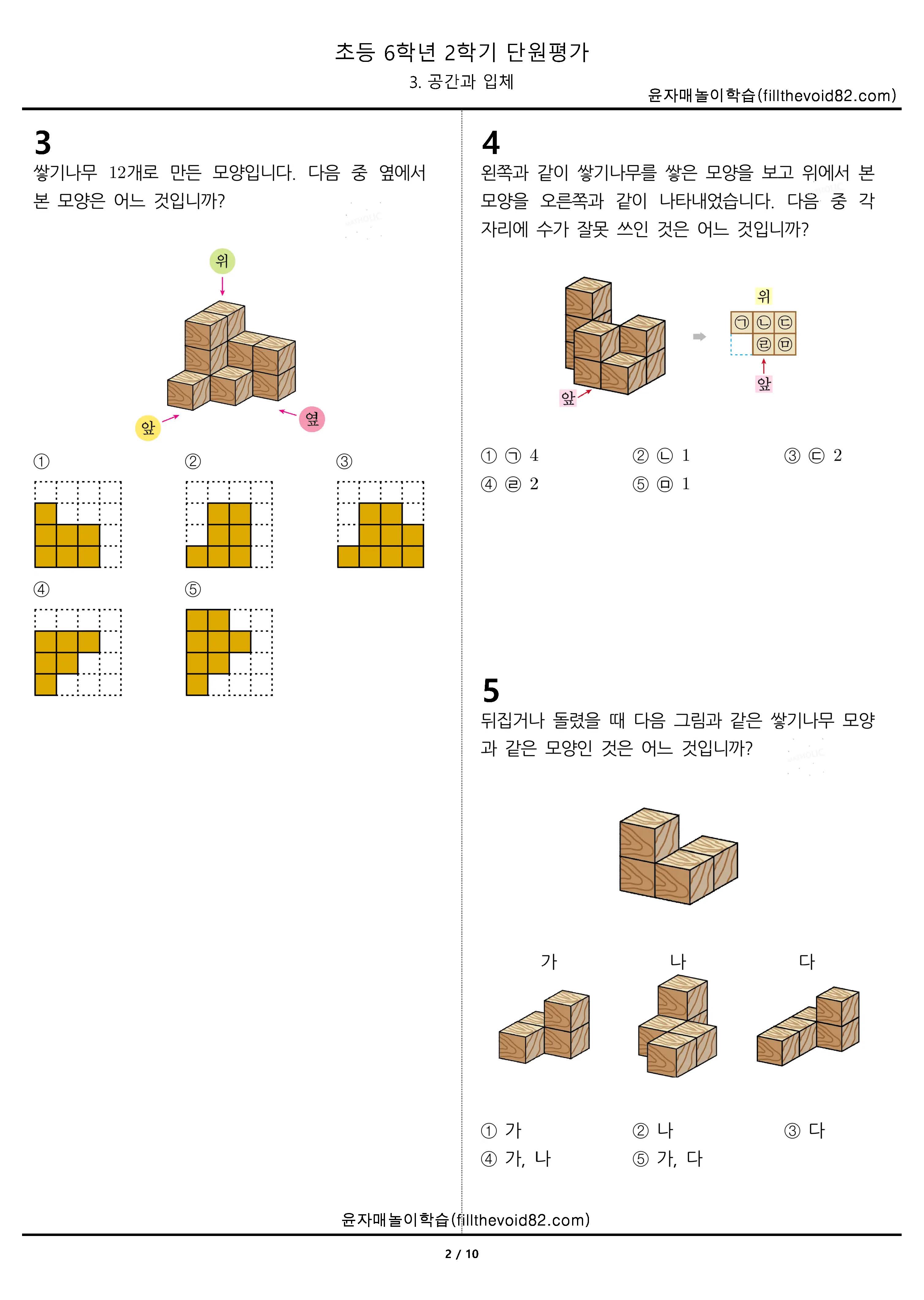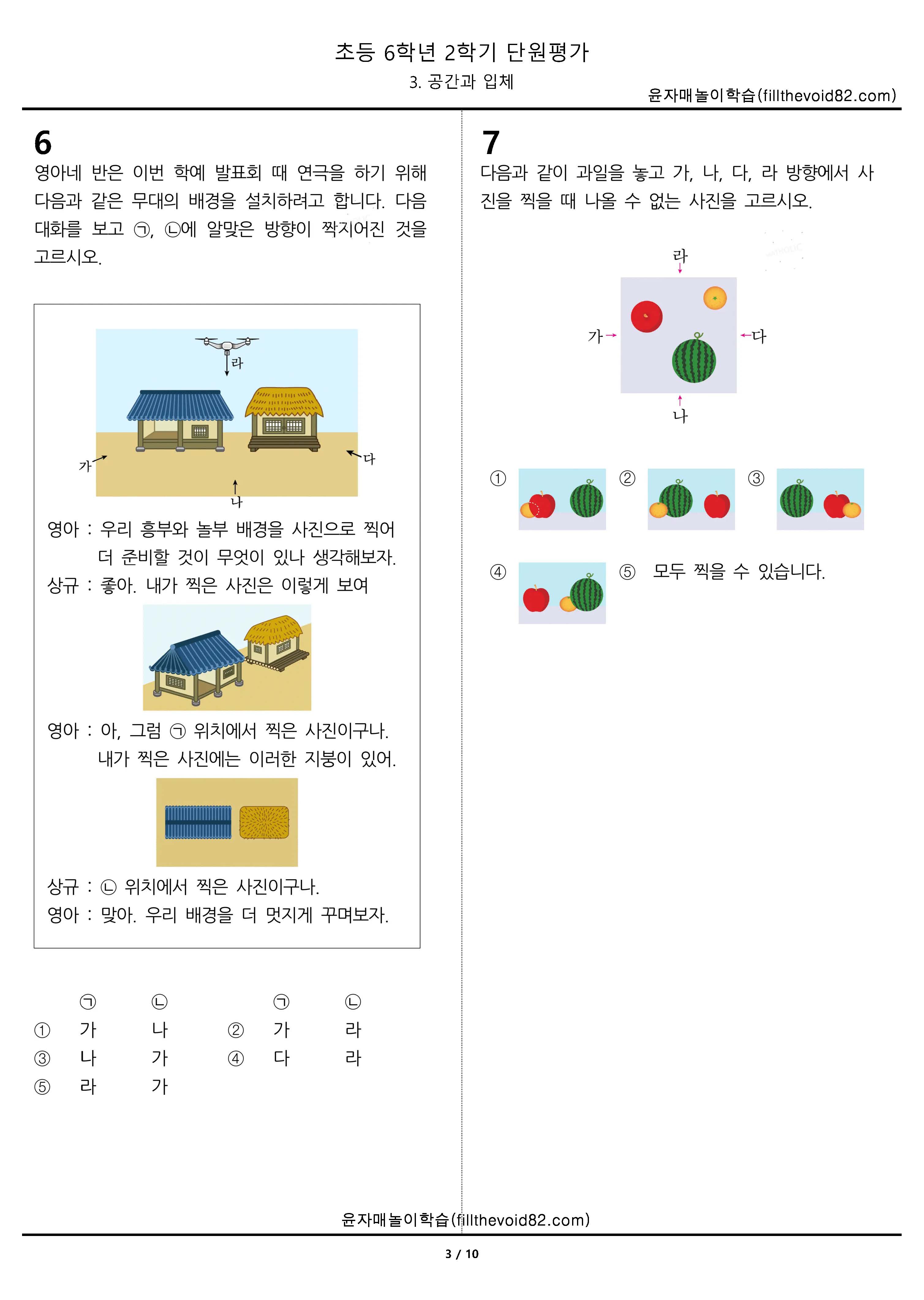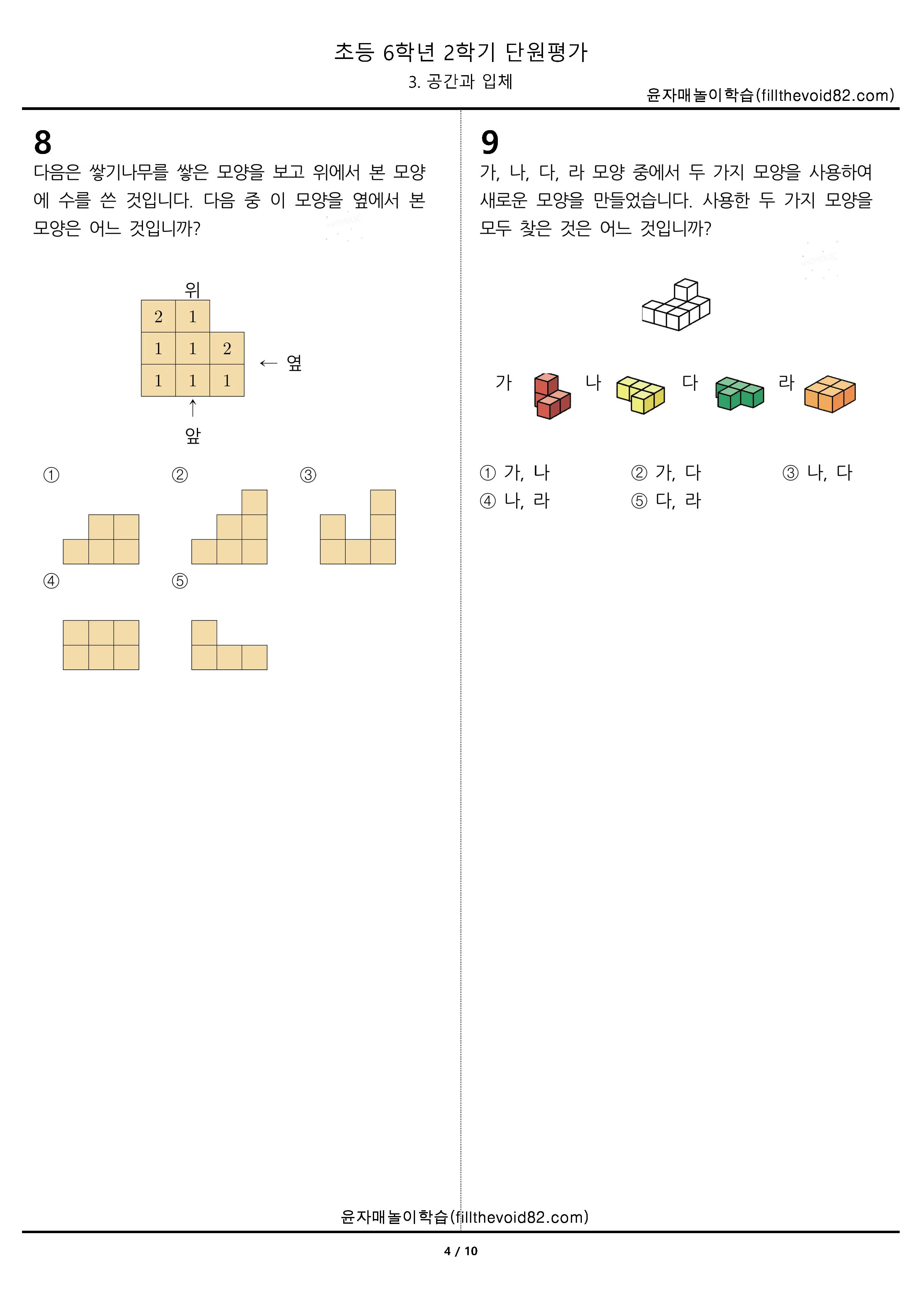 초등무료학습지) 초등단원평가) 초등 6학년 2학기 - 3. 공간과 입체
