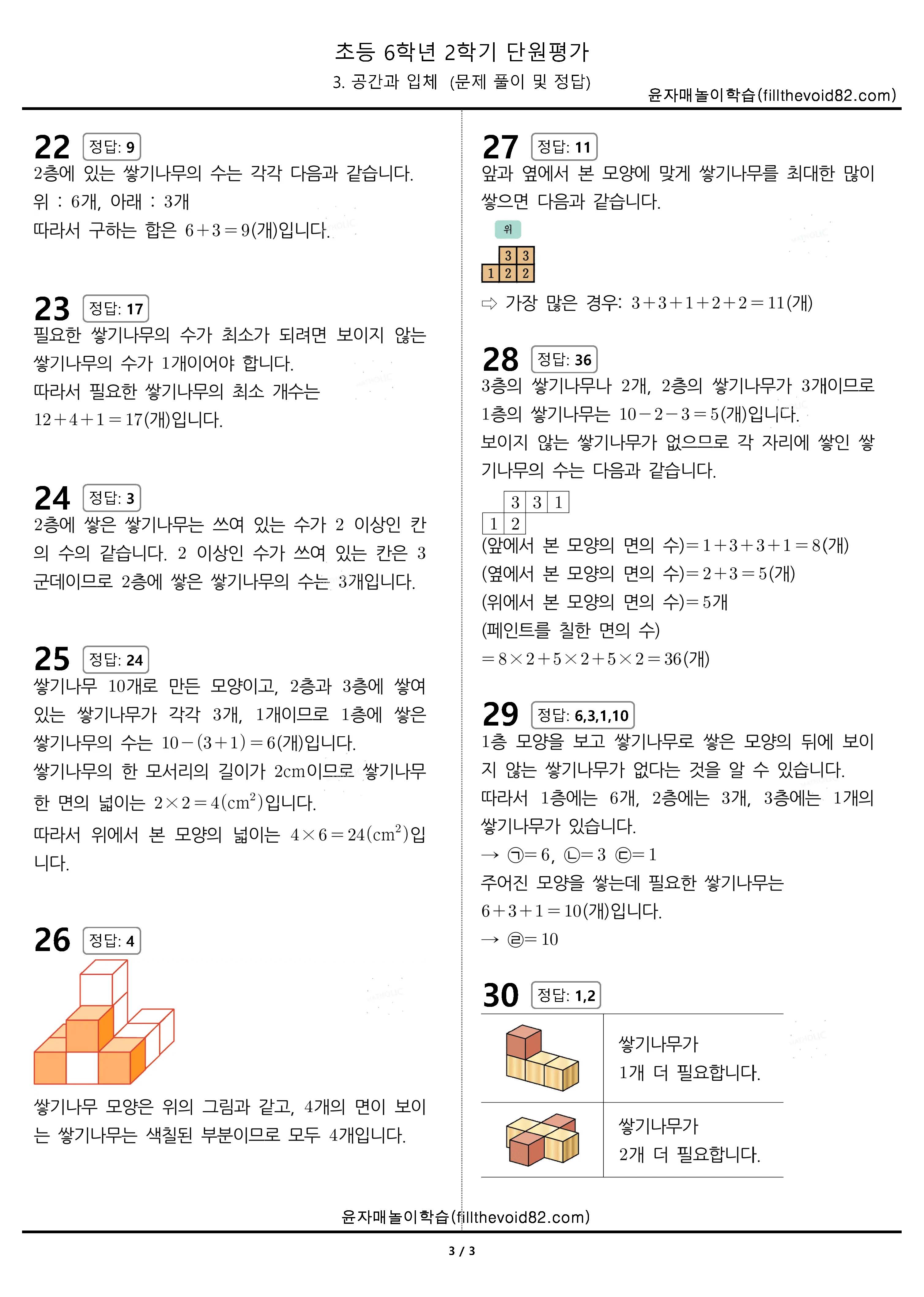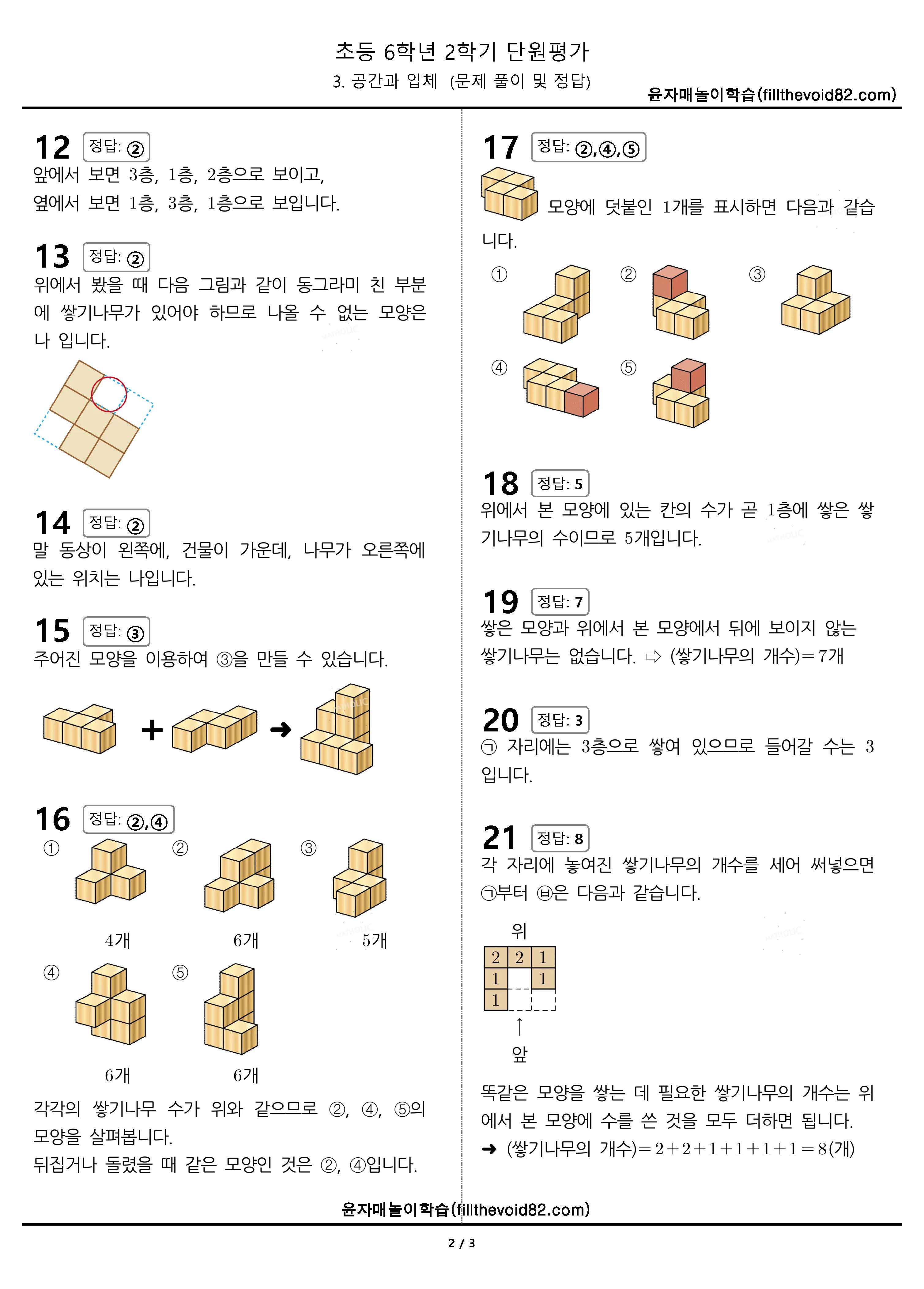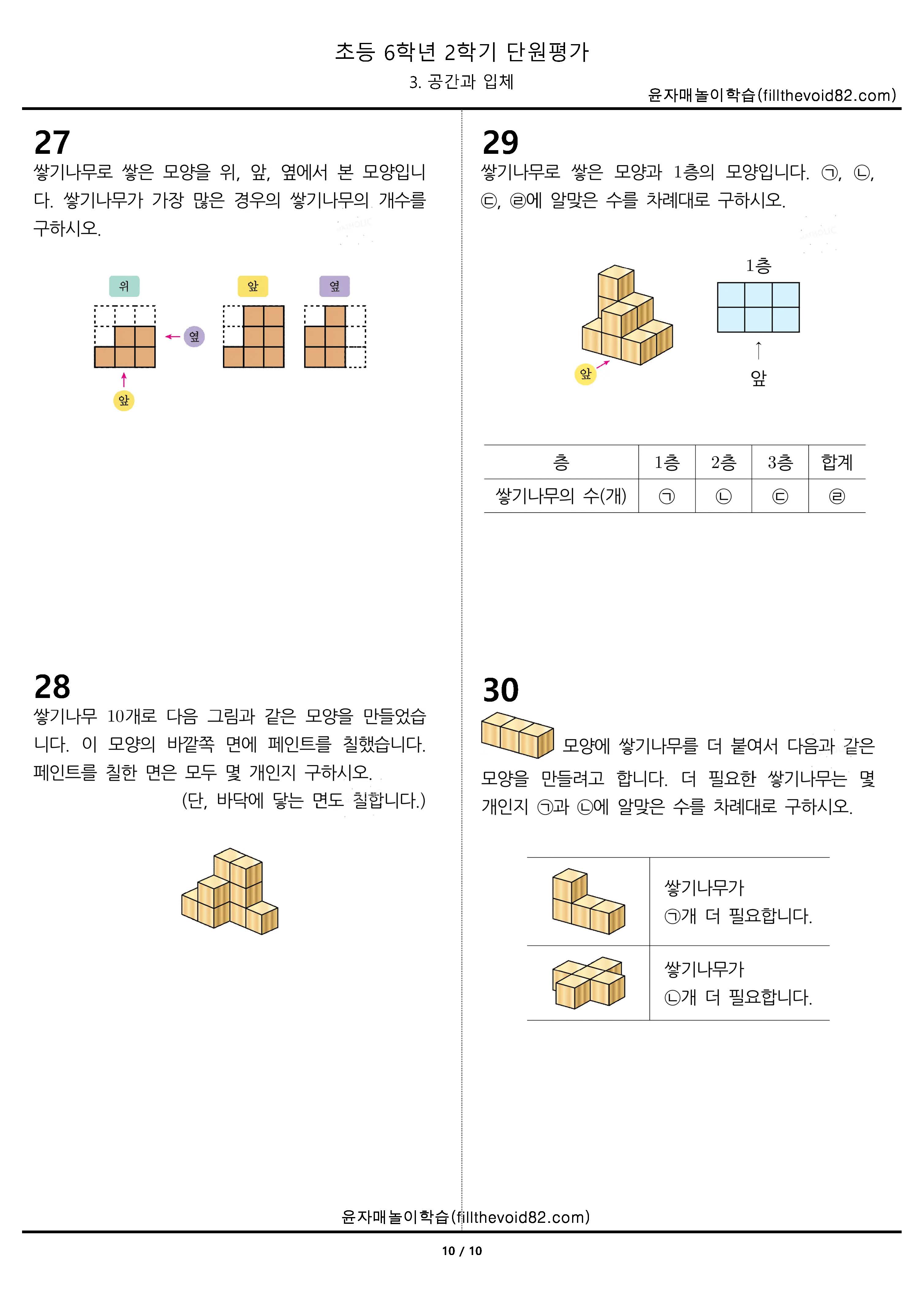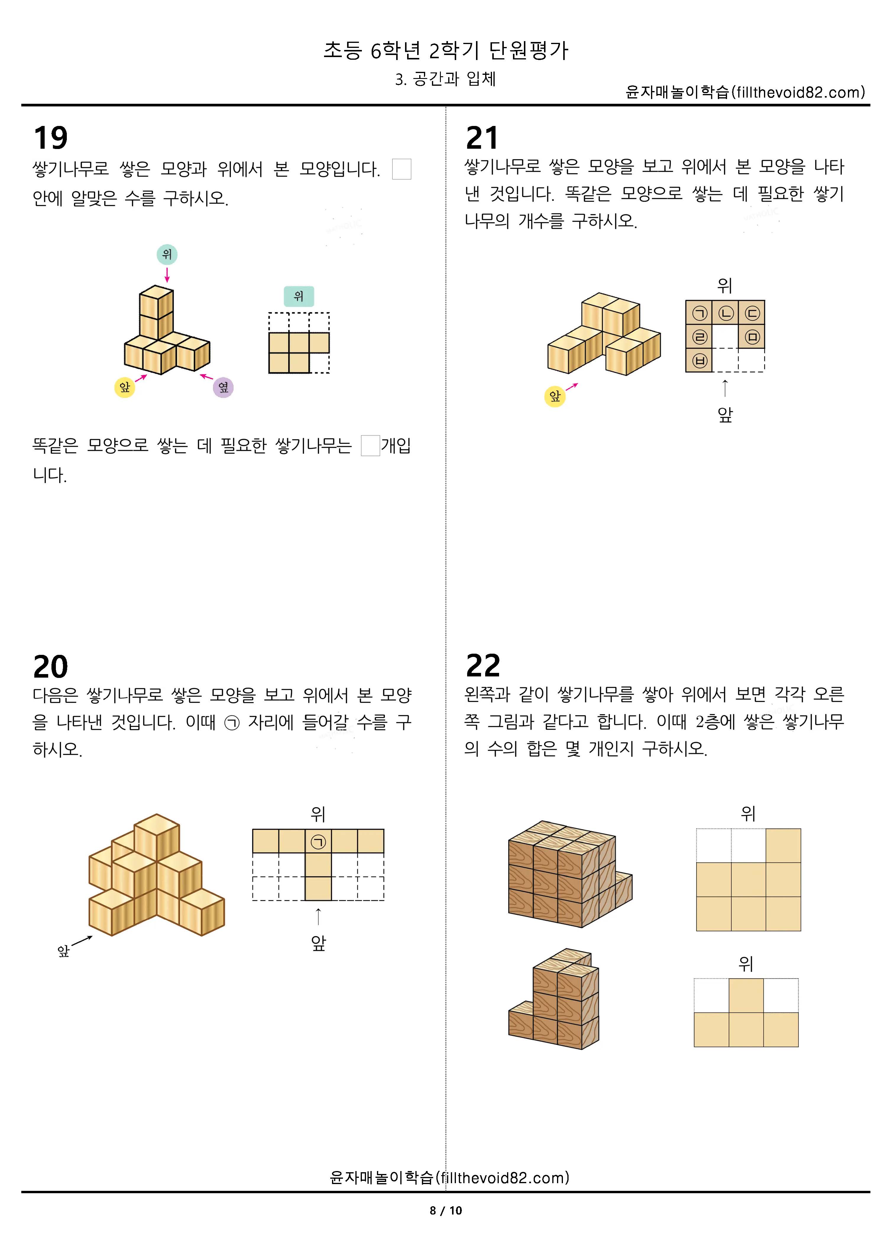 초등무료학습지) 초등단원평가) 초등 6학년 2학기 - 3. 공간과 입체