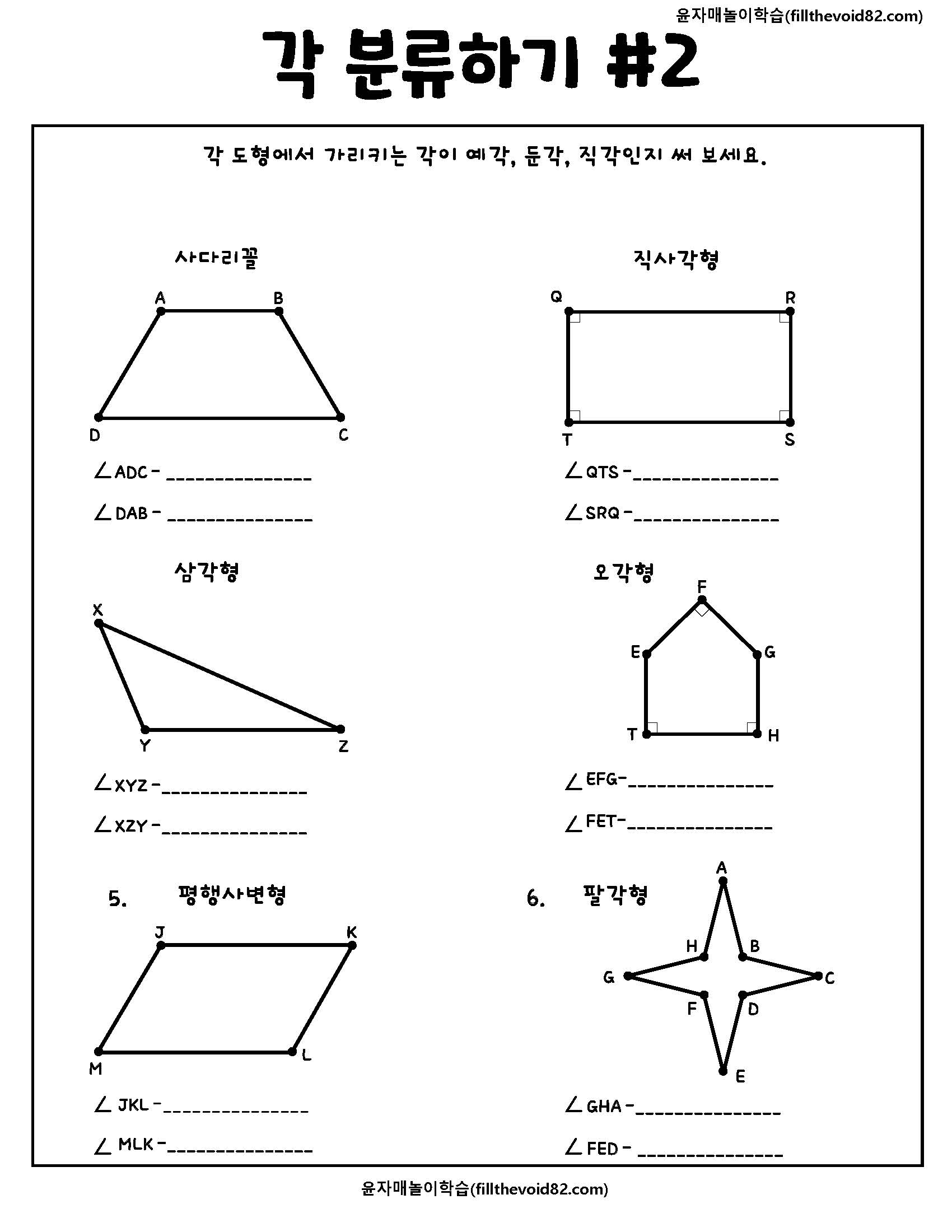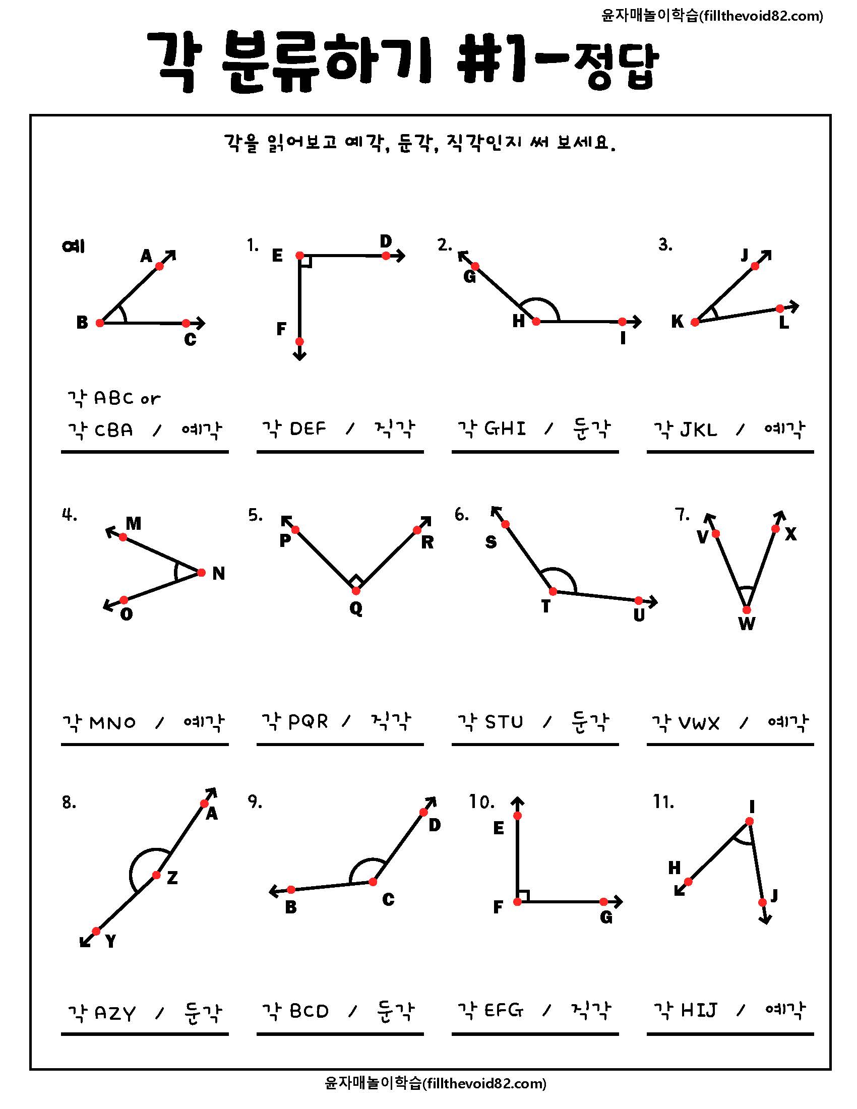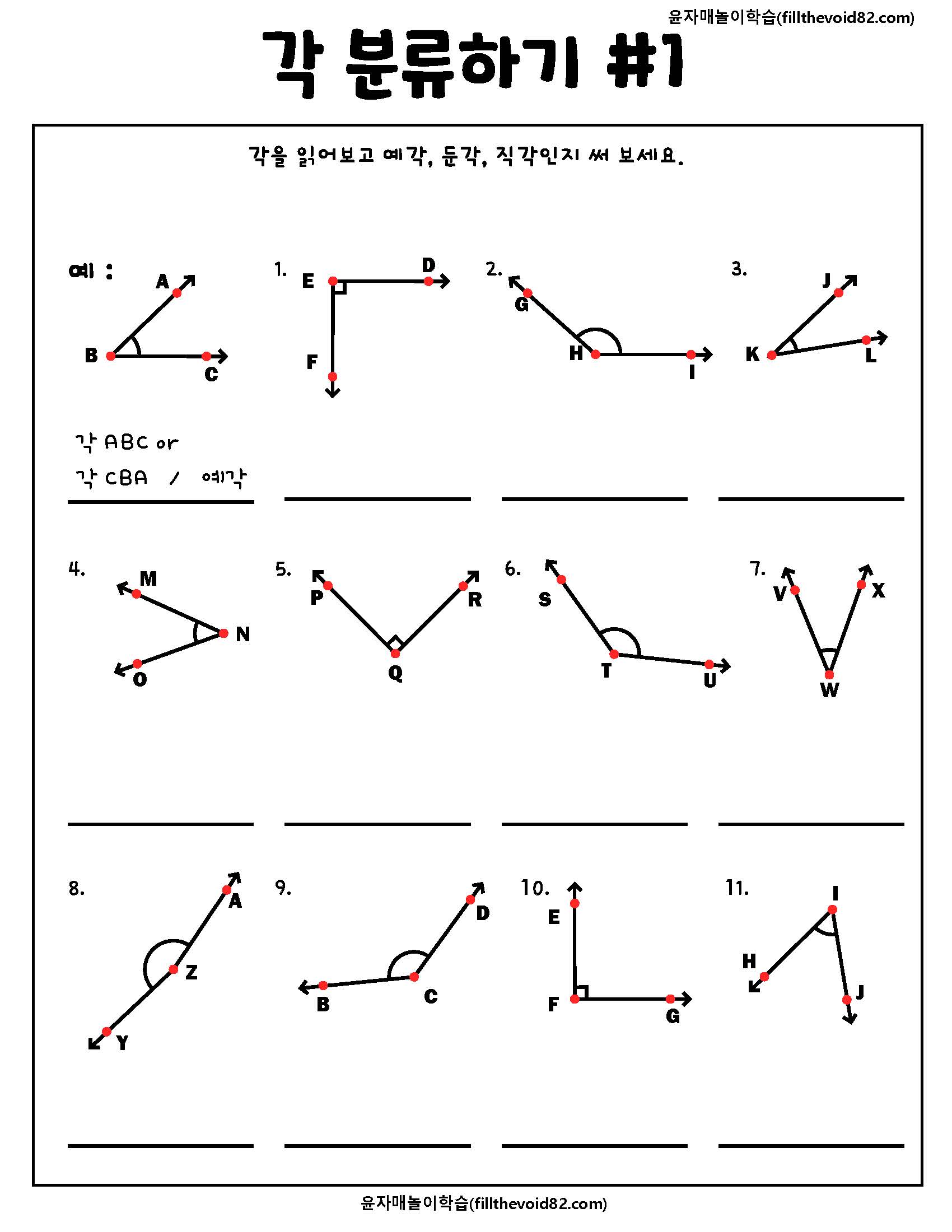 각을 읽어보고, 각의 종류를 익힐 수 있는 활동지입니다.