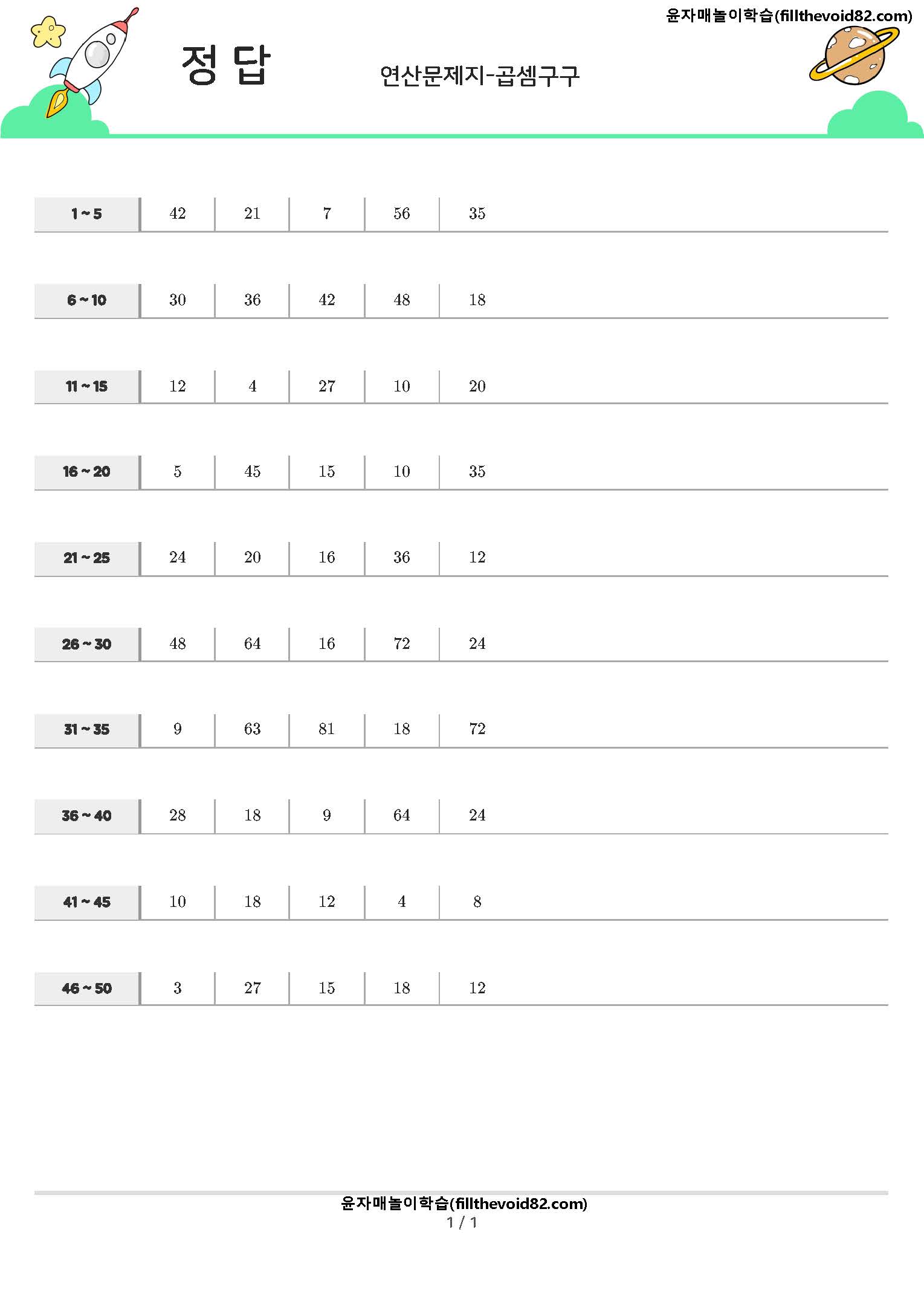 2단~9단까지의 연산을 가로셈으로 학습해볼 수 있는 문제지입니다.