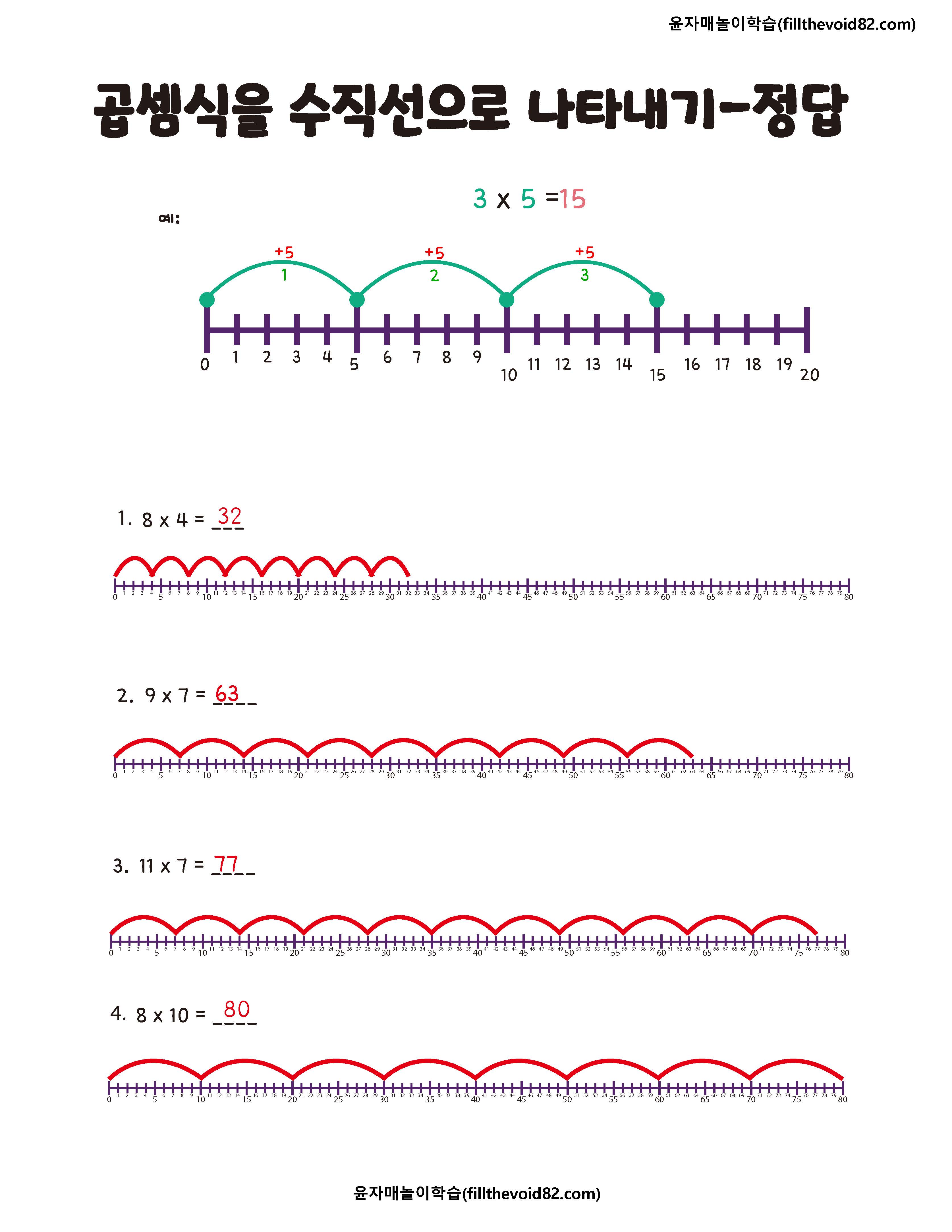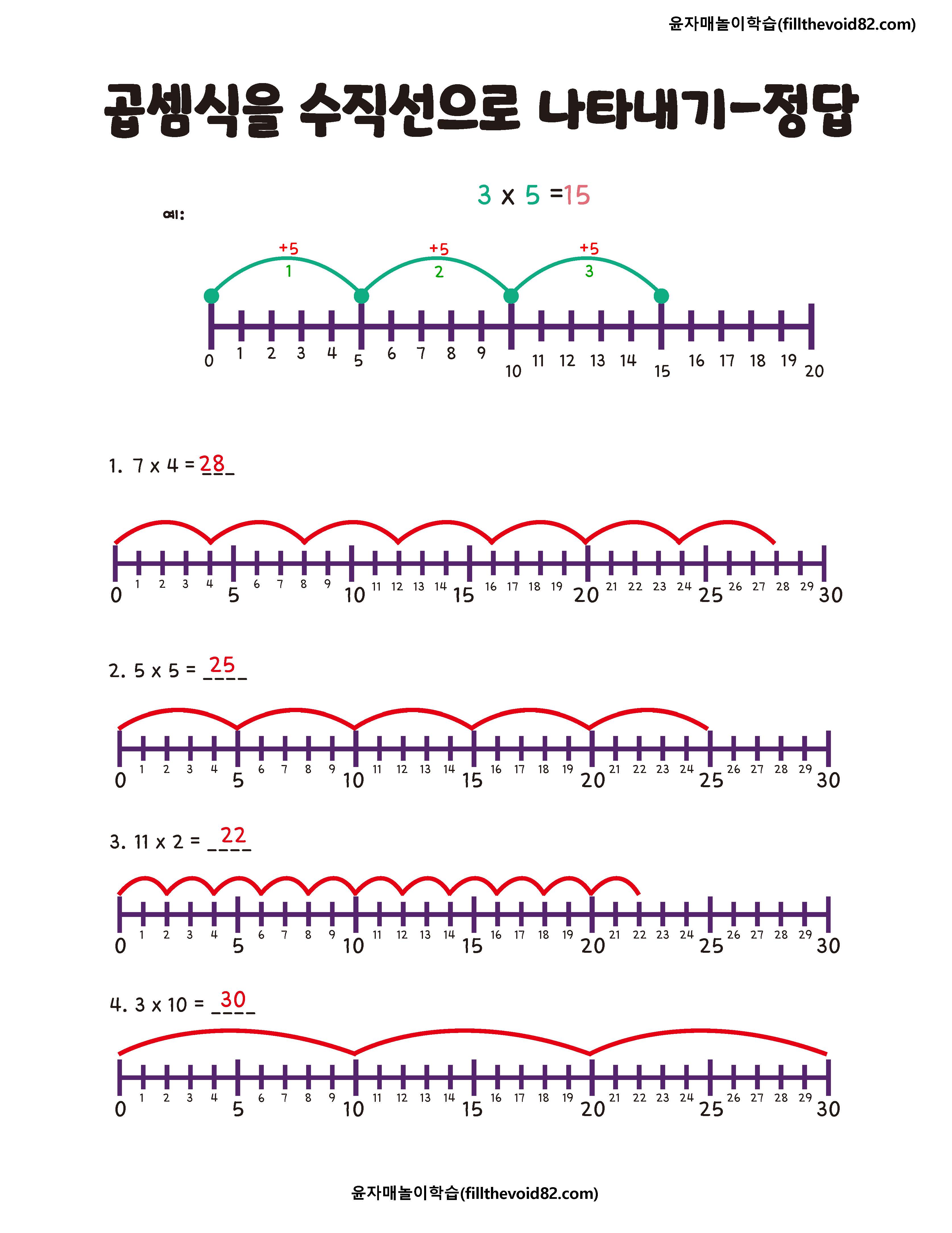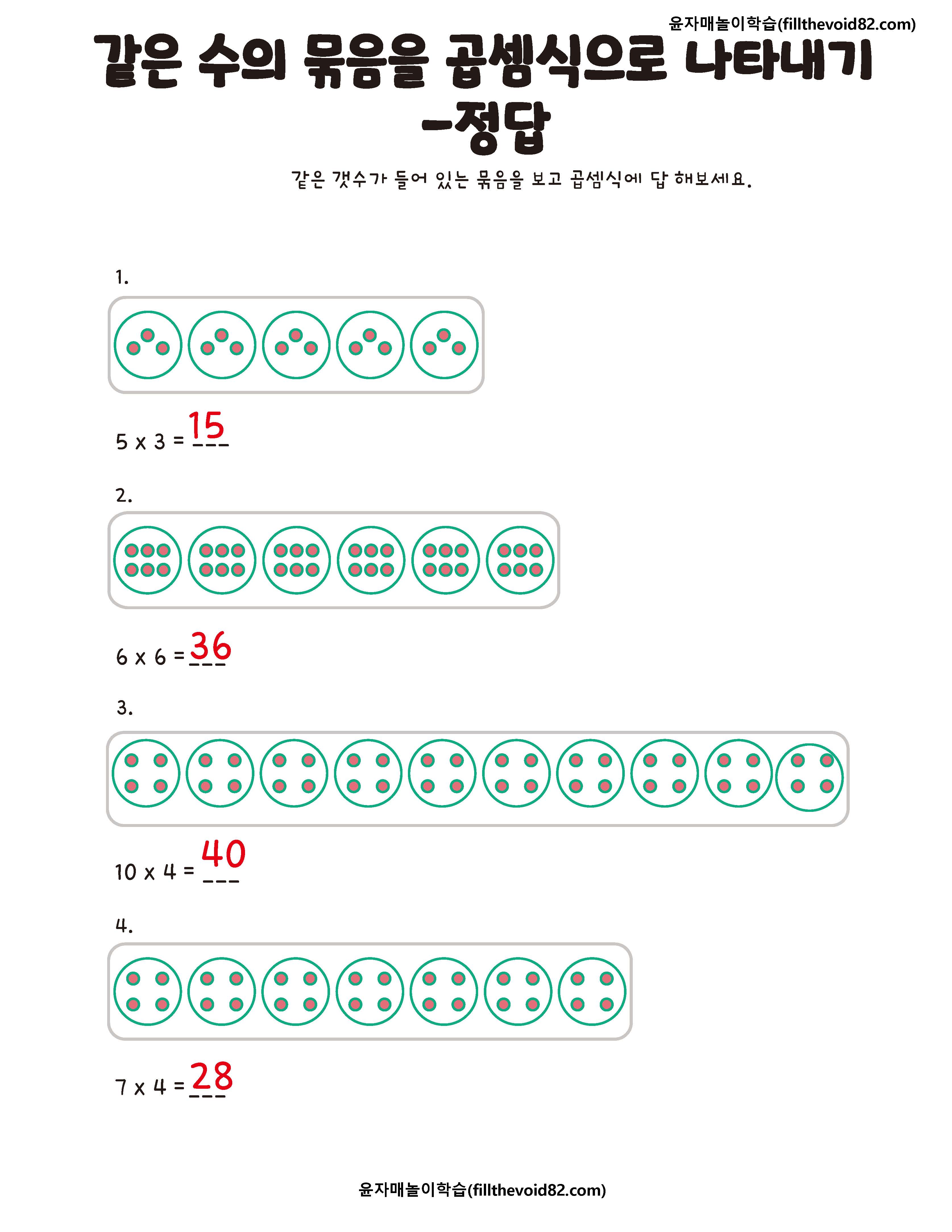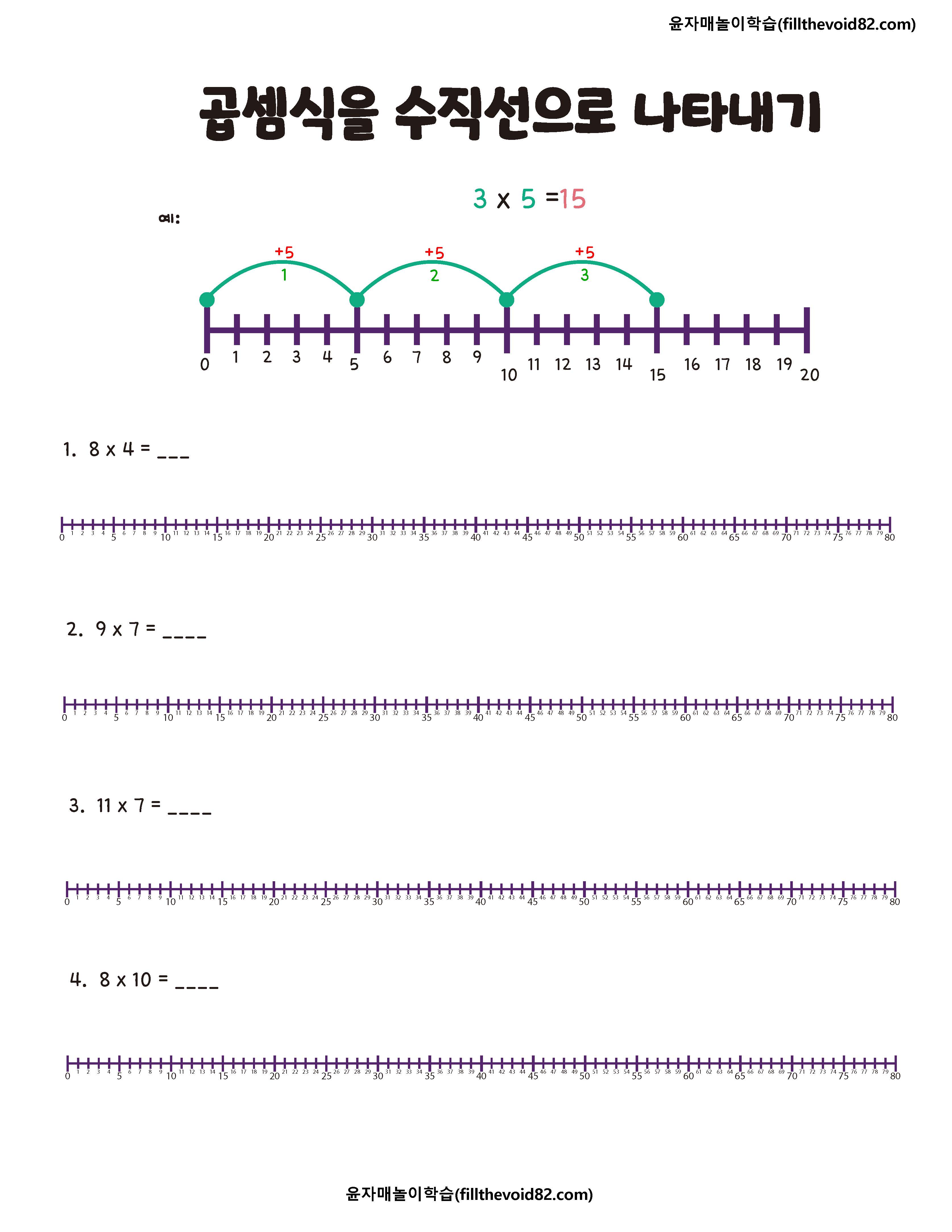 같은 수로 뛰어세며 곱셈의 기초를 학습할 수 있는 활동지입니다.