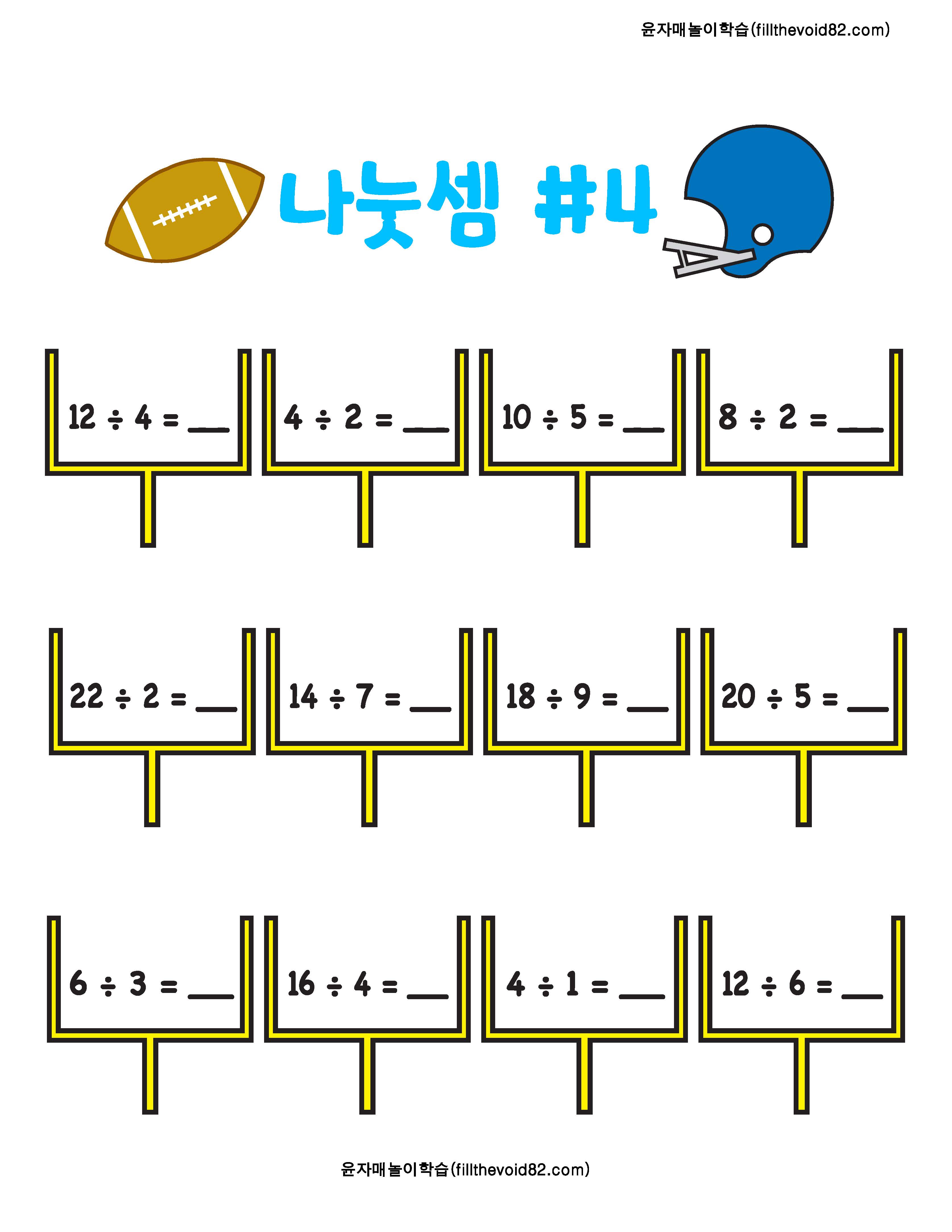 간단한 한자리 수÷한자리 수, 두자리 수÷한자리 수를 학습할 수 있는 활동지입니다.
