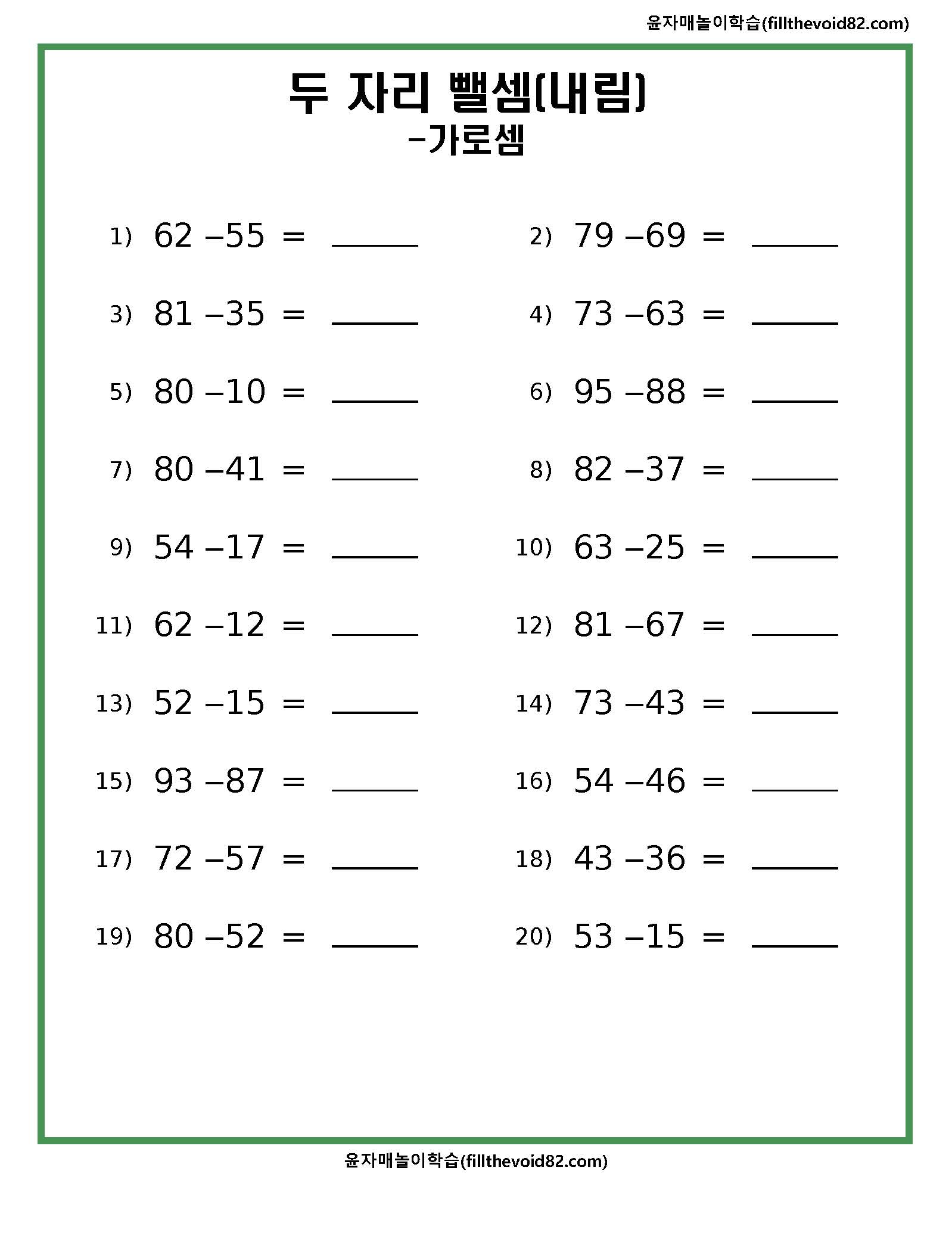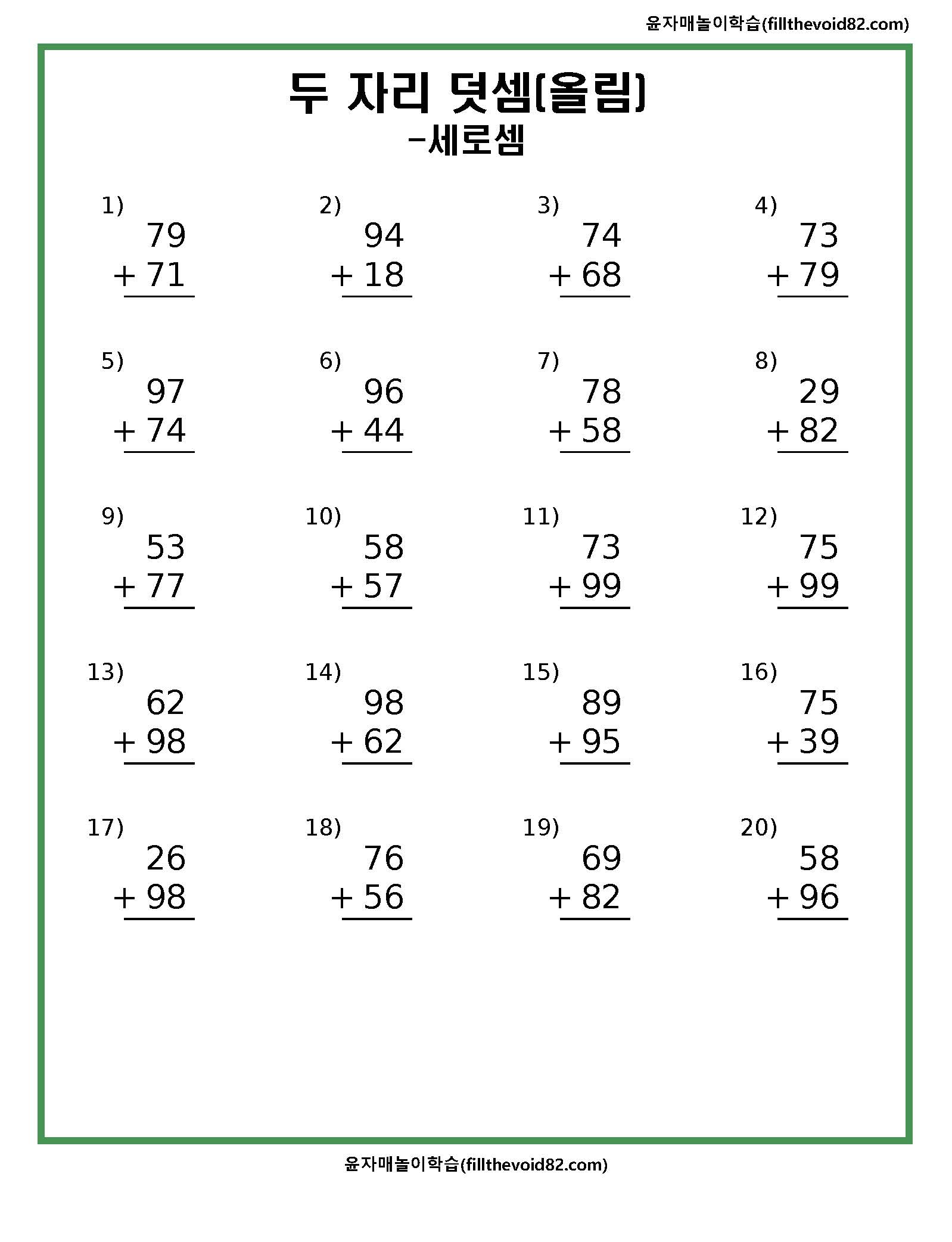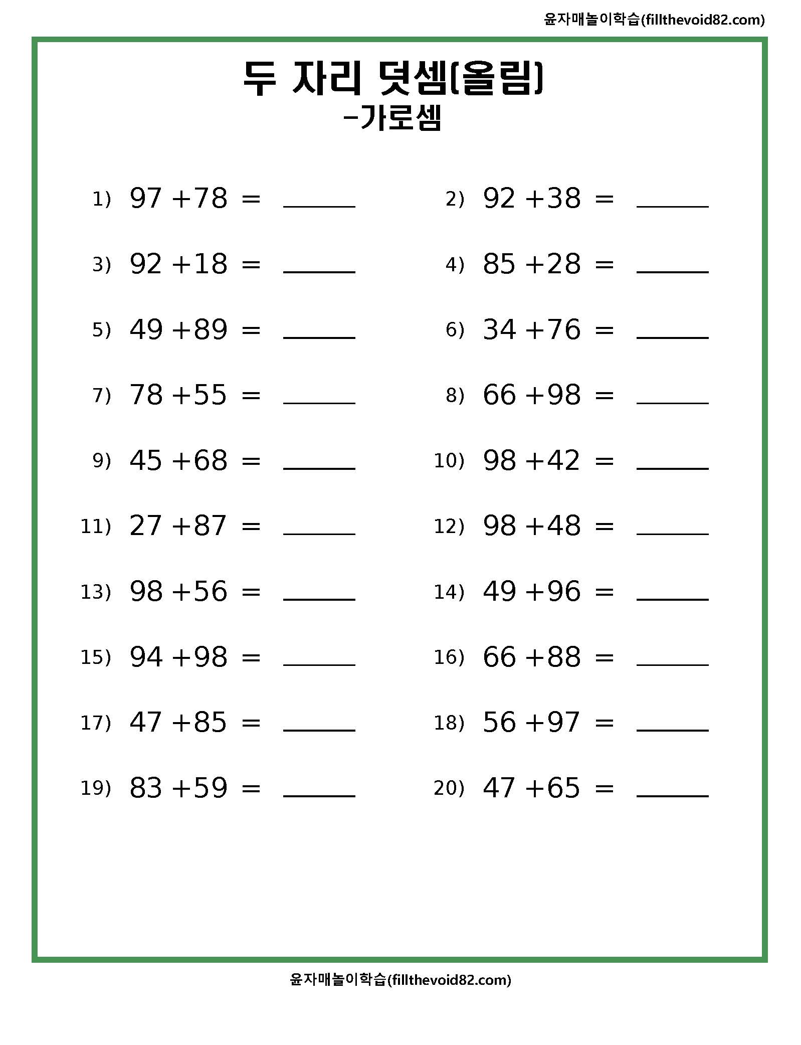 초등수학) 두 자리 덧셈(올림), 뺄셈(내림)