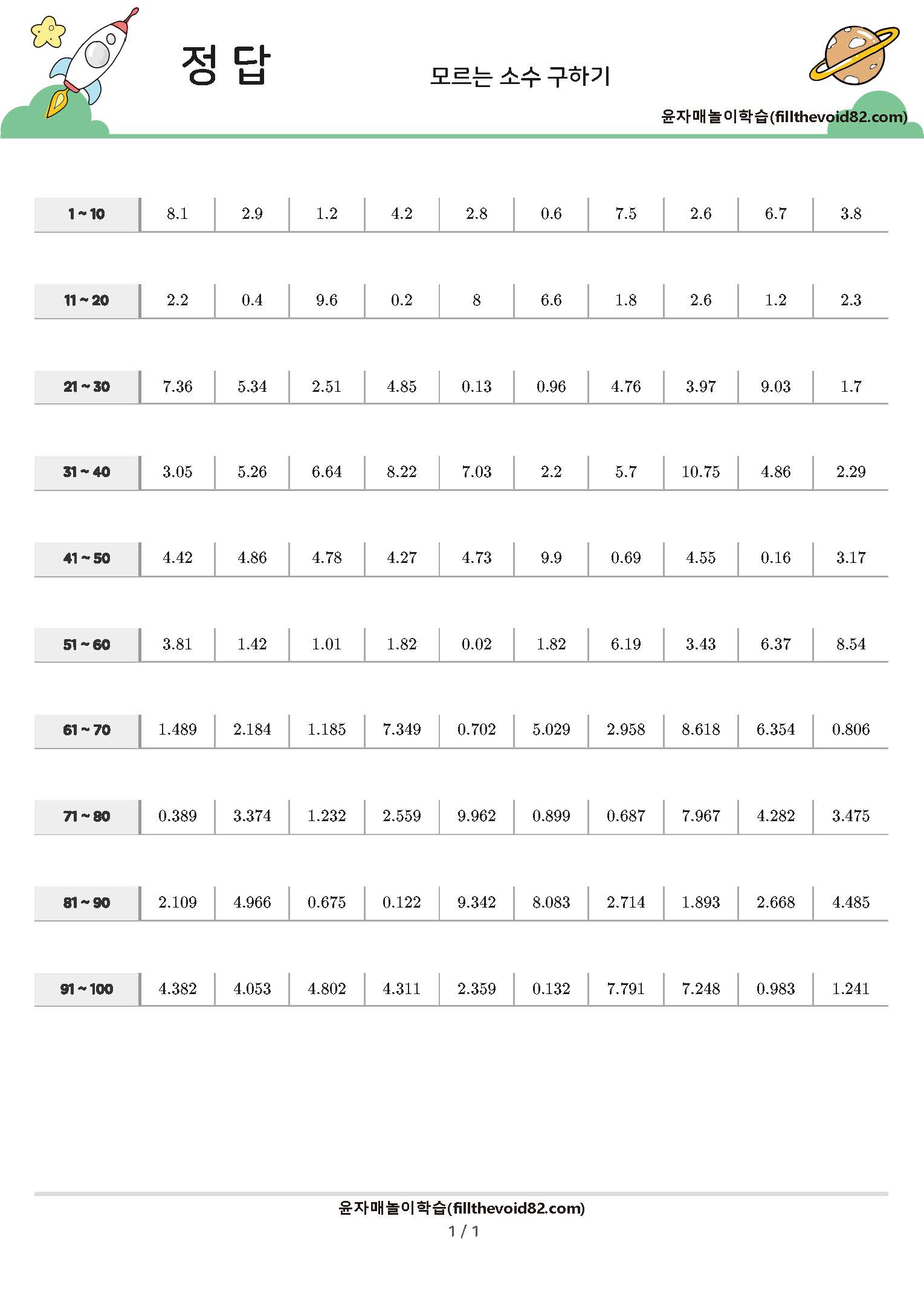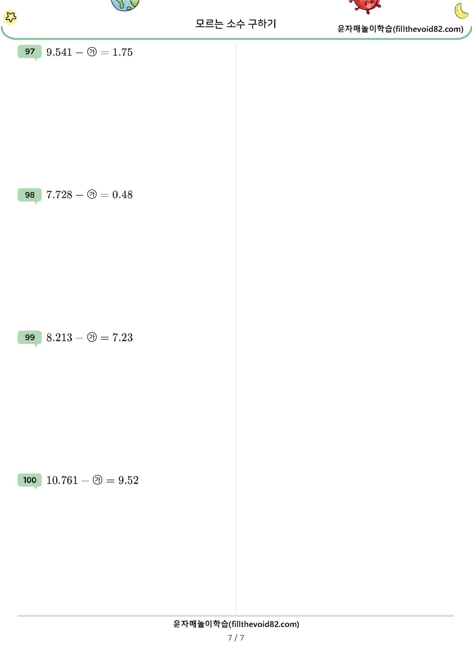 | 초등수학) 소수의 뺄셈 연산문제지 (0) | 2023.04.20 |