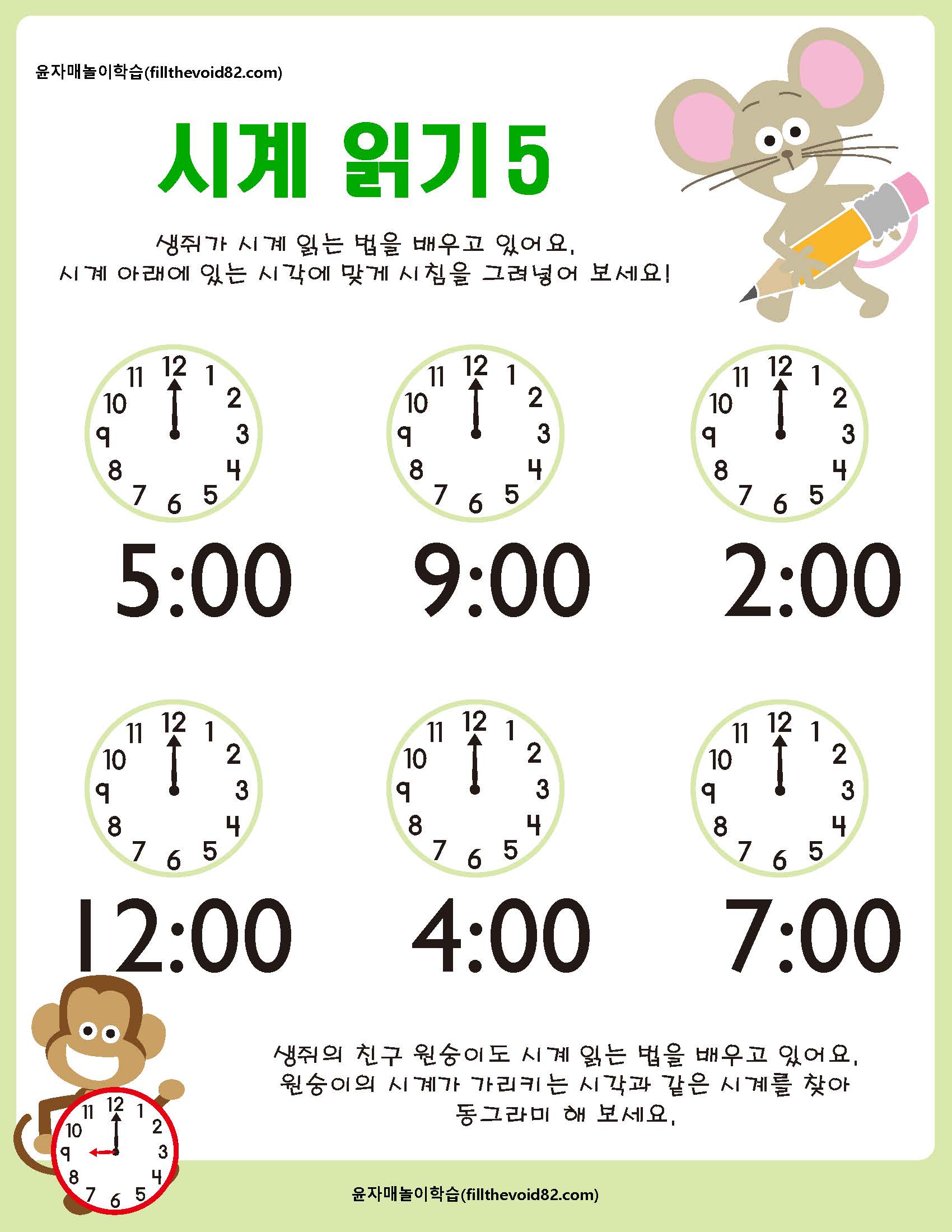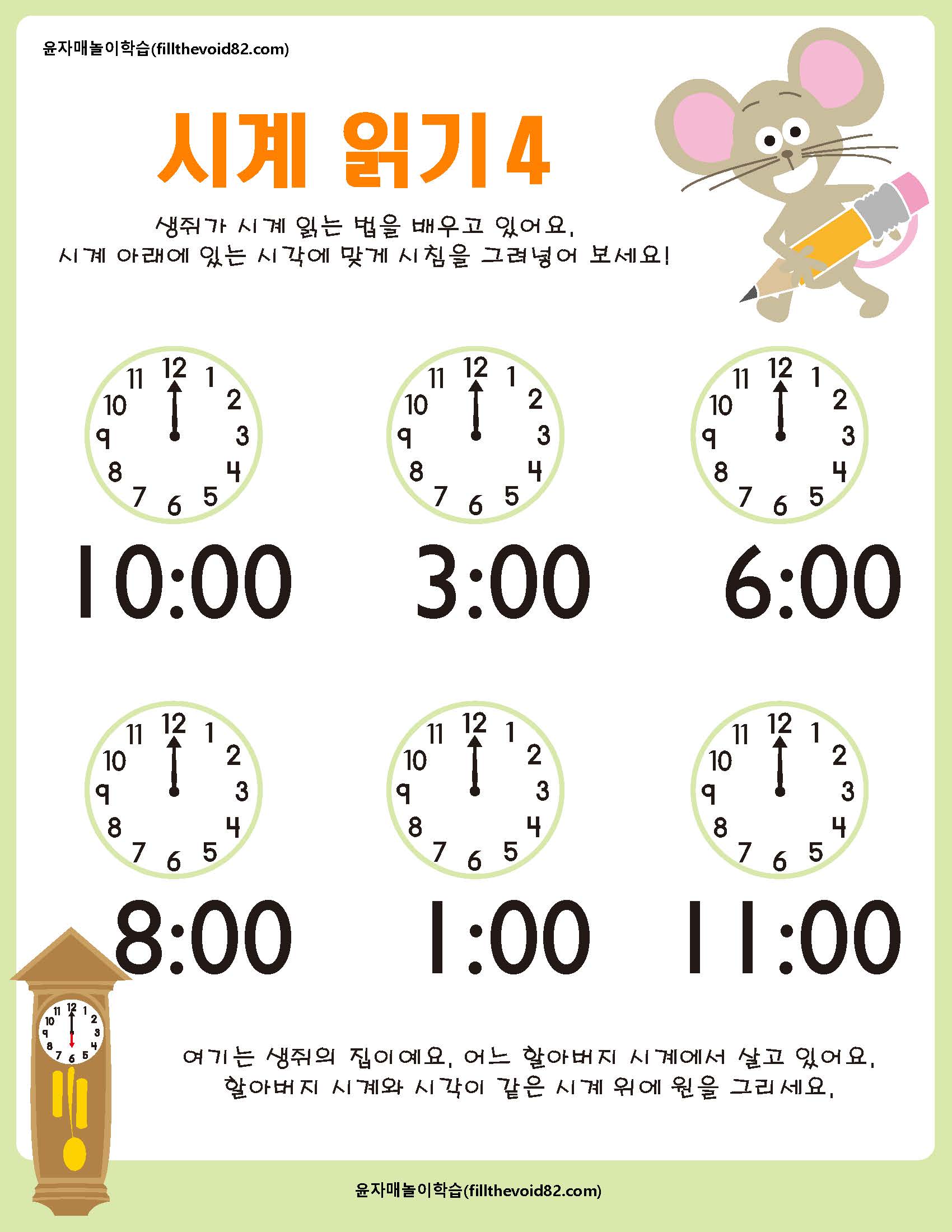 초등수학) 시계보기-정각