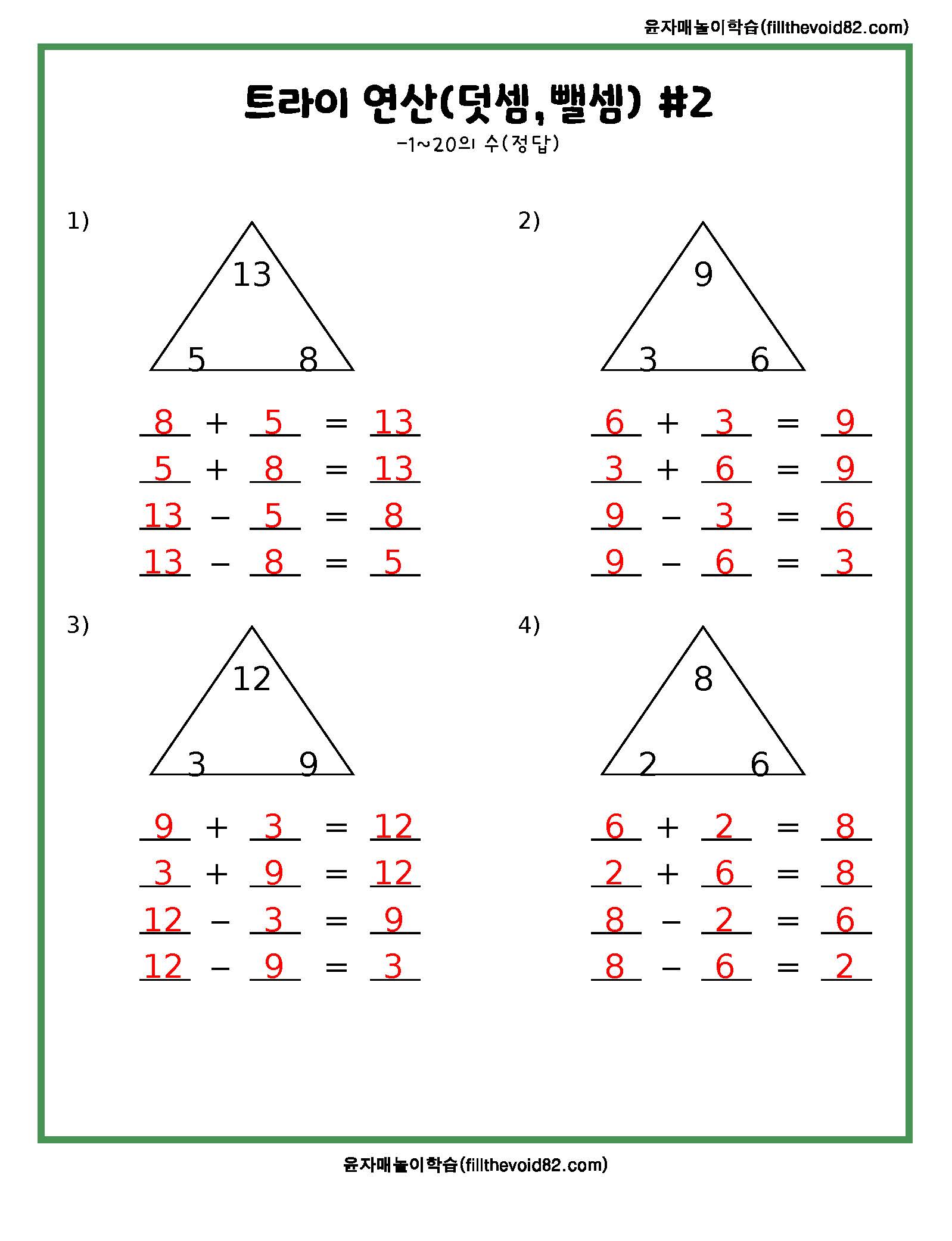 | 초등수학) 트라이 연산-덧셈, 뺄셈(1~5의 수) (0) | 2023.04.07 |
