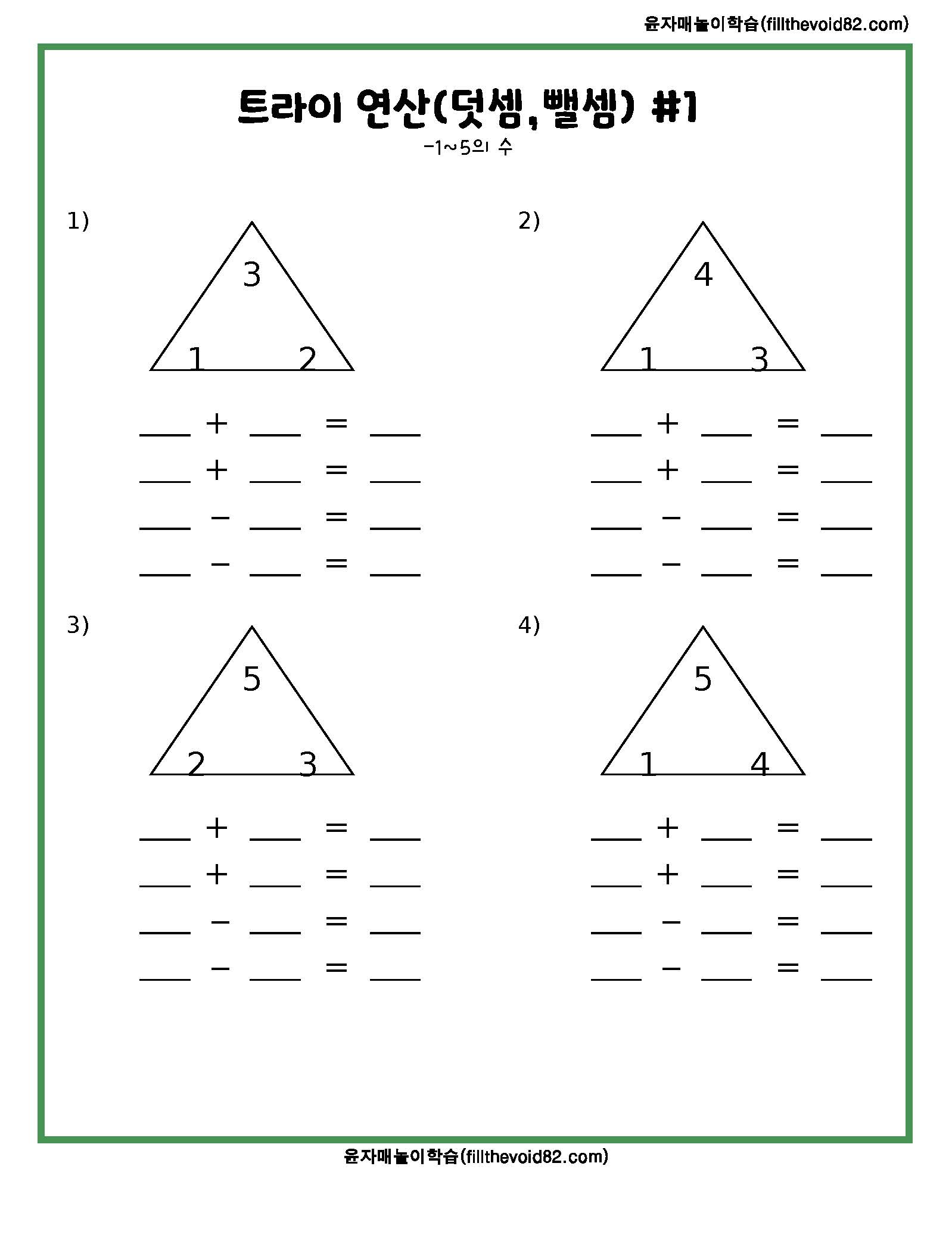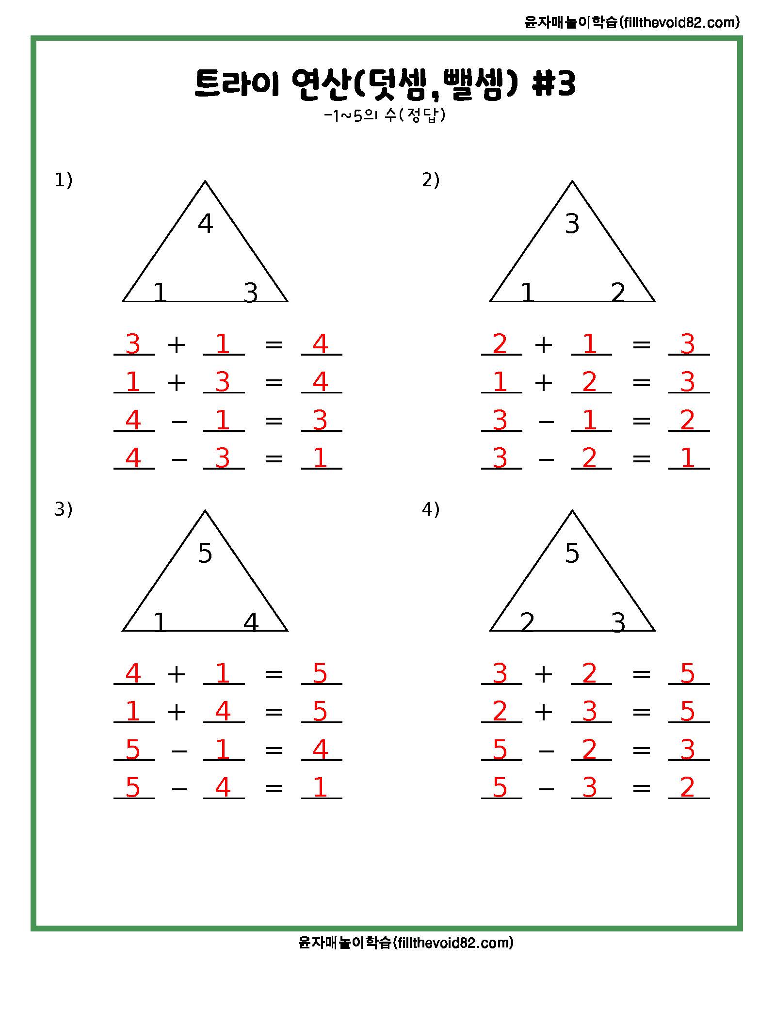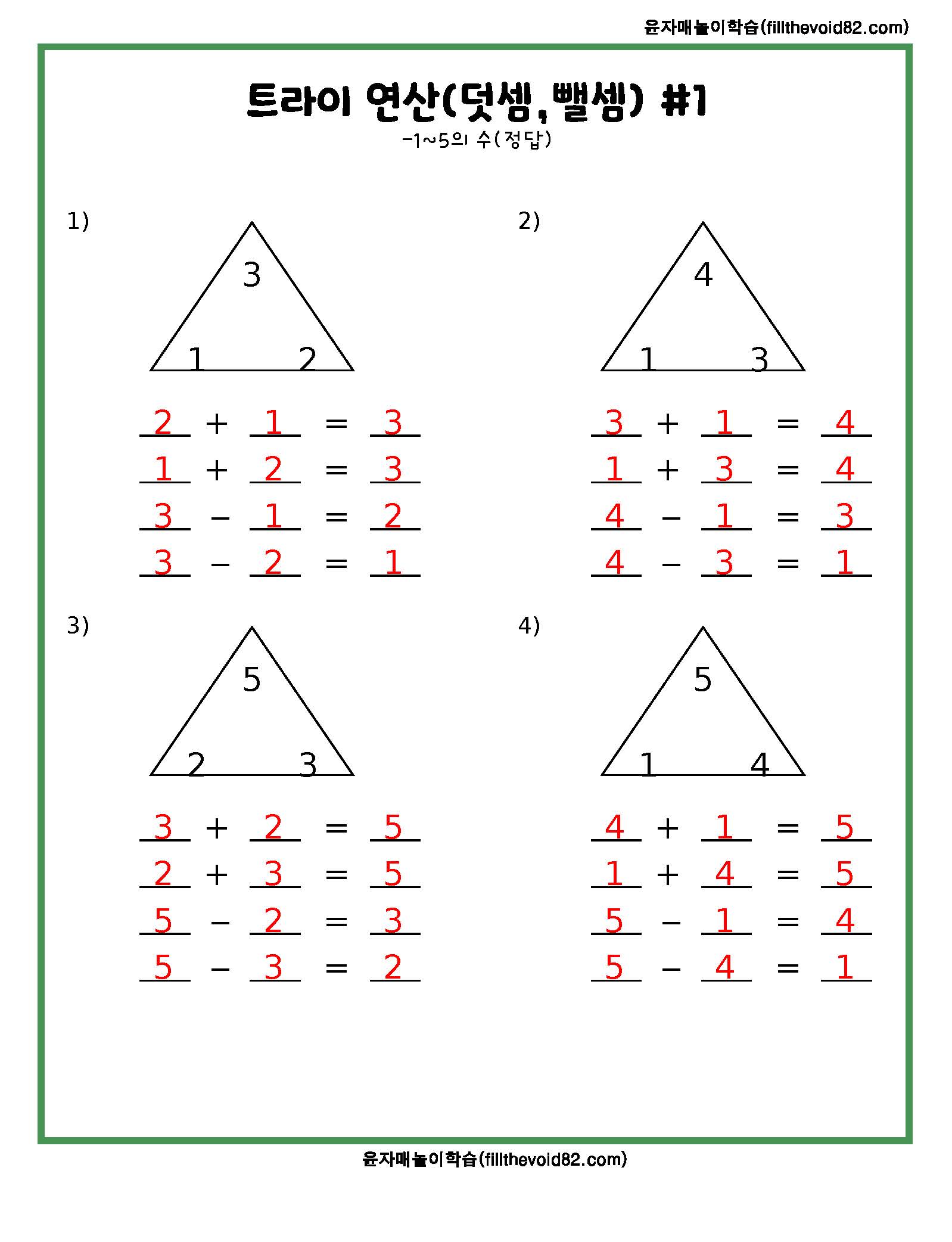 초등수학) 트라이 연산-덧셈, 뺄셈(1~5의 수)