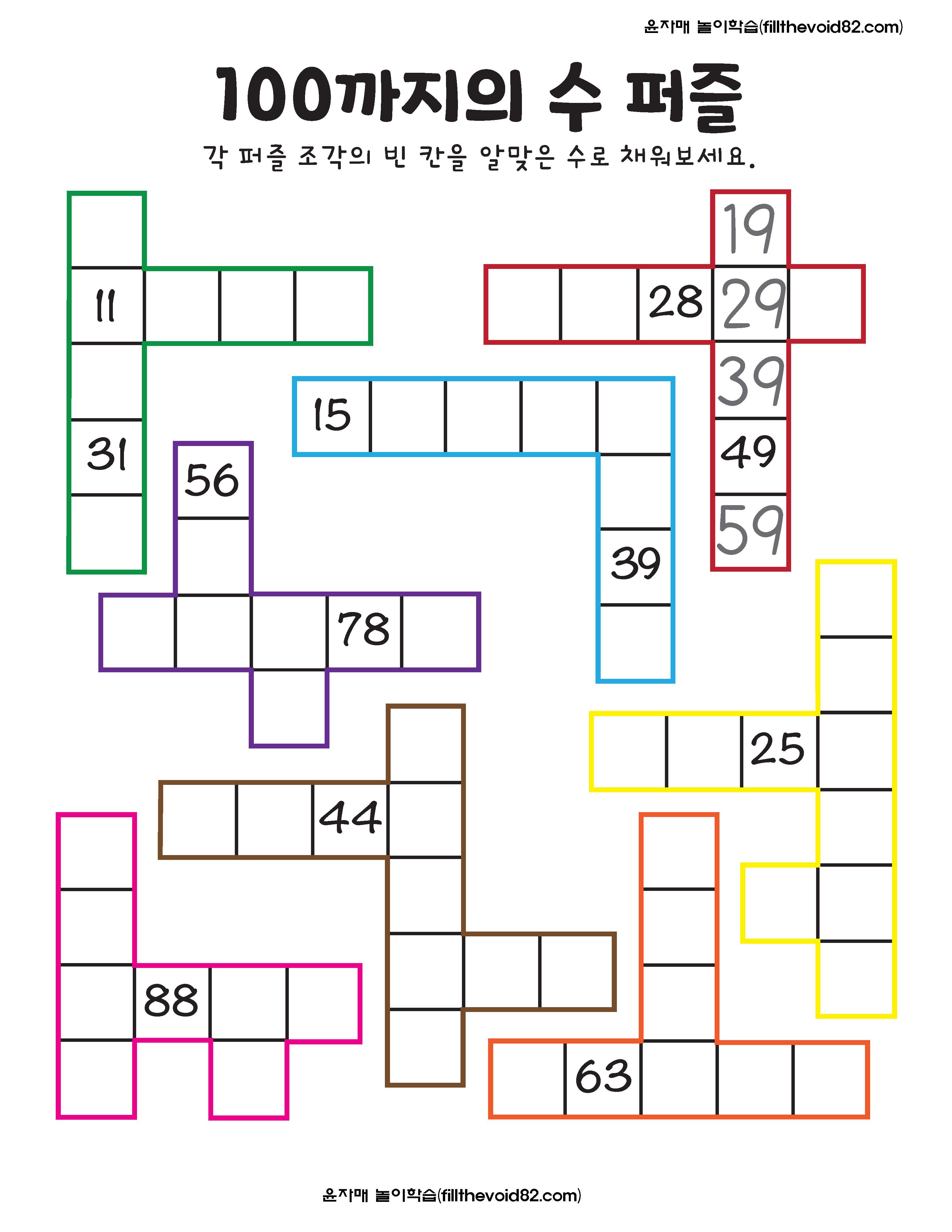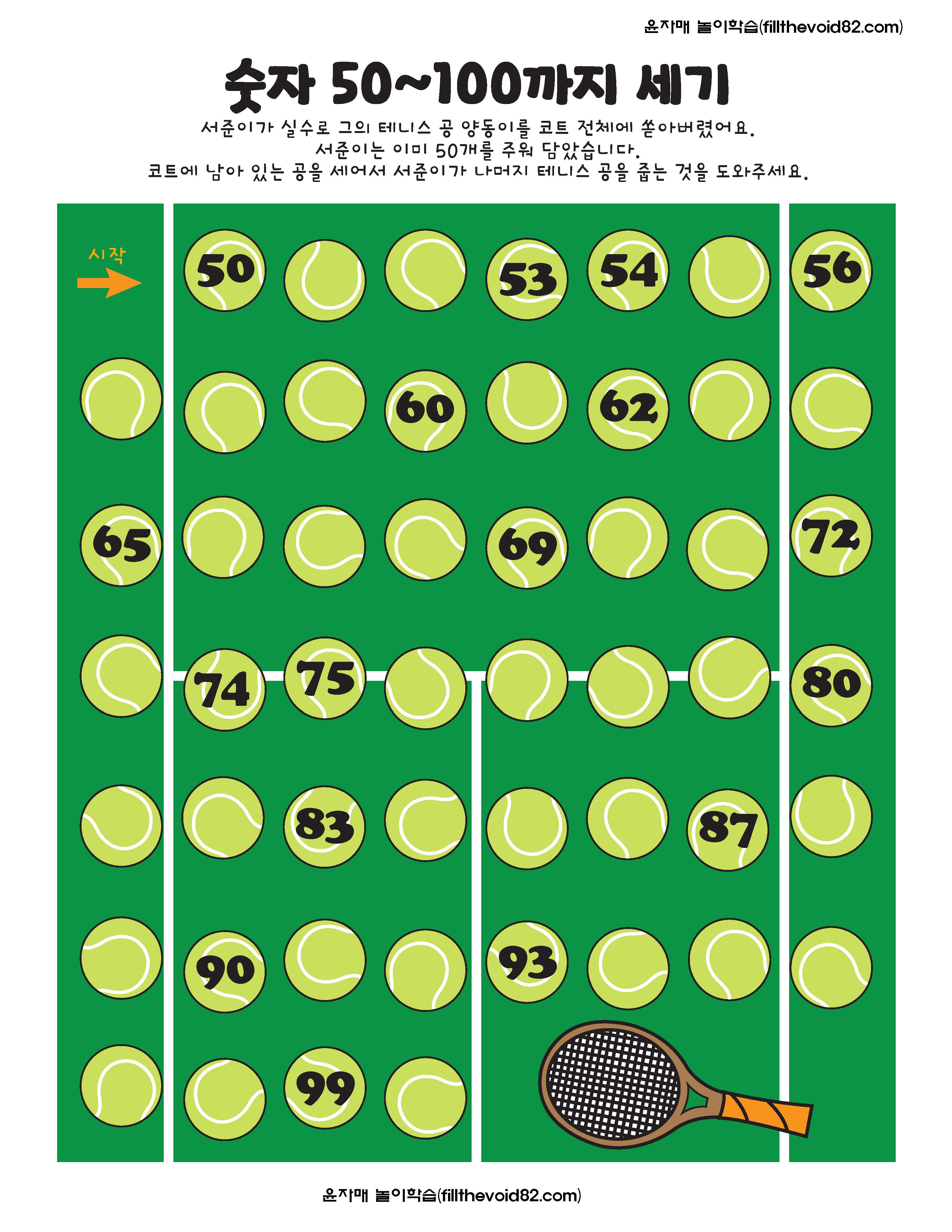 100까지의 수를 익힐 수 있는 여러가지 활동지입니다.