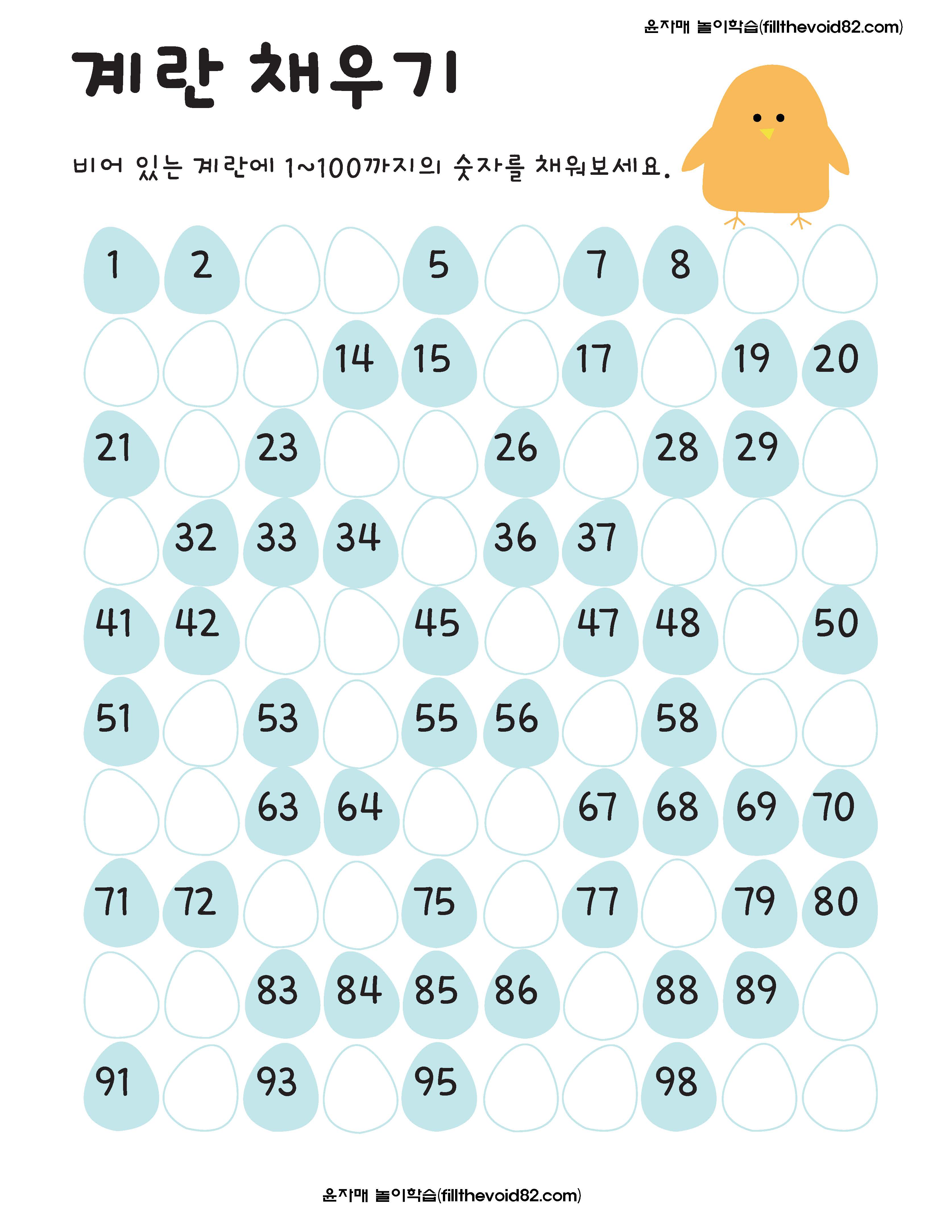 초등수학) 100까지의 수 (수배열판)(2)