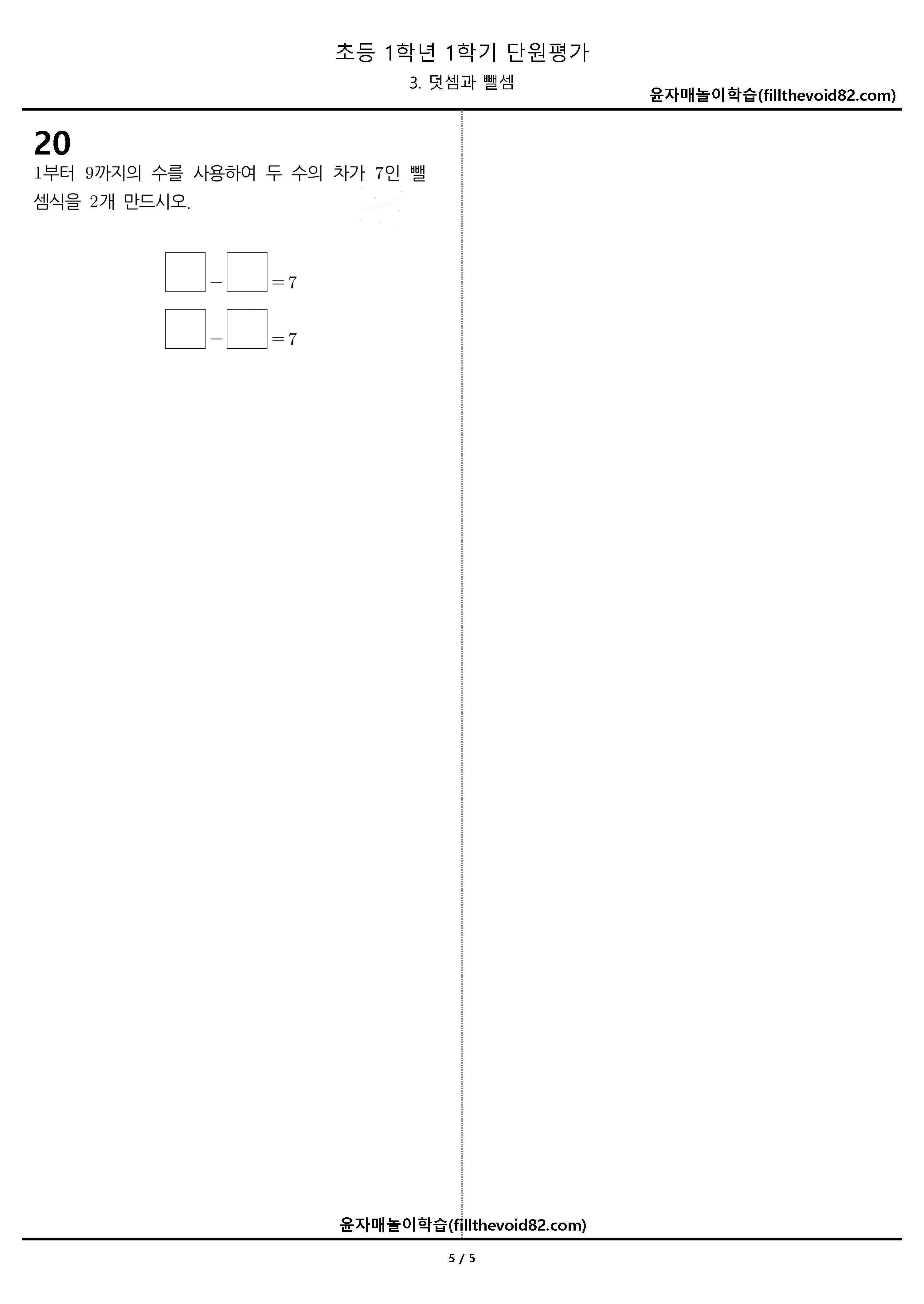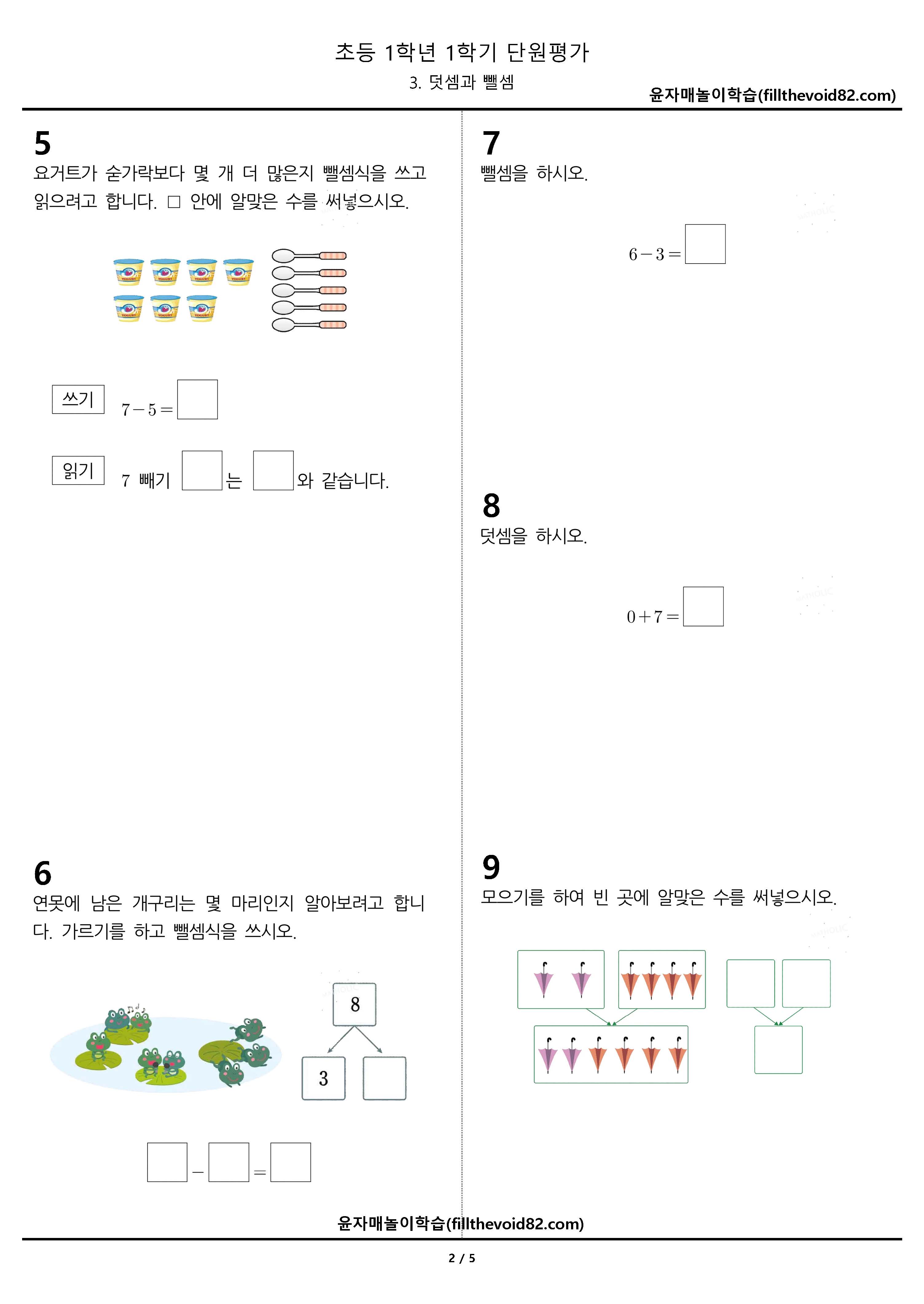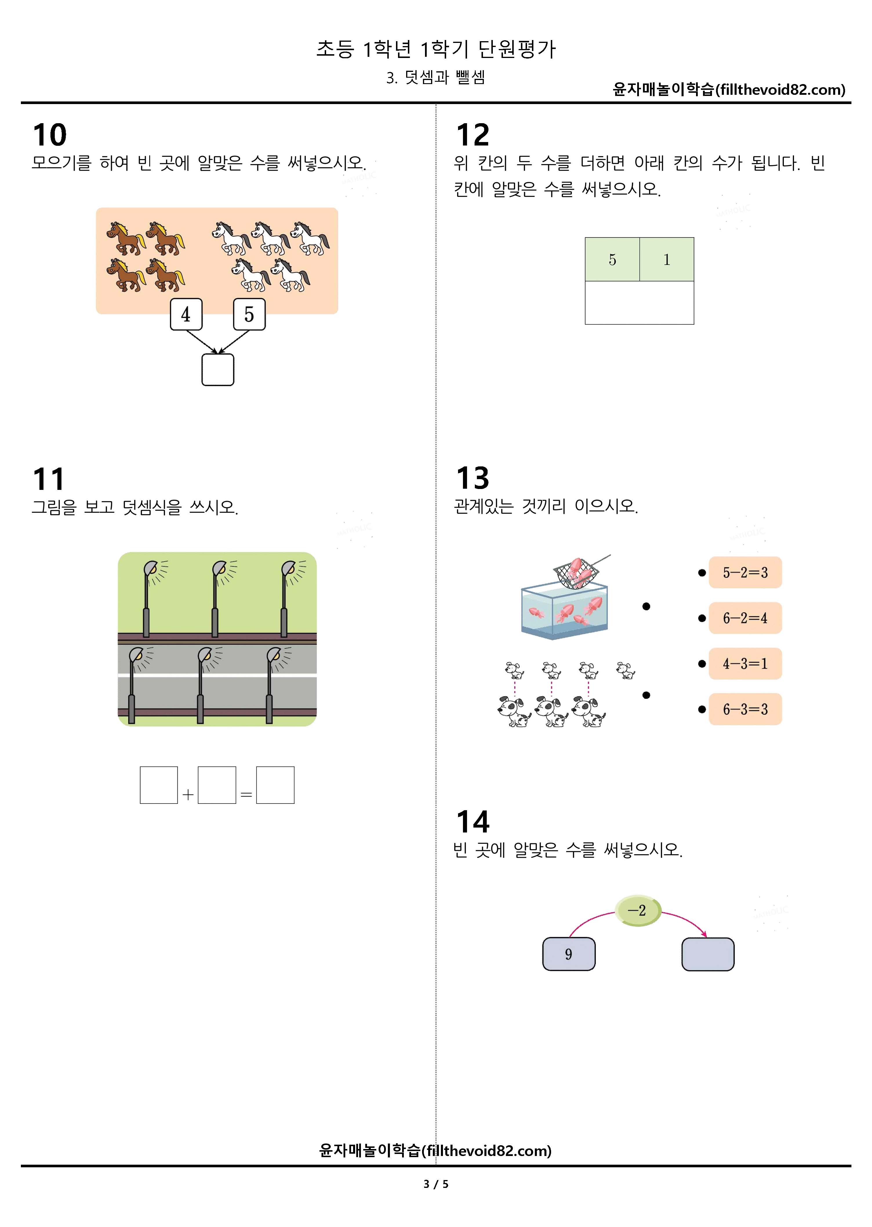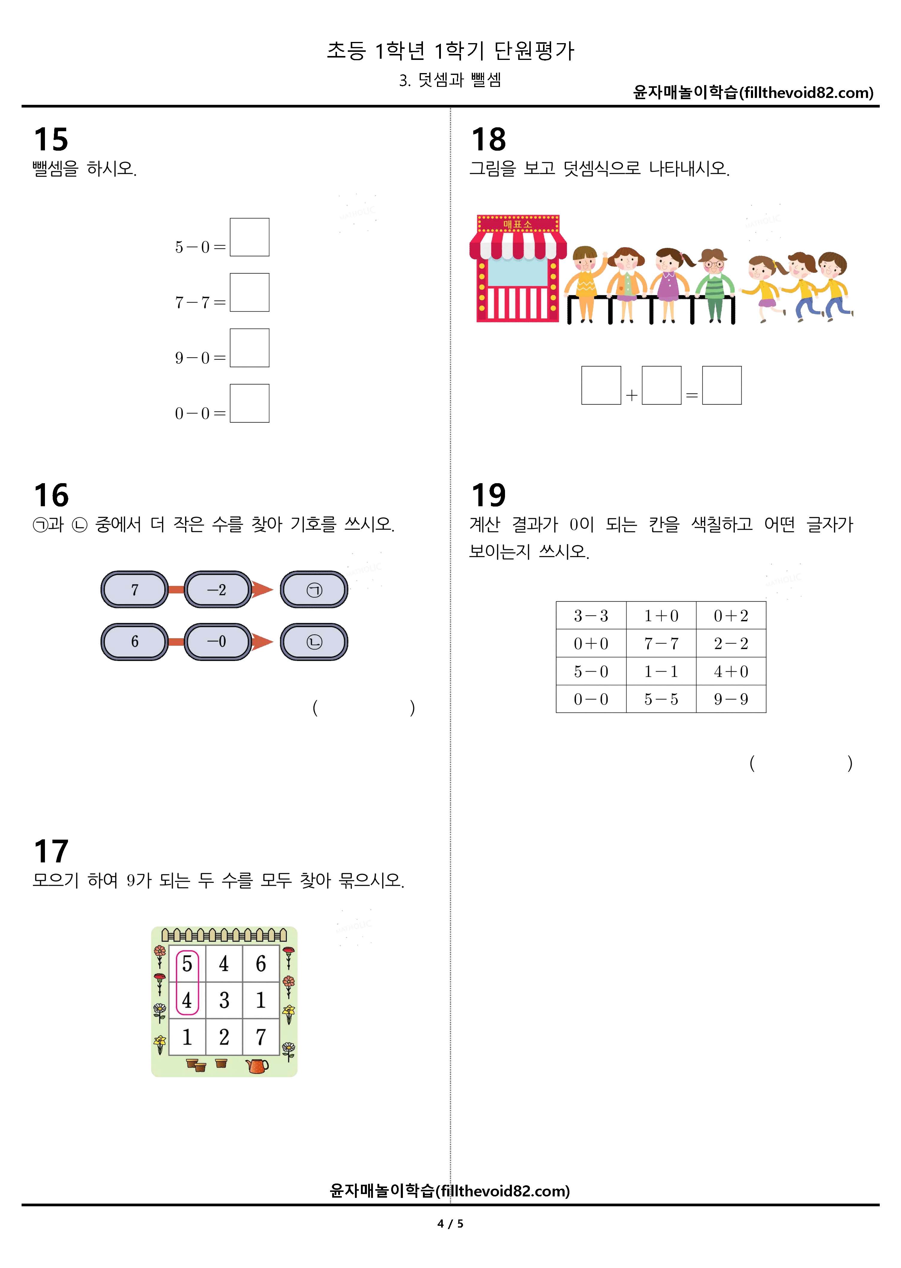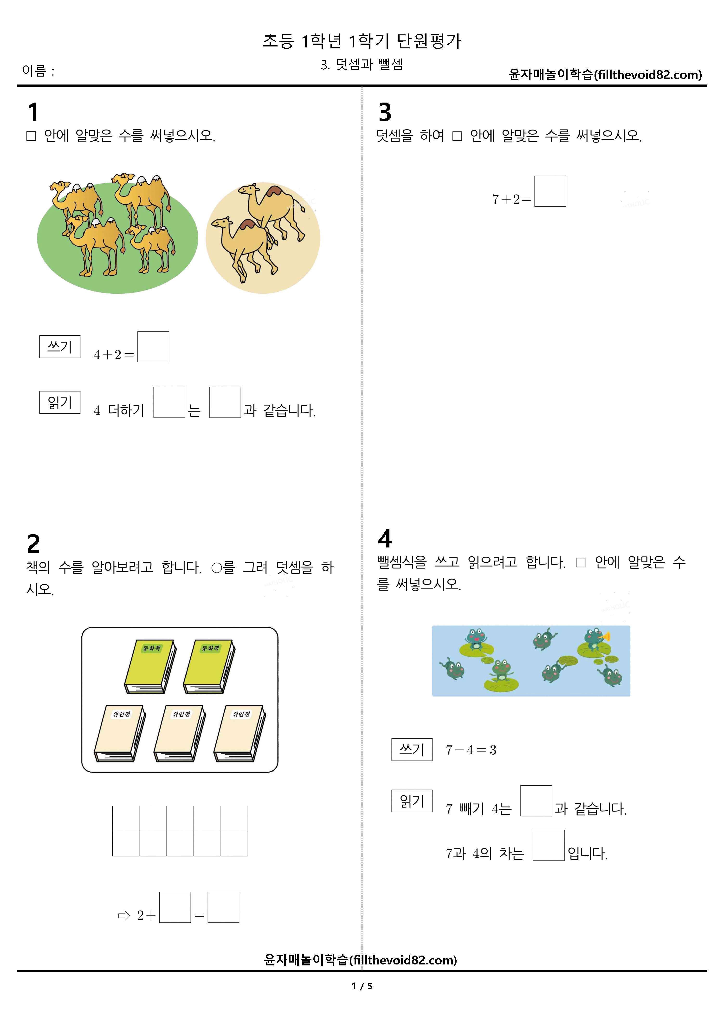 초1 단원평가) 1학년 1학기 - 3. 덧셈과 뺄셈
