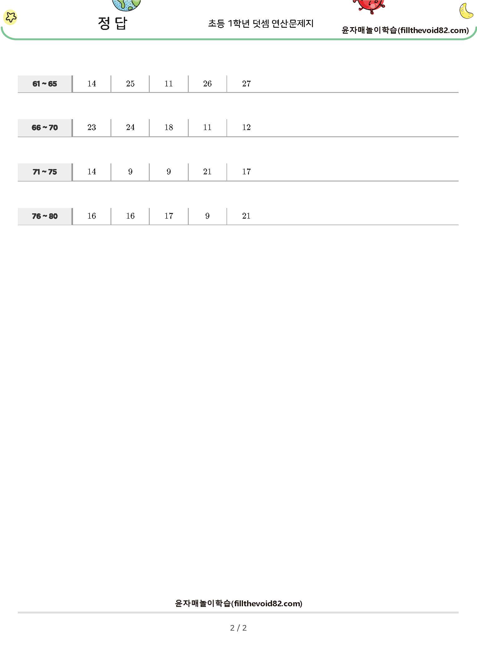 더하기 2~ 더하기 10까지 연습할 수 있는 연산문제집입니다.