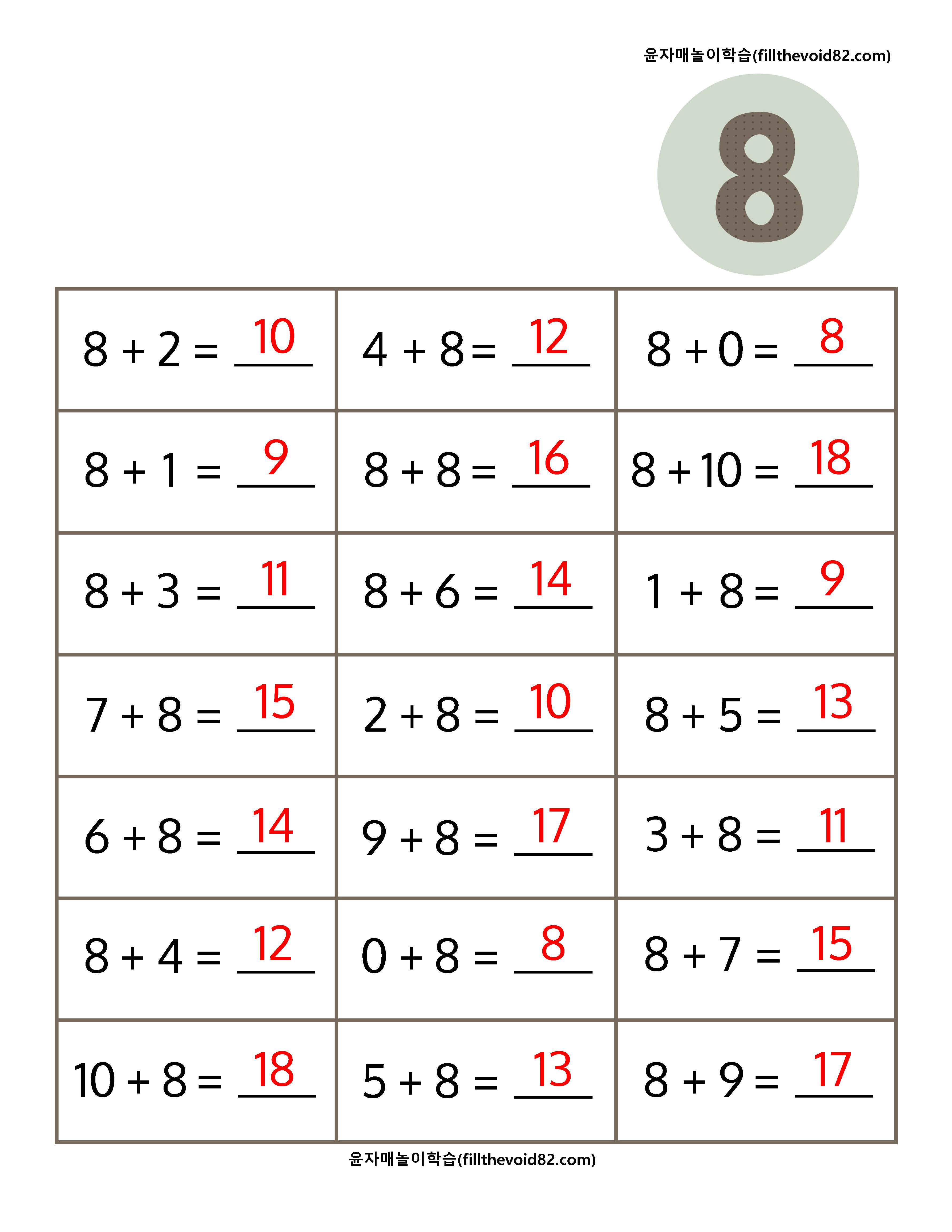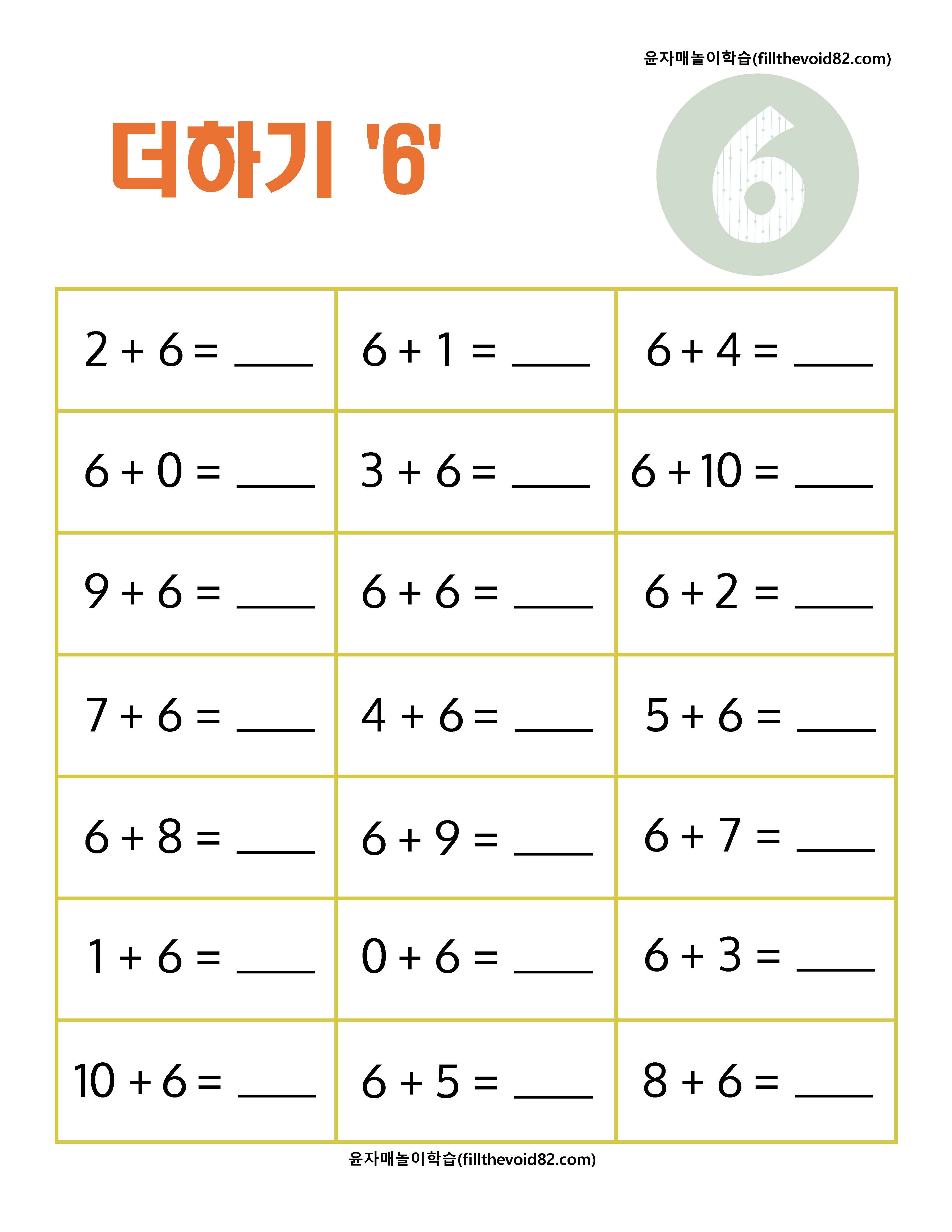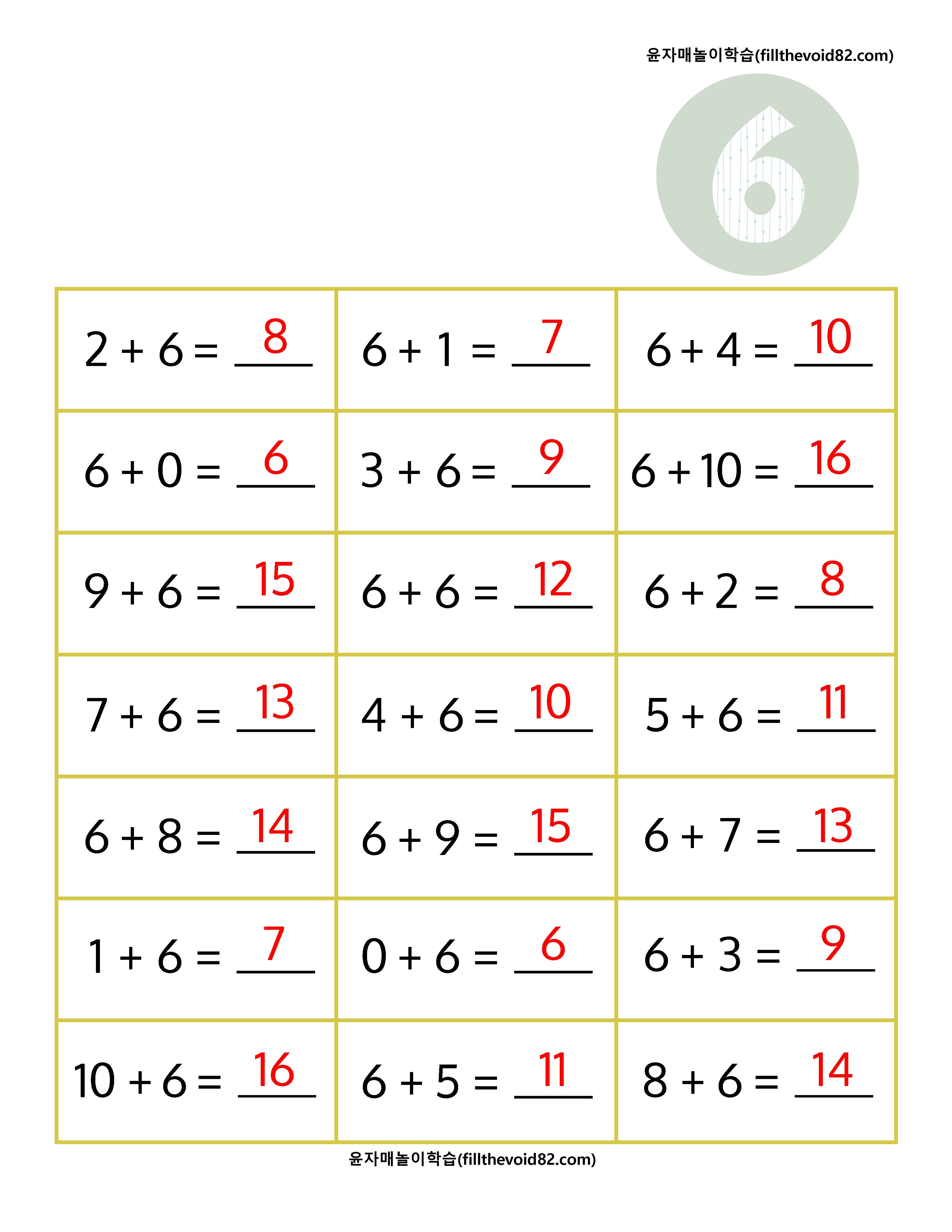 초등수학) 초등 1학년 덧셈 연산문제지(더하기 2~10) (0) | 2023.03.21 |