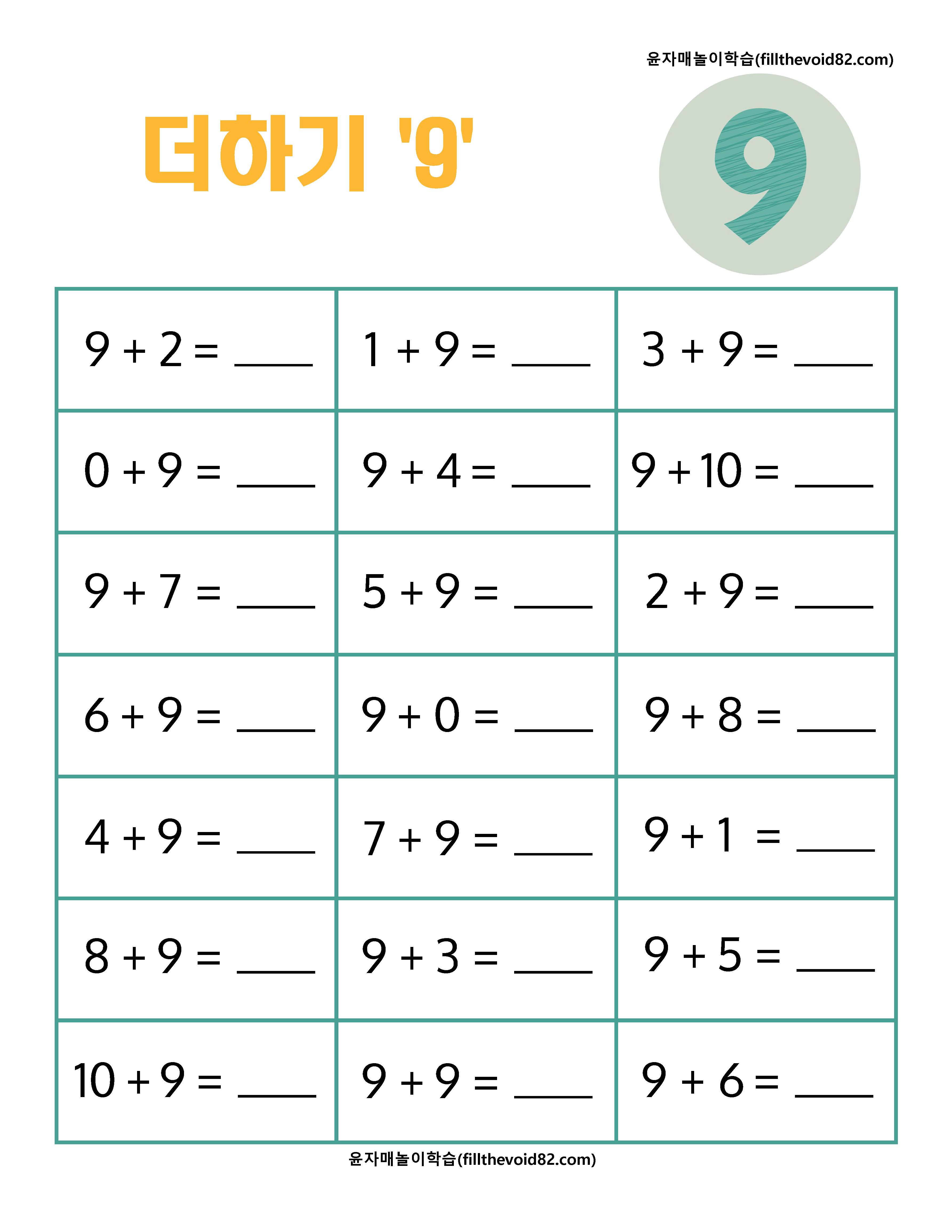 초등수학) 초등 1학년 덧셈 연산문제지(1~9) (0) | 2023.03.08 |