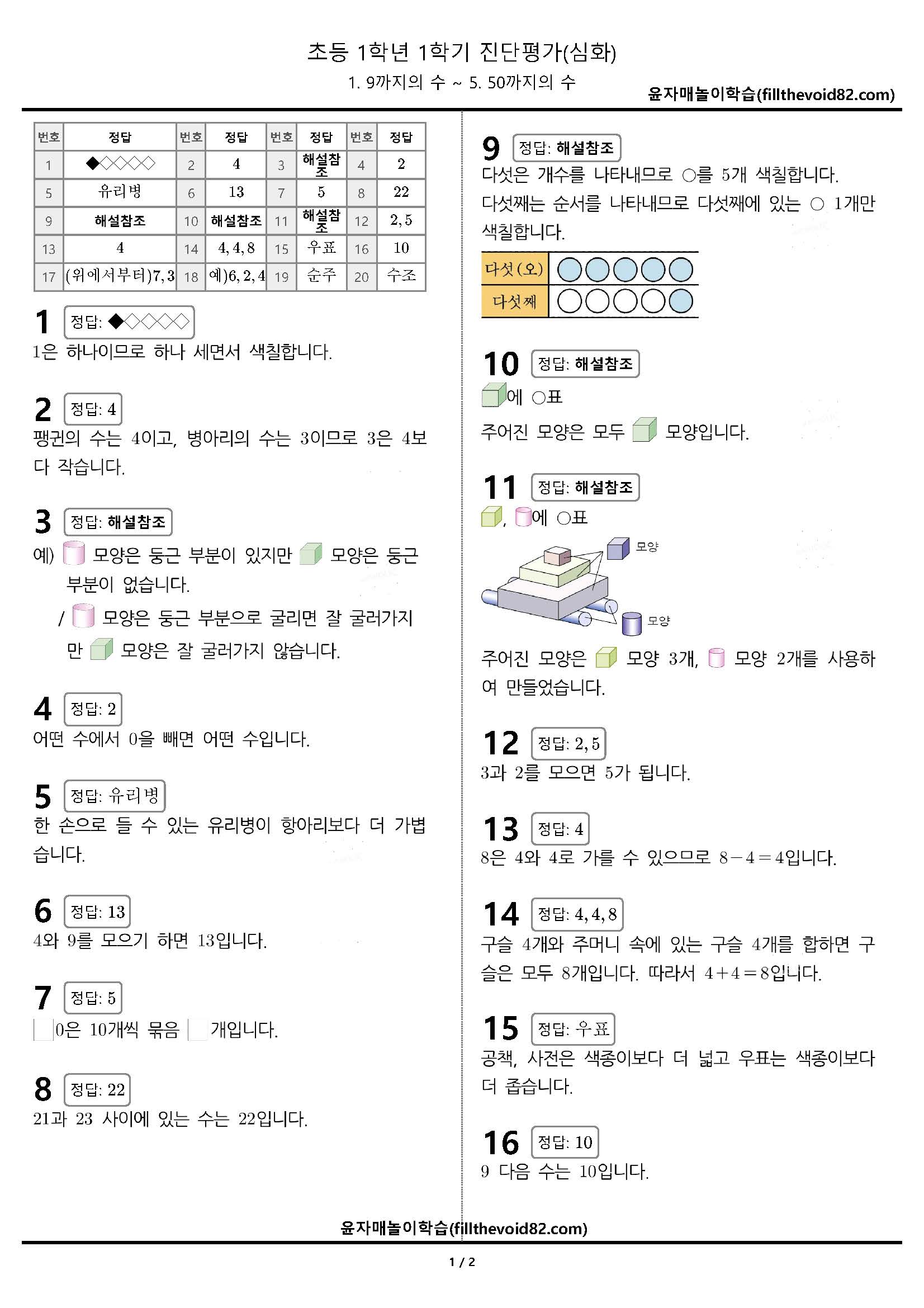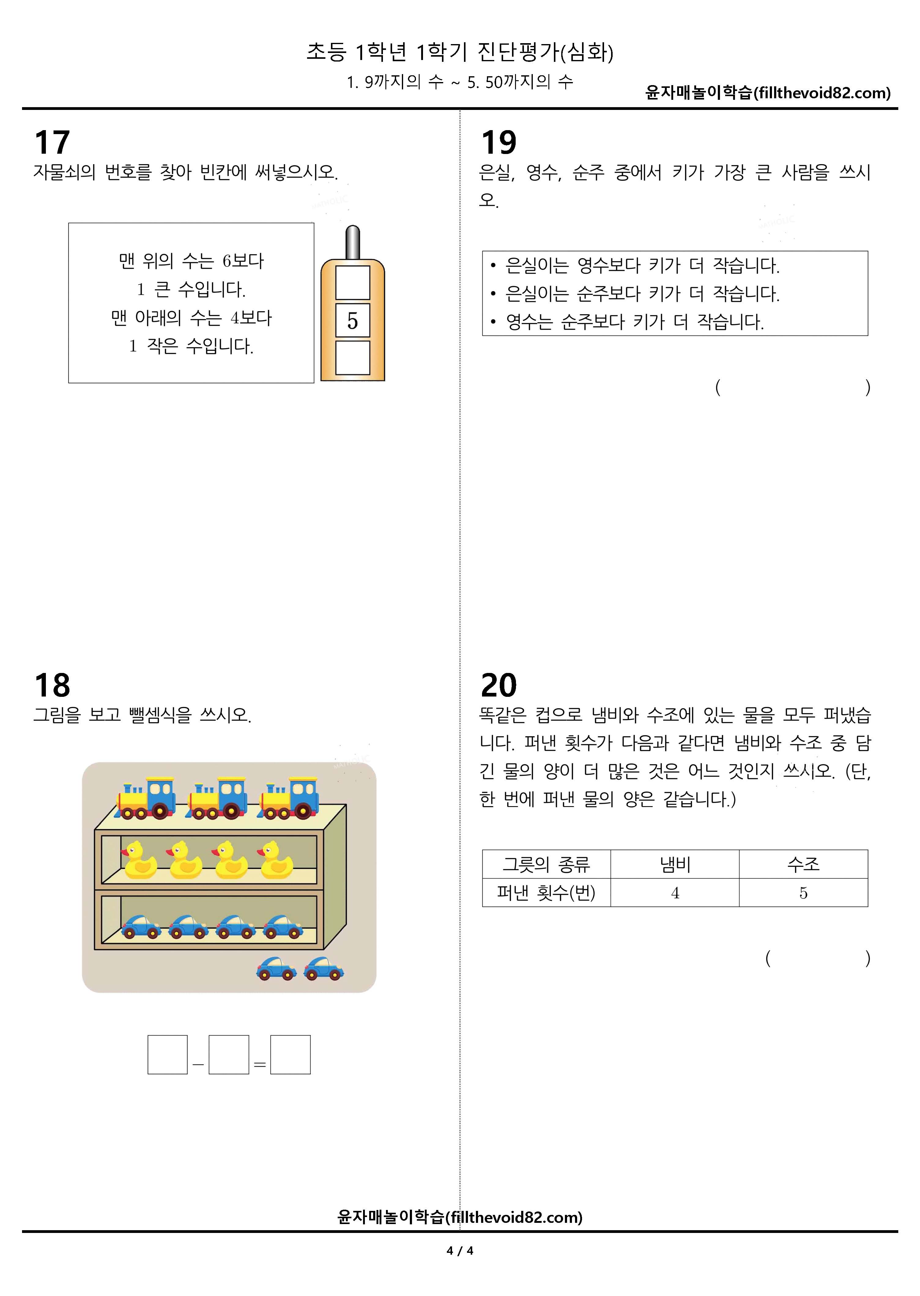 초1 진단평가) 1학년 1학기 진단평가(심화)