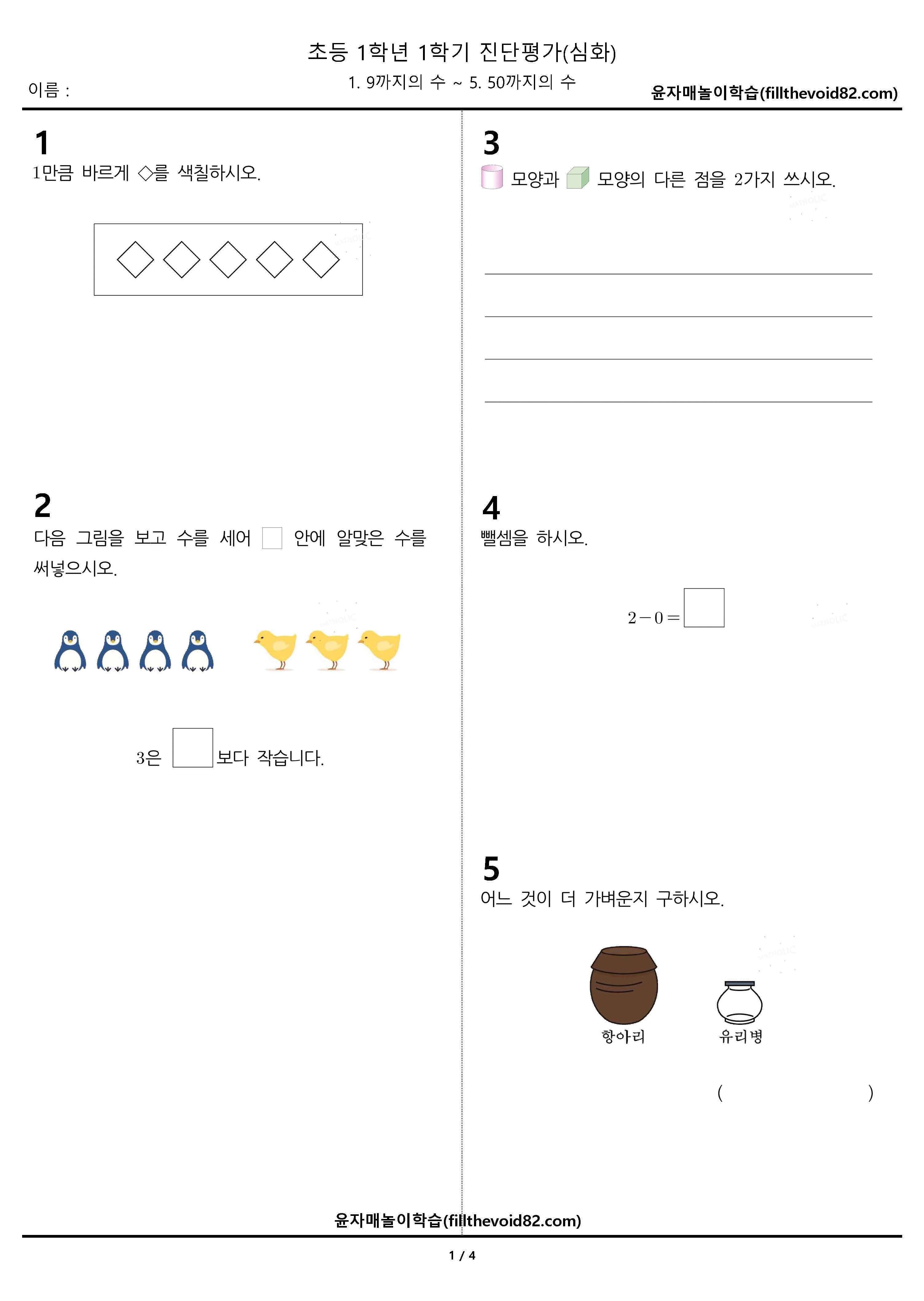 수학문제지/초등진단평가