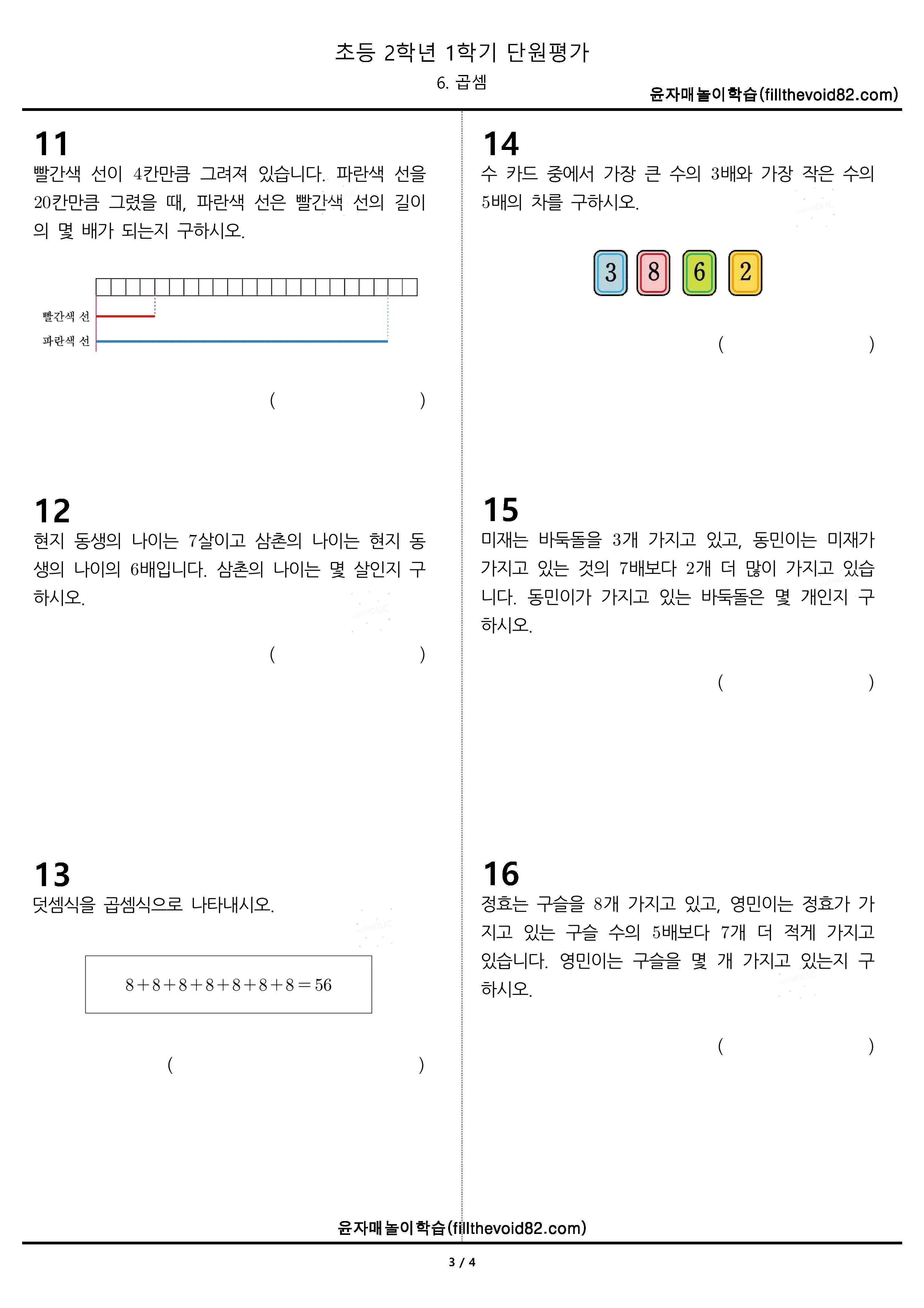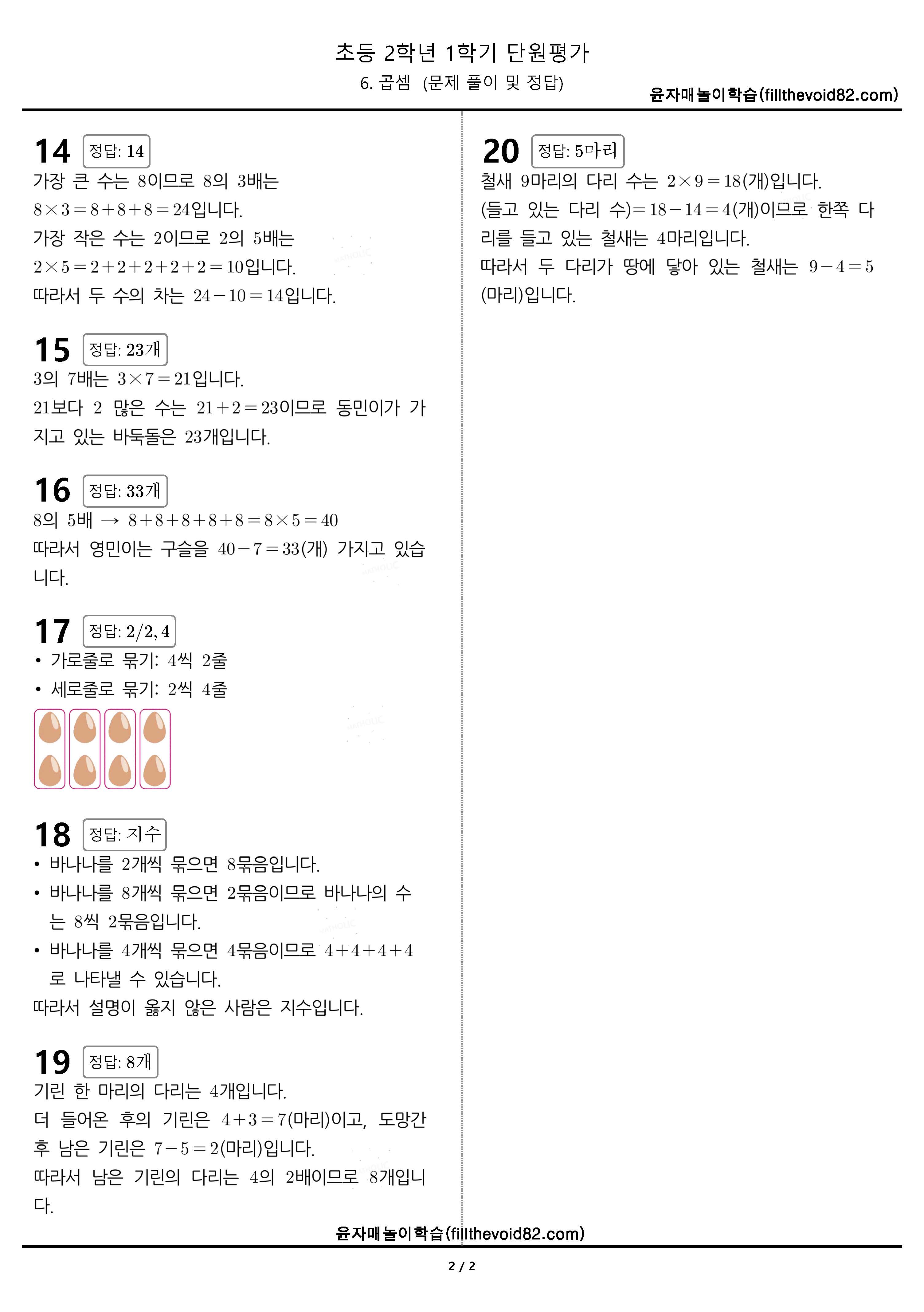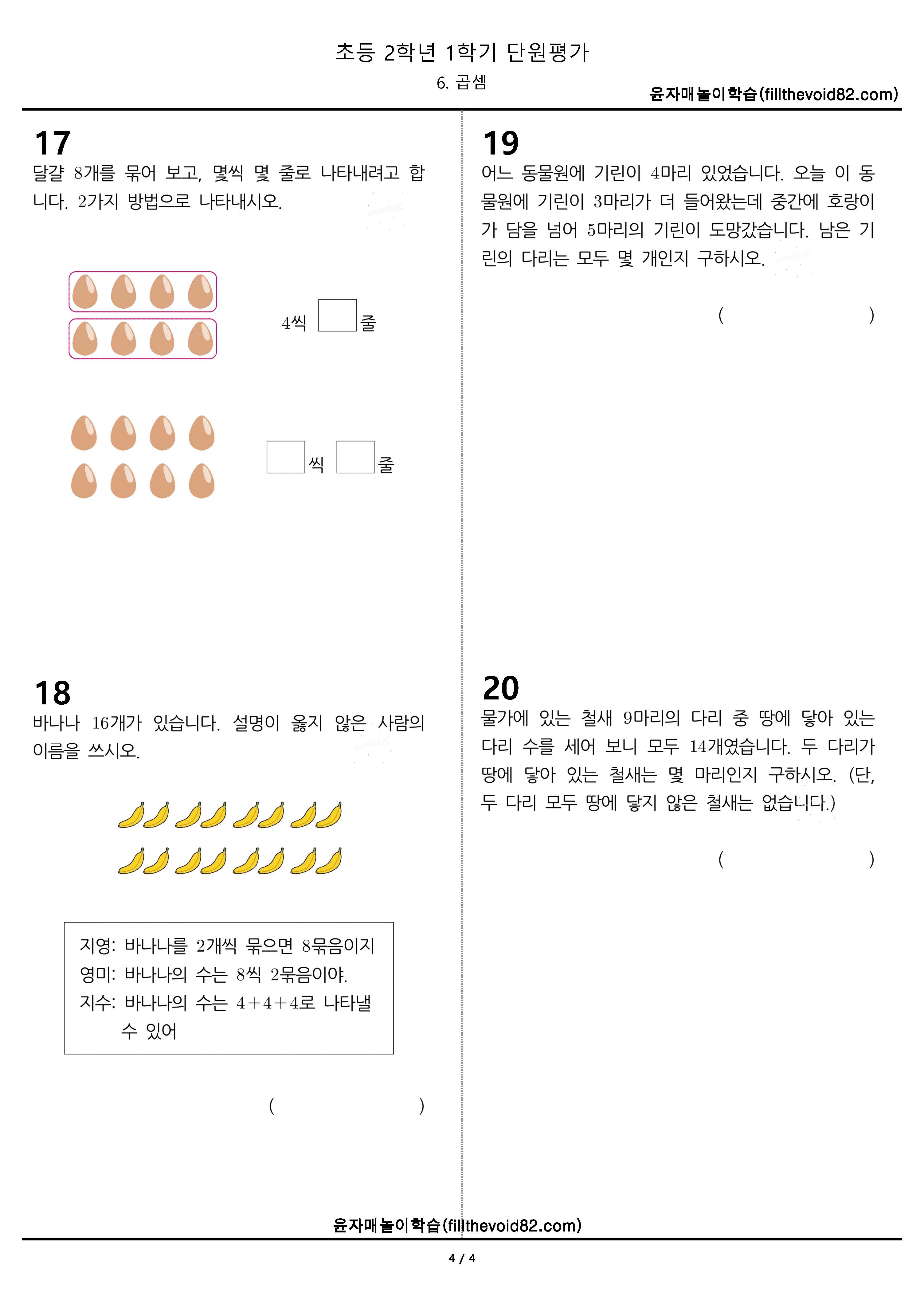 기본 8문제, 실력 8문제, 심화 4문제, 총 20문제로 이루어져 있는 단원평가입니다.