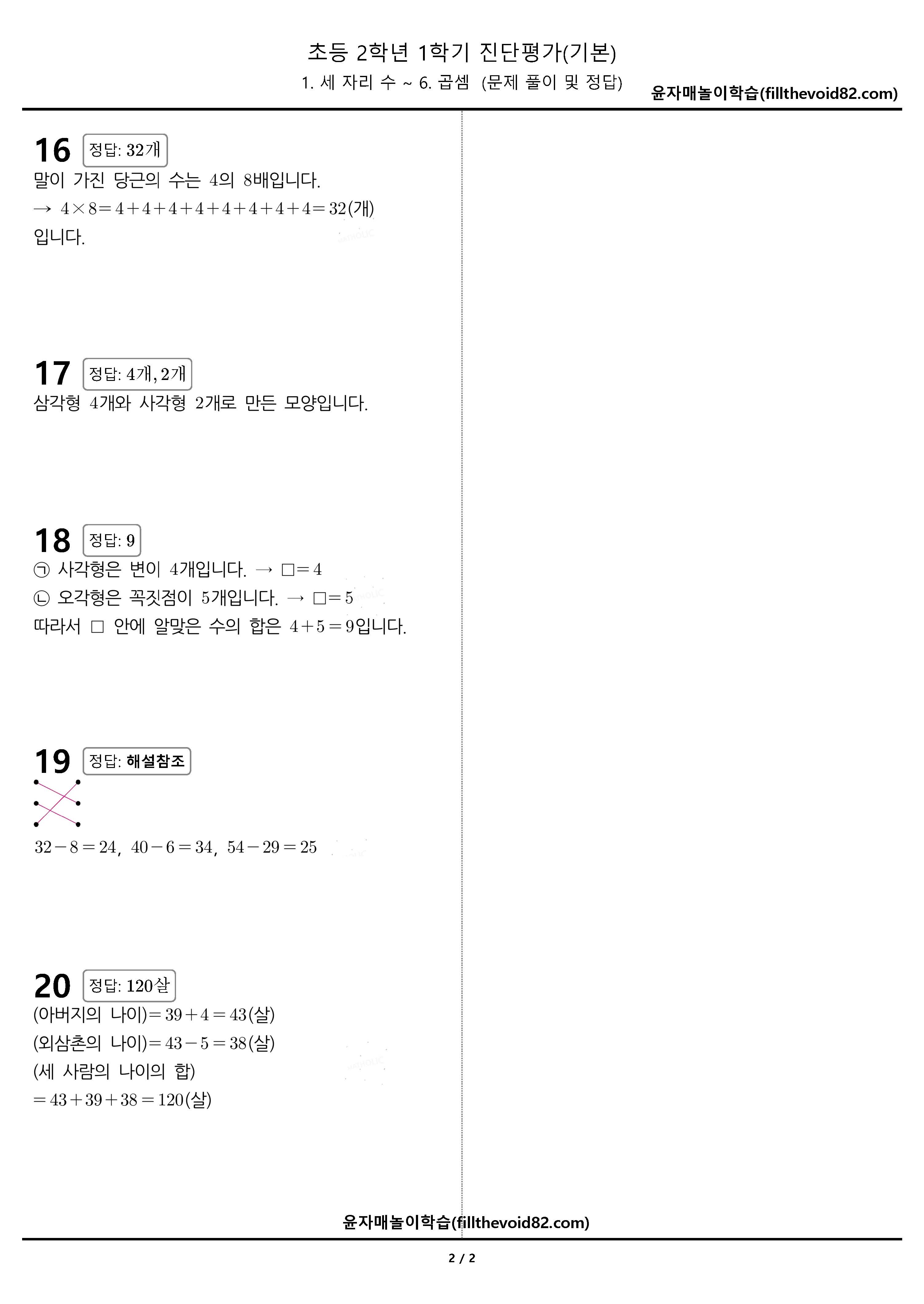 기본 16문제, 실력 4문제로 구성 된 2학년 1학기 진단평가입니다.