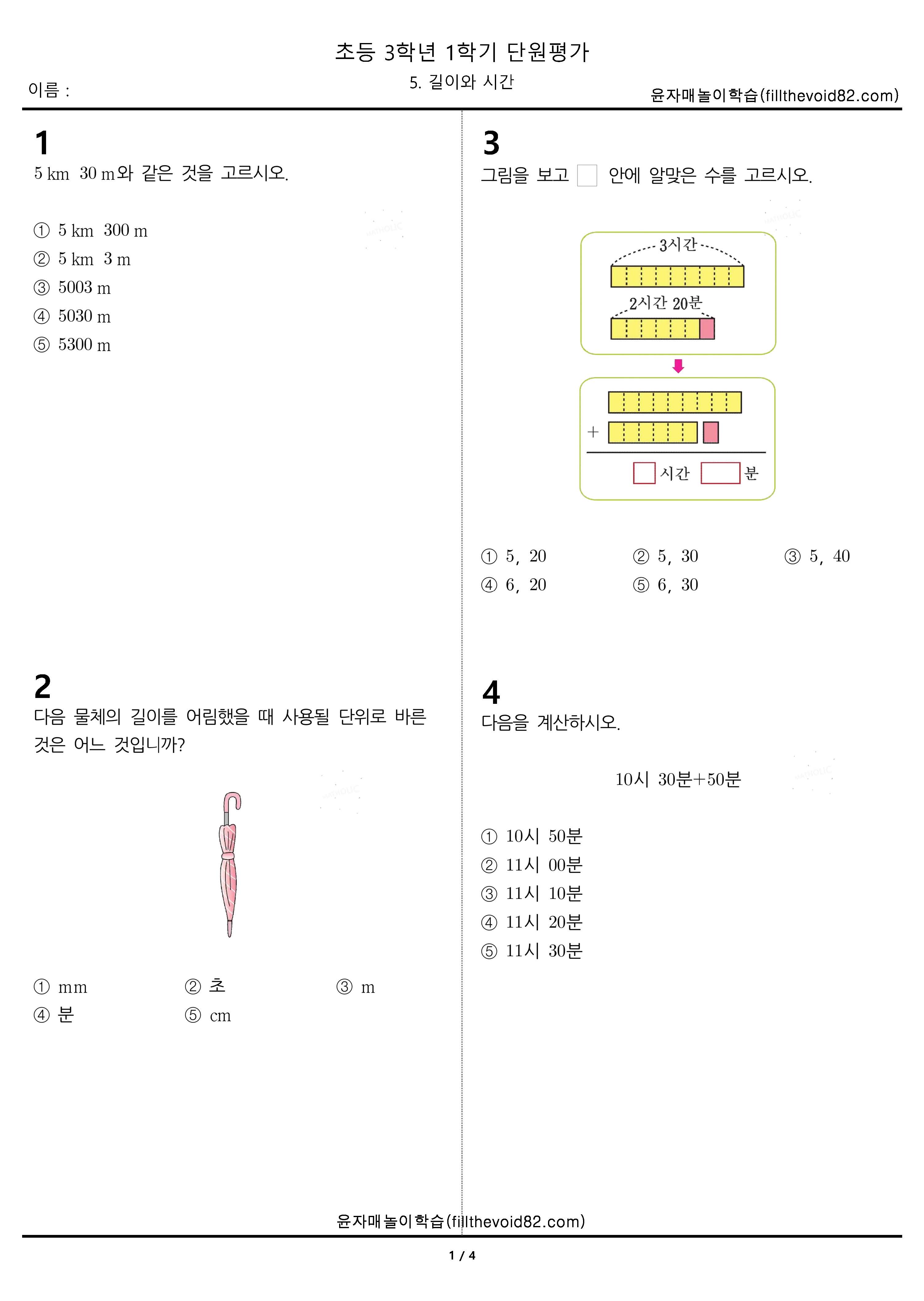 '수학문제지 > 초등단원평가' 카테고리의 다른 글
