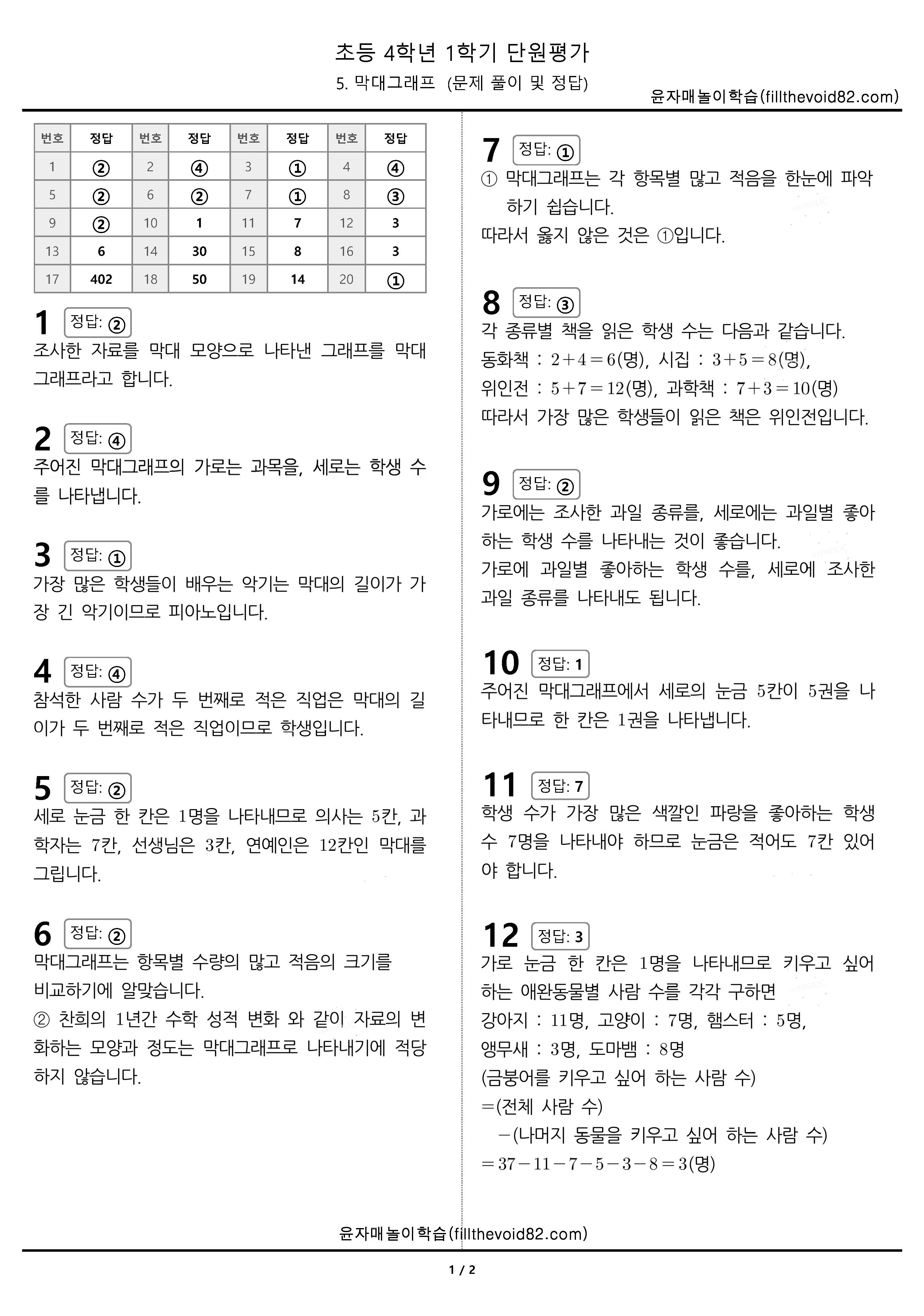 한 단원 공부가 끝난 후 테스트용으로 사용하시면 좋습니다.