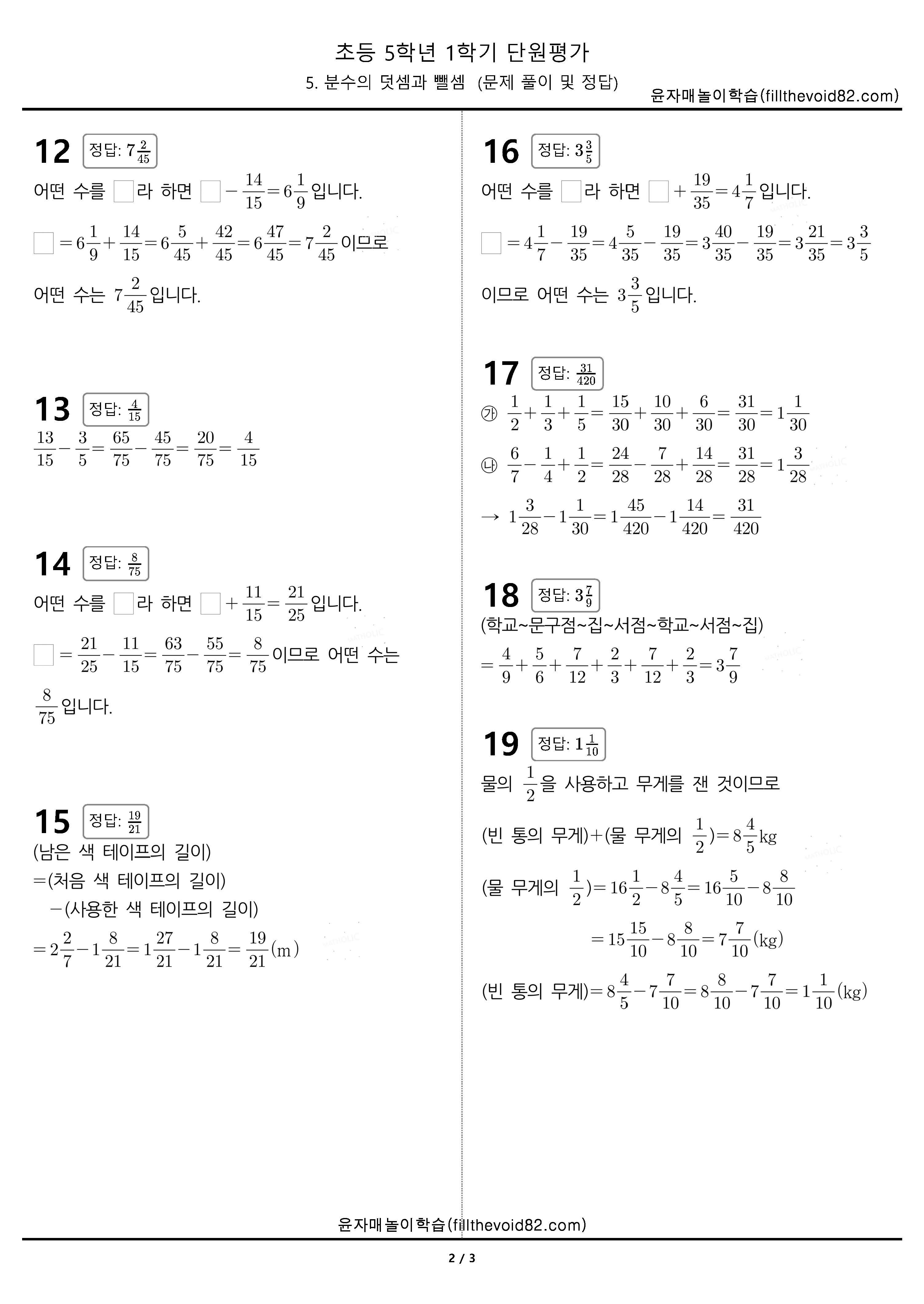 '수학문제지 > 초등단원평가' 카테고리의 다른 글