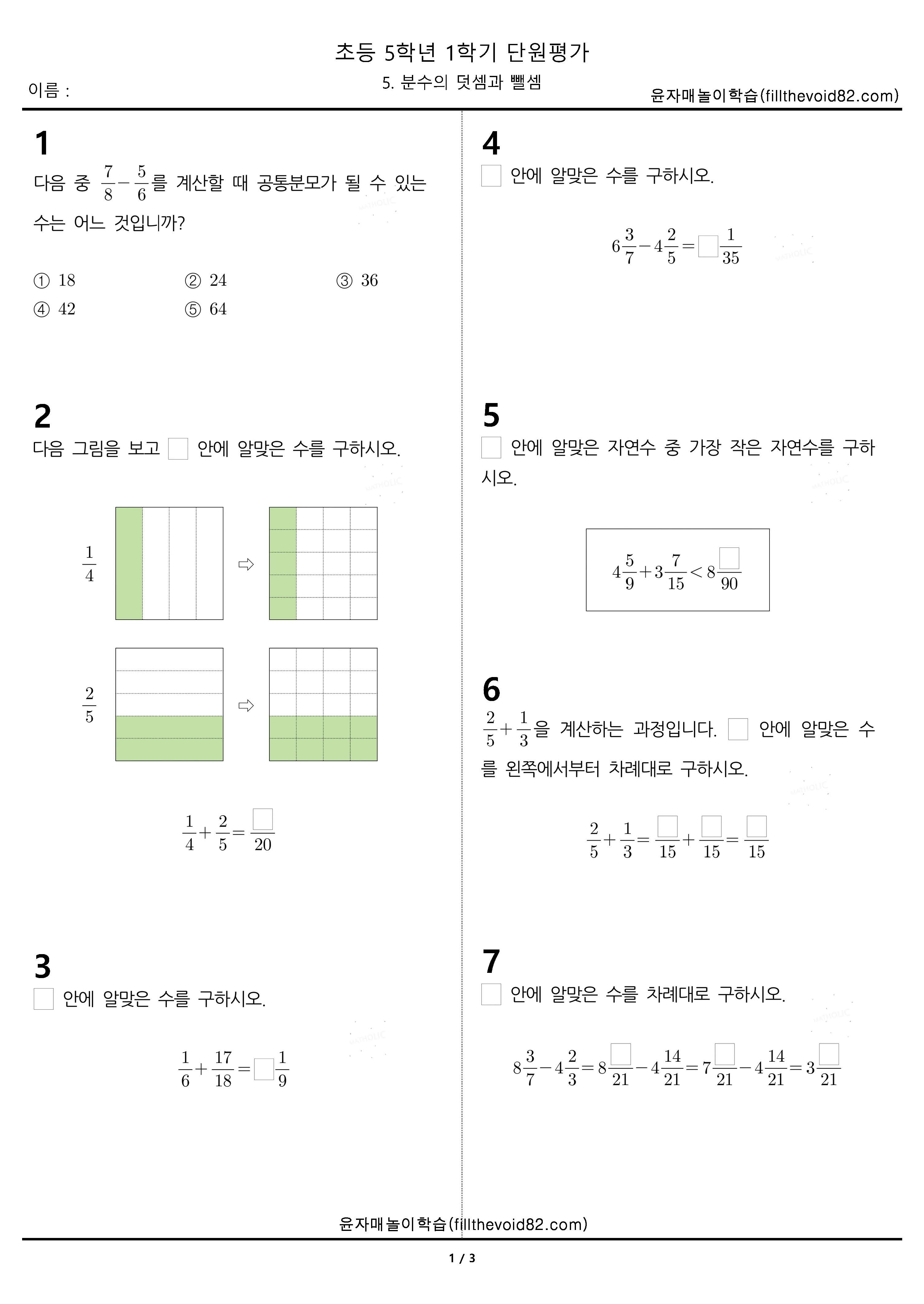 | 무료학습지) 초3 단원평가) 3학년 1학기 단원평가-6. 분수와 소수(분수) (0) | 2023.04.10 |