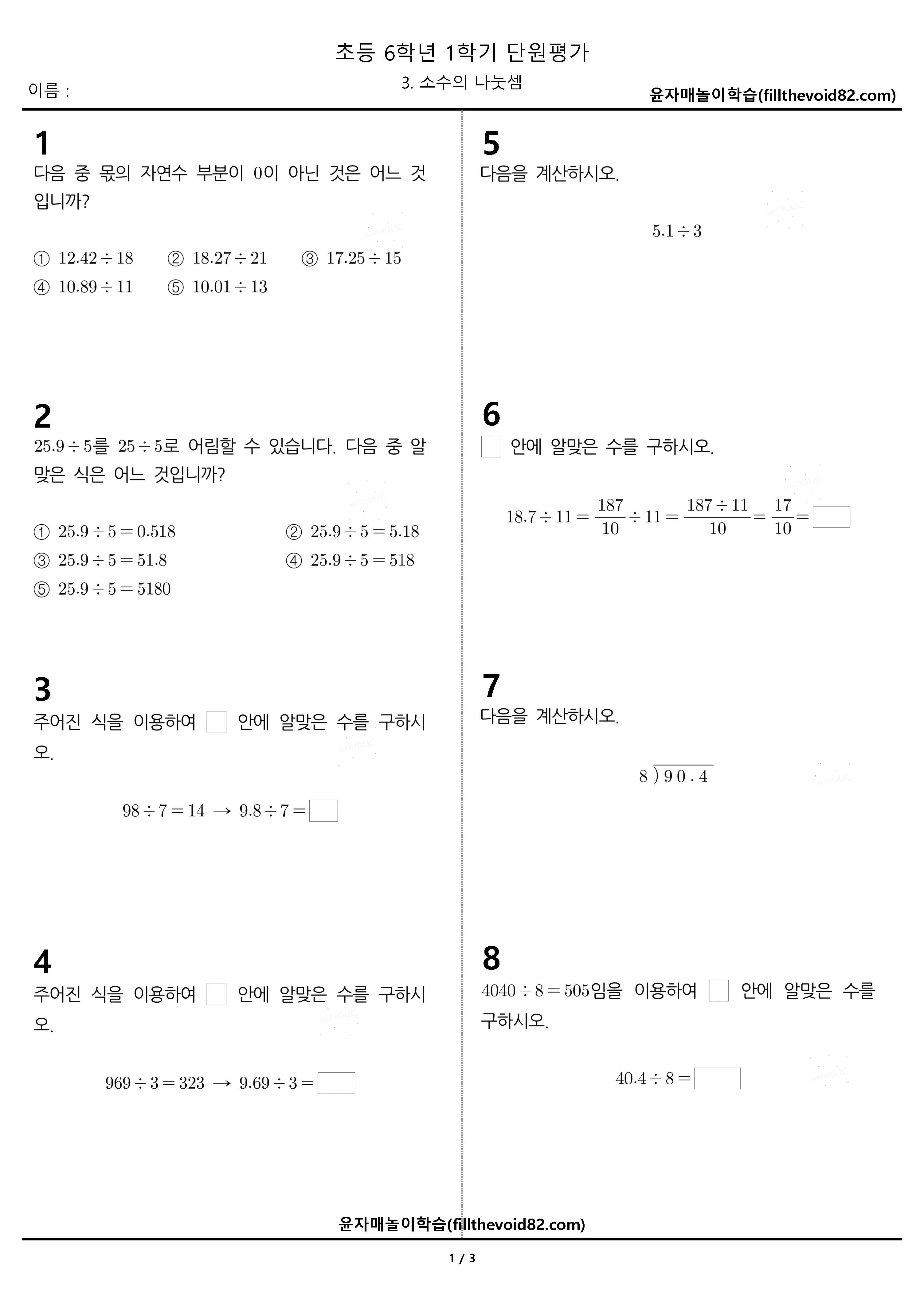 | 초3 단원평가) 3학년 1학기 - 3. 나눗셈 (0) | 2023.03.18 |