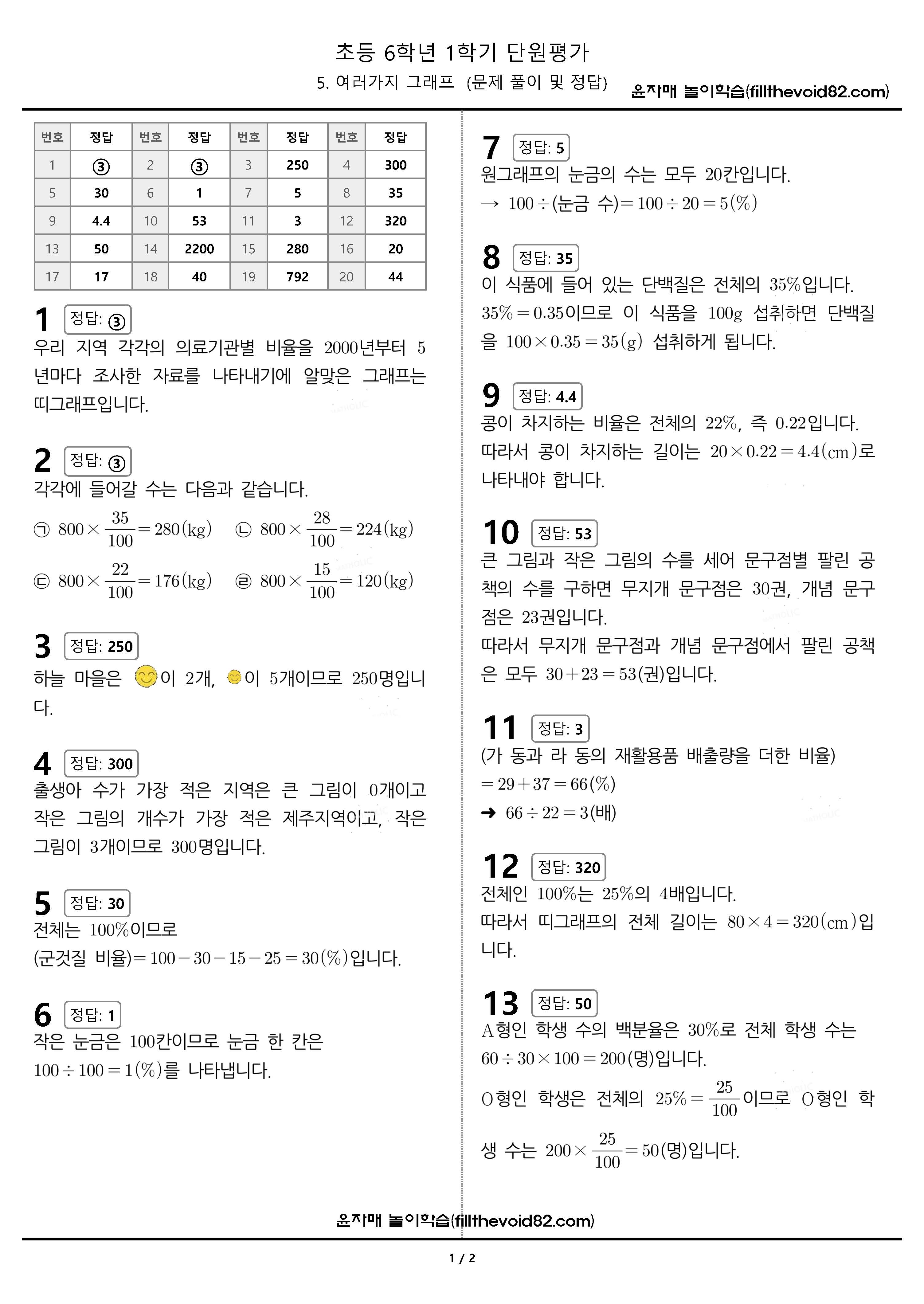 기본 8문제, 실력 8문제, 심화 4문제, 총 20문제로 이루어져 있는 단원평가입니다.